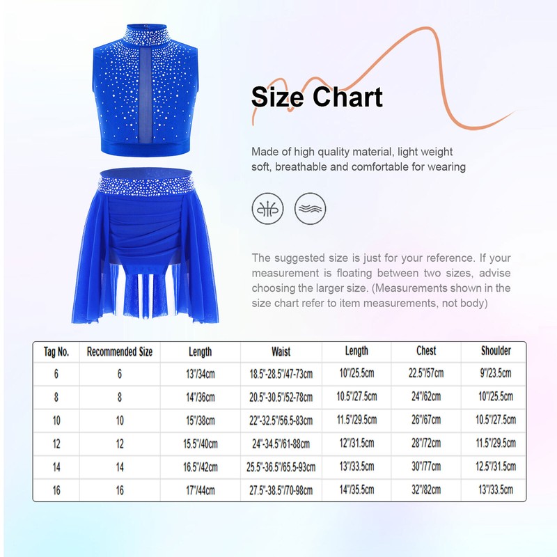 Girl’s dance skirt is decorated with rhinestones on the waistband, ruched front and irregular hem looks stylish and chic.