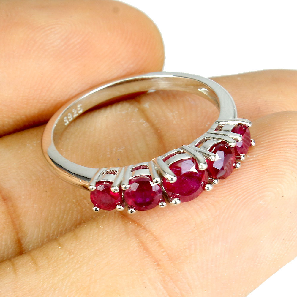 Heated Round Red Ruby 5mm 14K White Gold Plate 925 Sterling Silver Ring Size 7