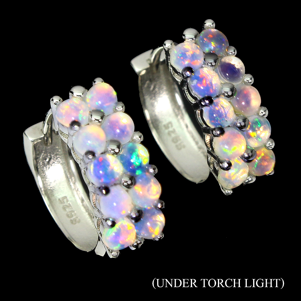Unheated Round Fire Opal Rainbow Full Flash 3mm 925 Sterling Silver Earrings