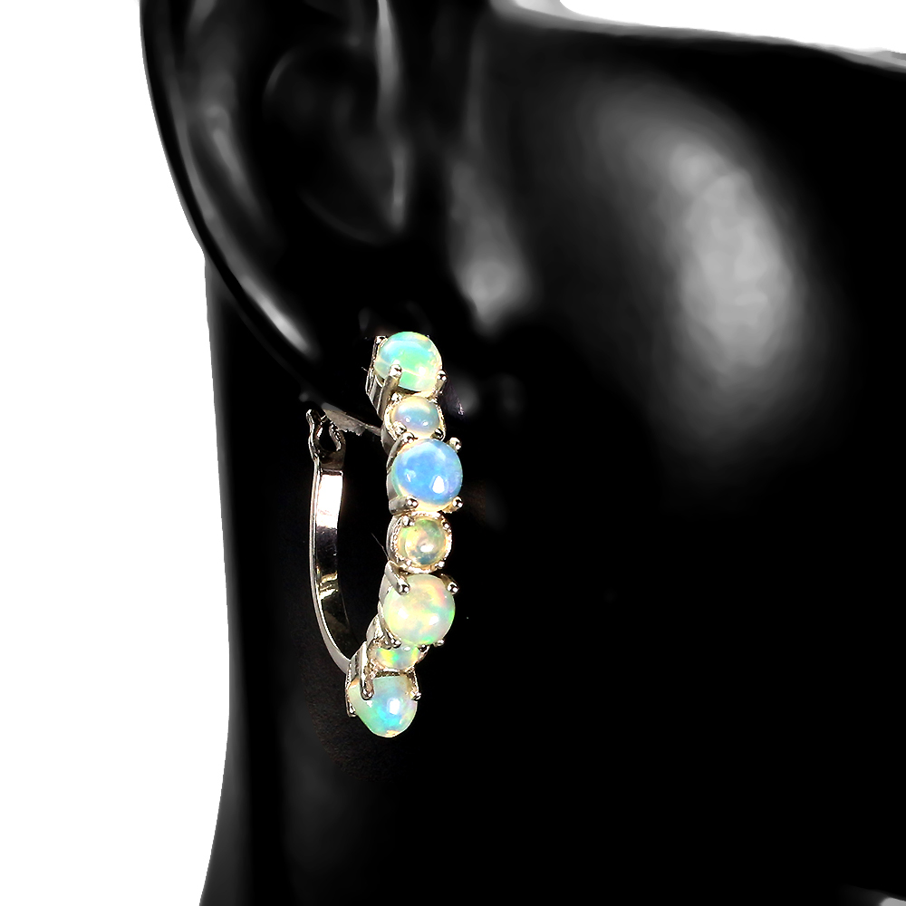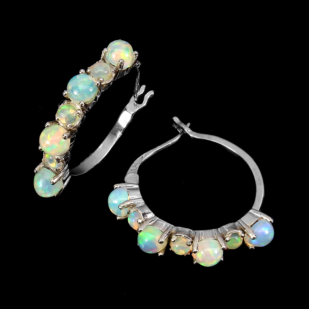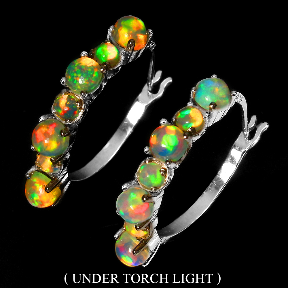 Unheated Round Fire Opal Rainbow Full Flash 4mm 925 Sterling Silver Earrings