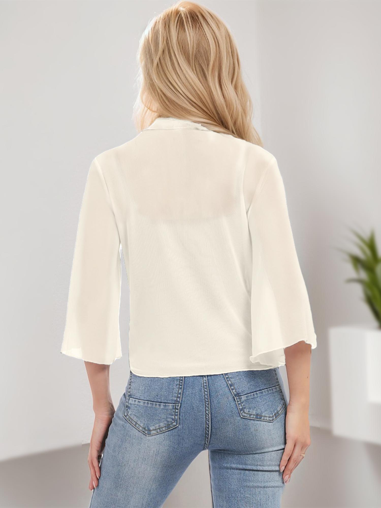 Womens Sheer Shrug Tie Front Bell Sleeve Cropped Bolero Cardigan