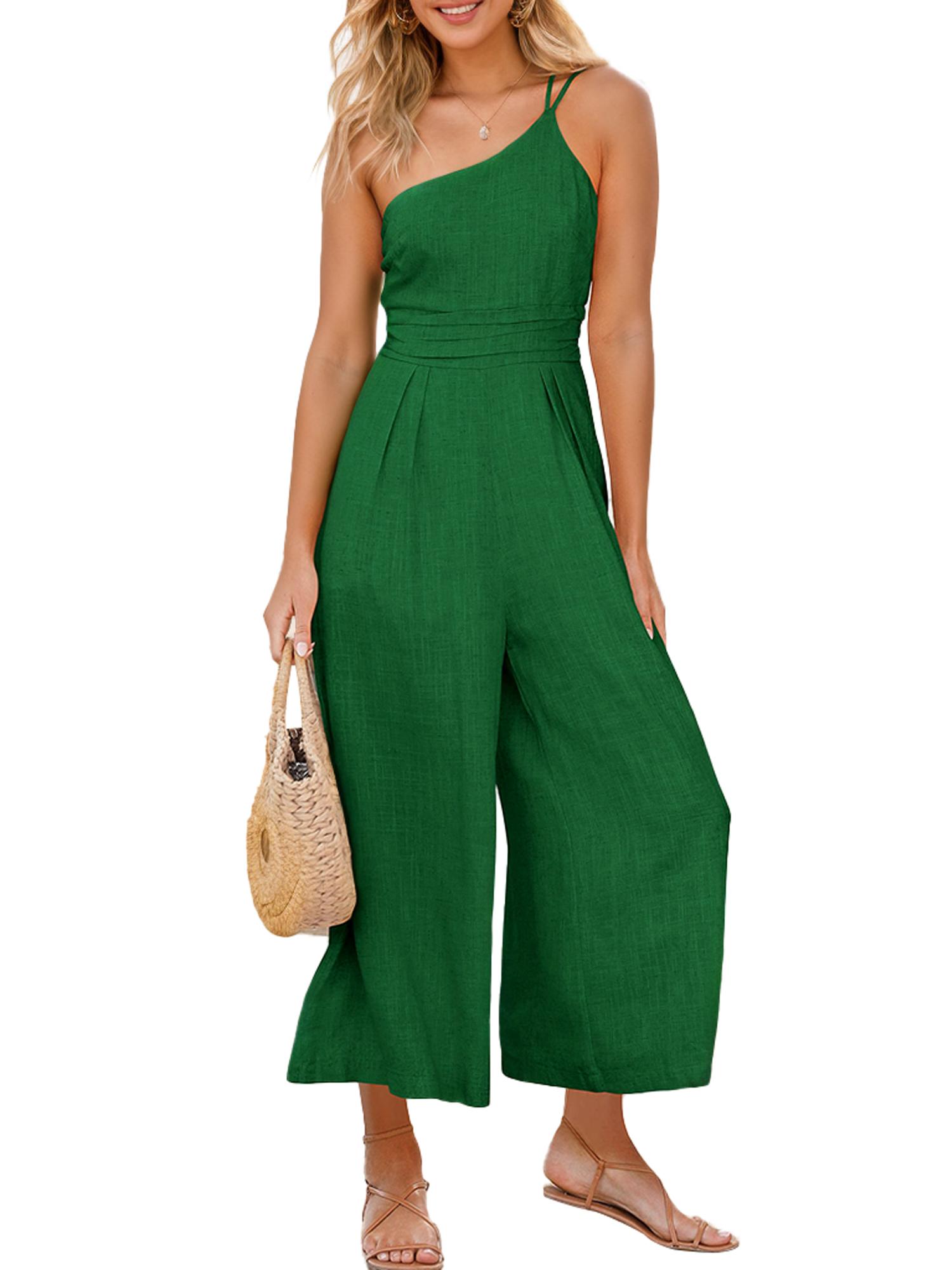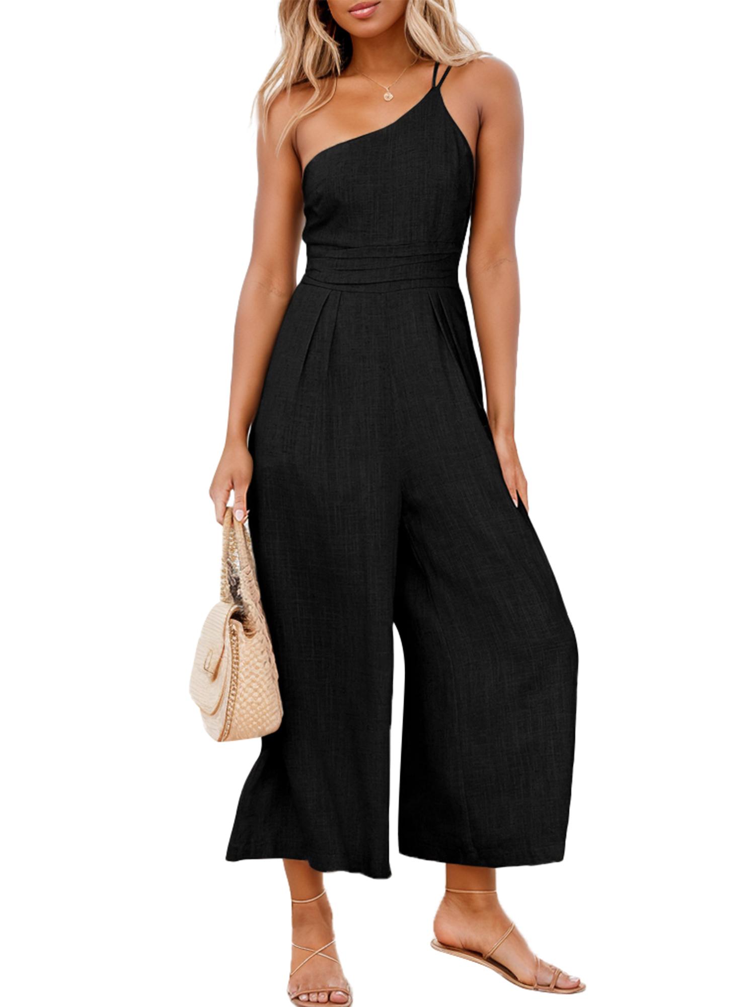 Women's Casual Straps One Shoulder High Waist Wide Leg Jumpsuit Romper