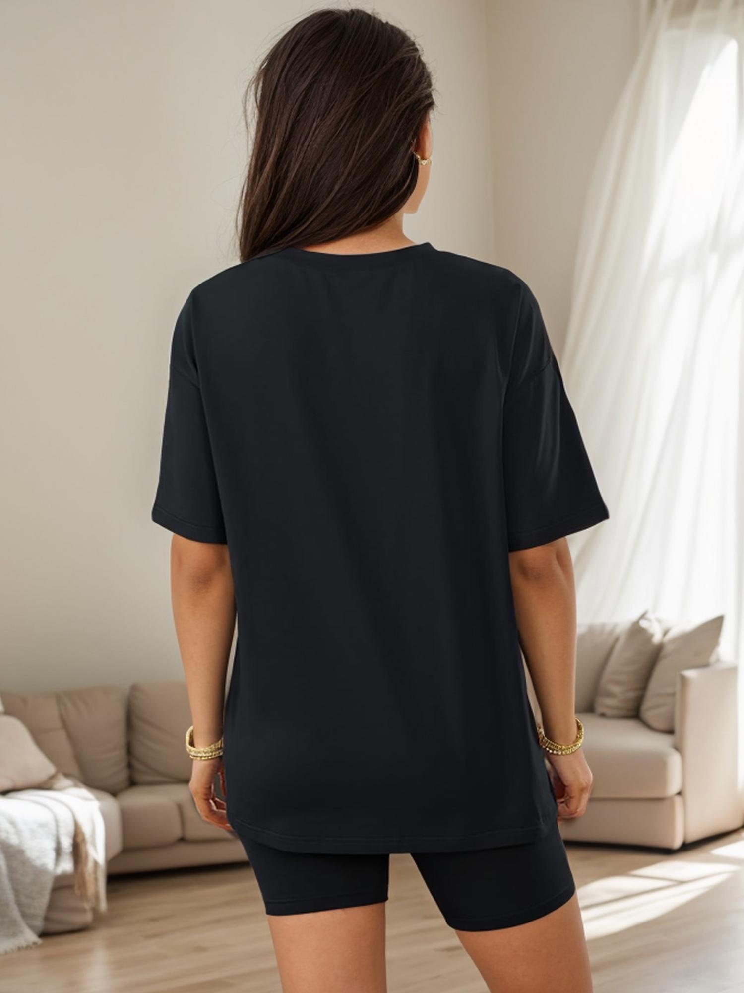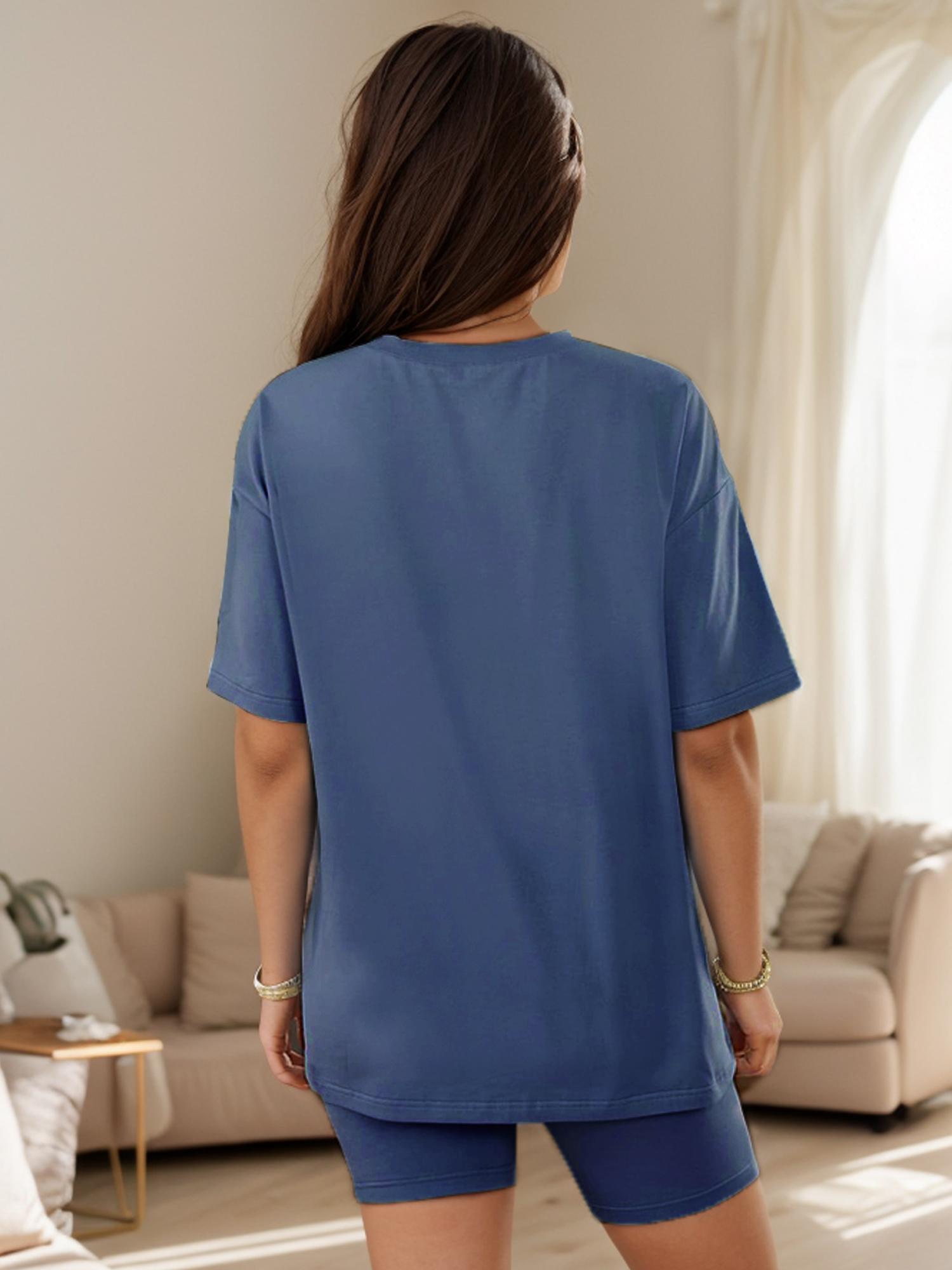 Womens Two Piece Lounge Matching Set Oversized Shirts Biker Shorts Tracksuit