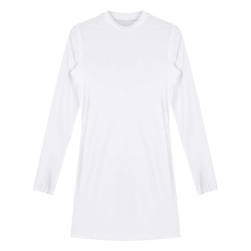 Long sleeve bodycon dress for women, mock neck, solid color, pull on closure.