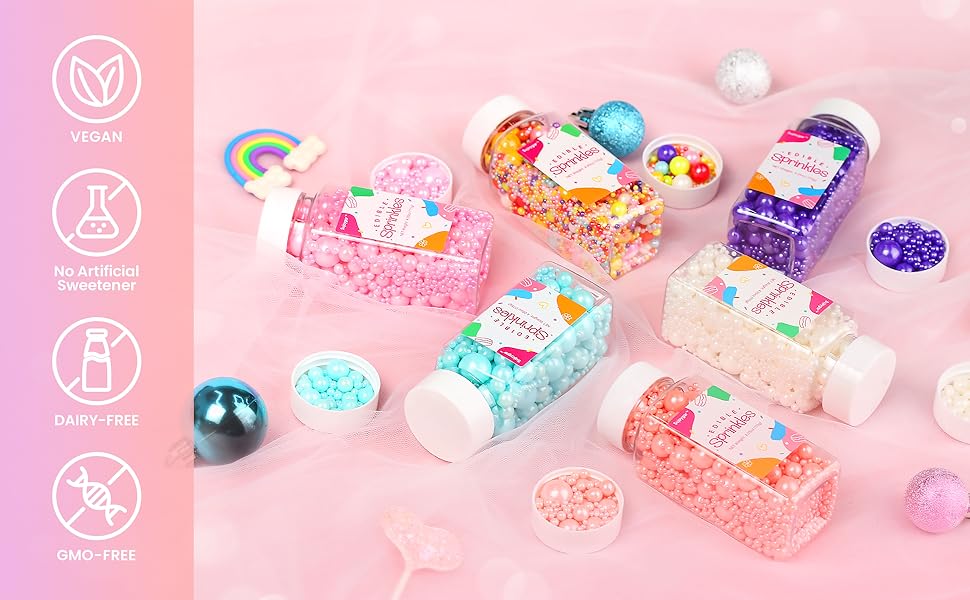 【Shelf Life】The shelf life of sprinkles is 24 months, production date please see the package. The sprinkles is cost effective and the sealed lid can meet the needs of multiple food baking decorations. Only a small spoonful is needed for each use