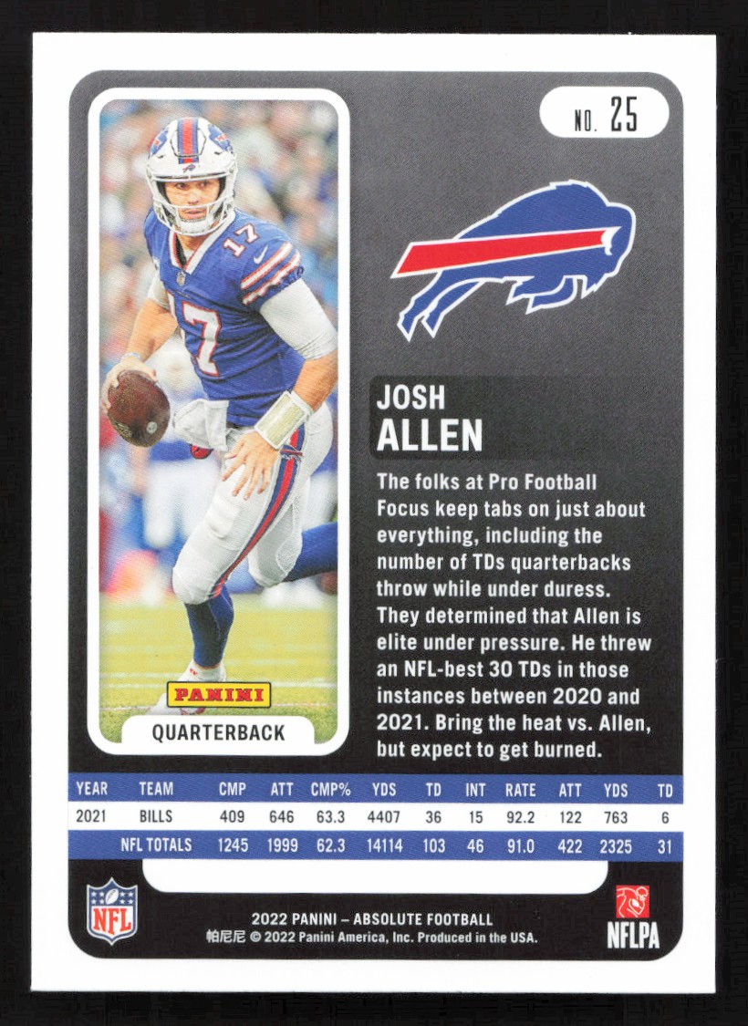 2022 Panini Absolute Josh Allen Buffalo Bills #25