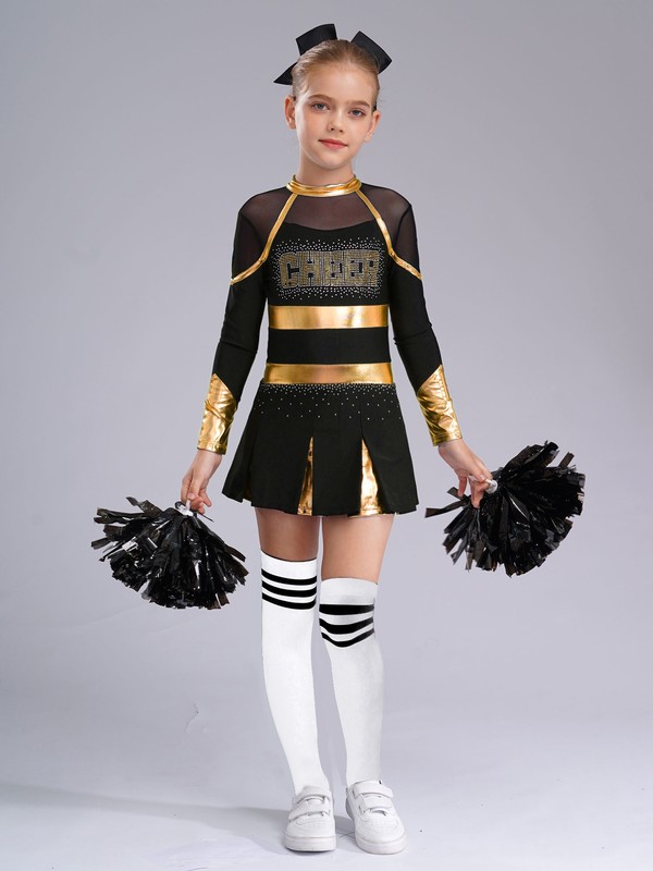 Girl’s cheerleading dance dress with glittery rhinestones letter pattern makes your child eye-catching in the crowd.