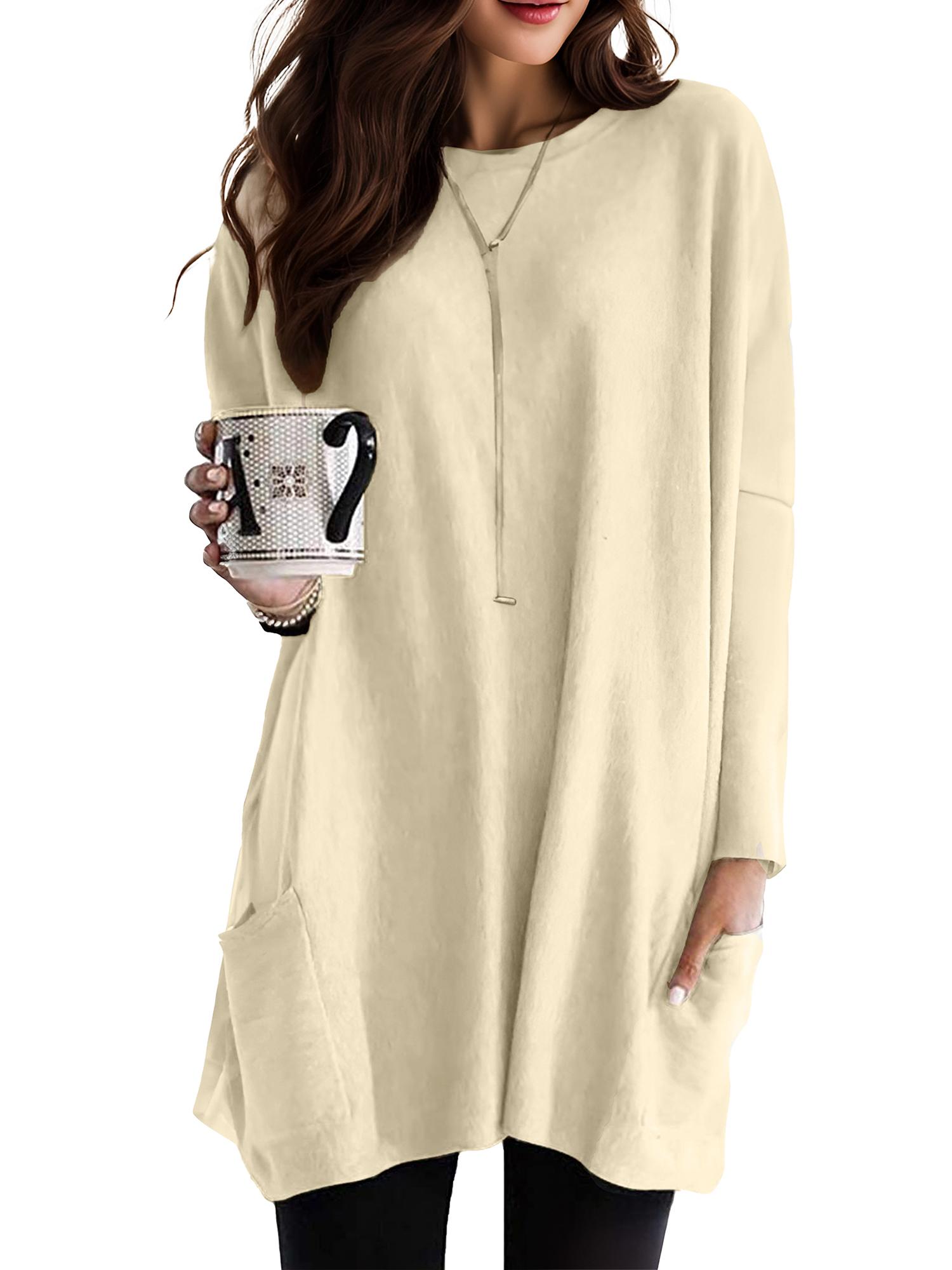 Womens Long Sleeve Tops with Pockets Fall Long Sweatshirt