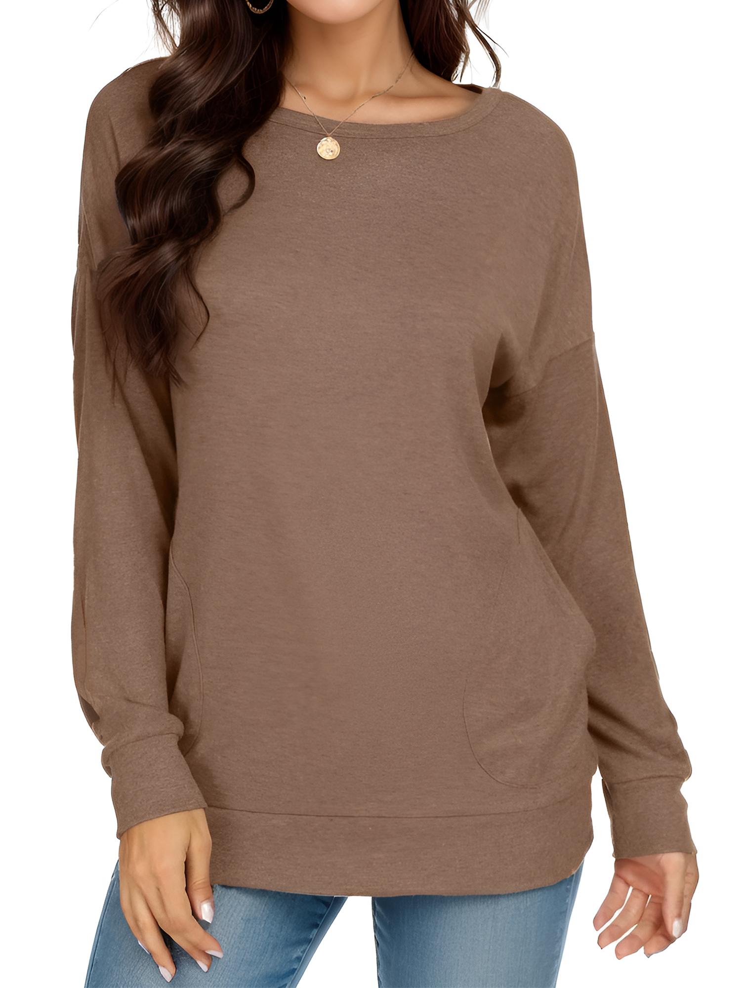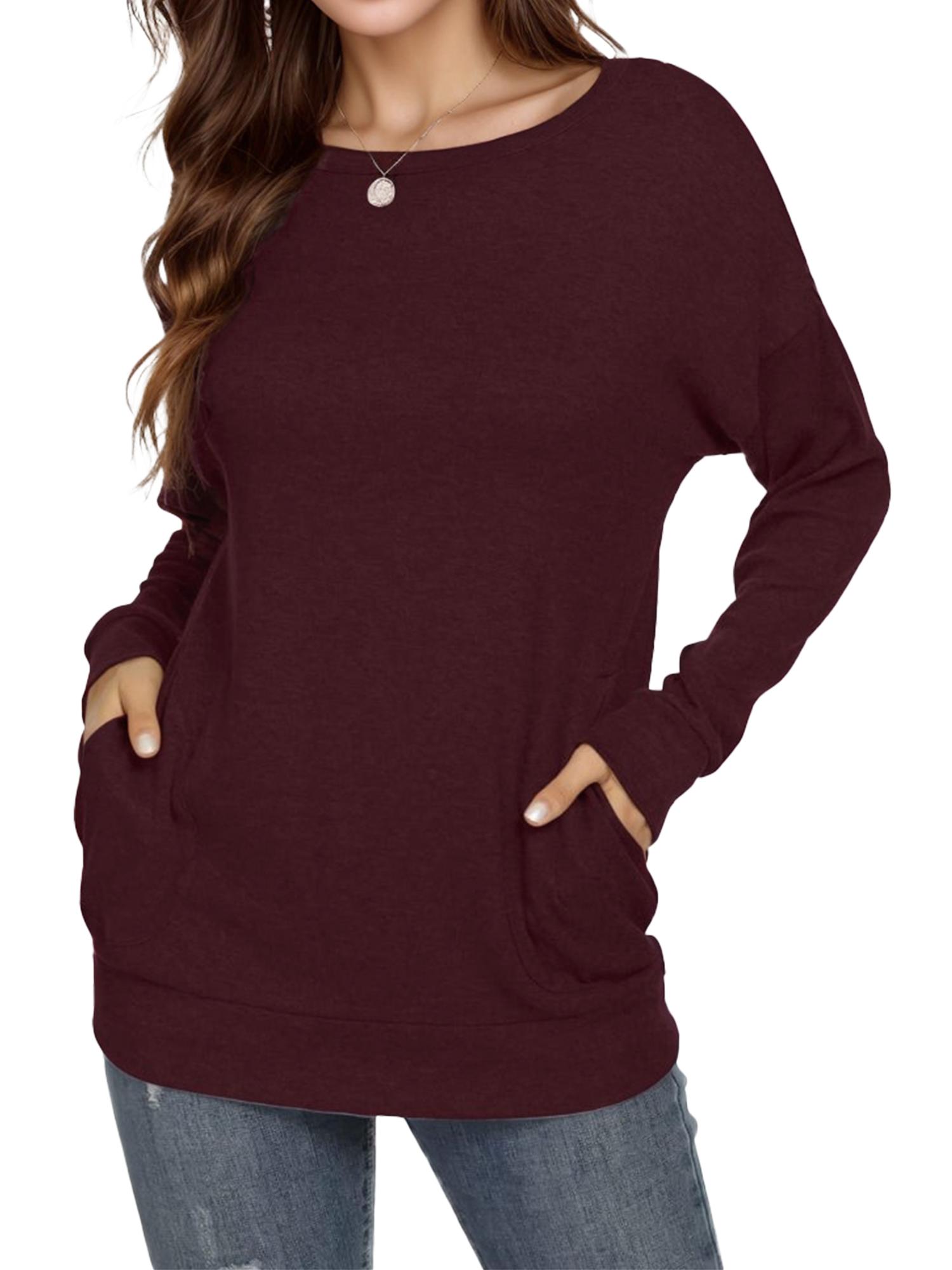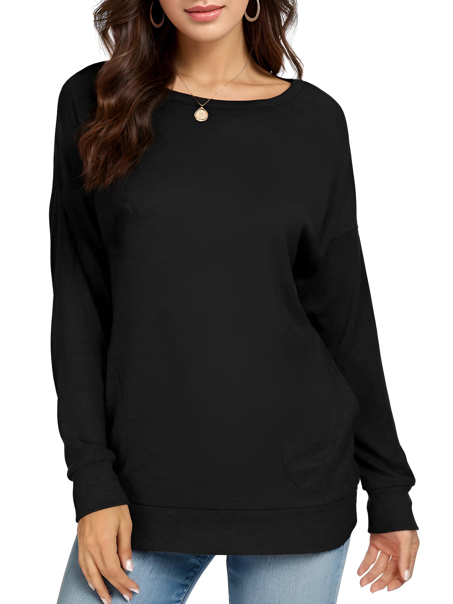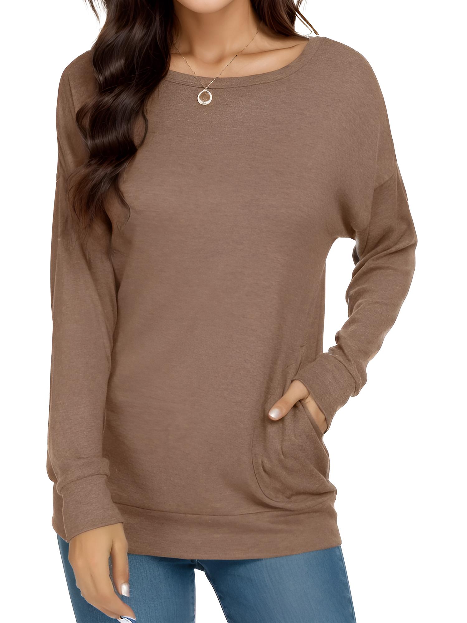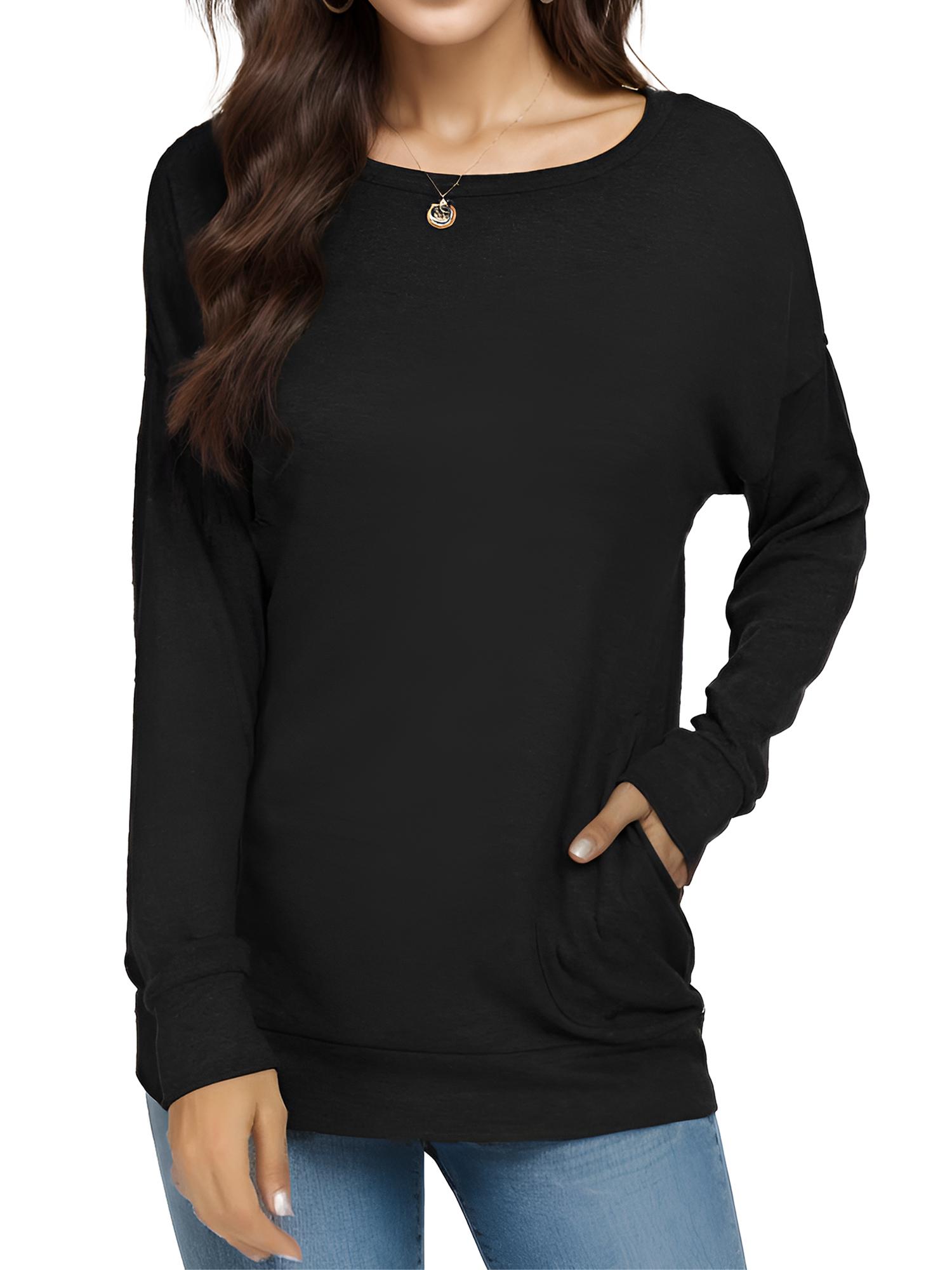 Women Casual Long Sleeve Tops Blouses Crew Neck Shirts with Pockets