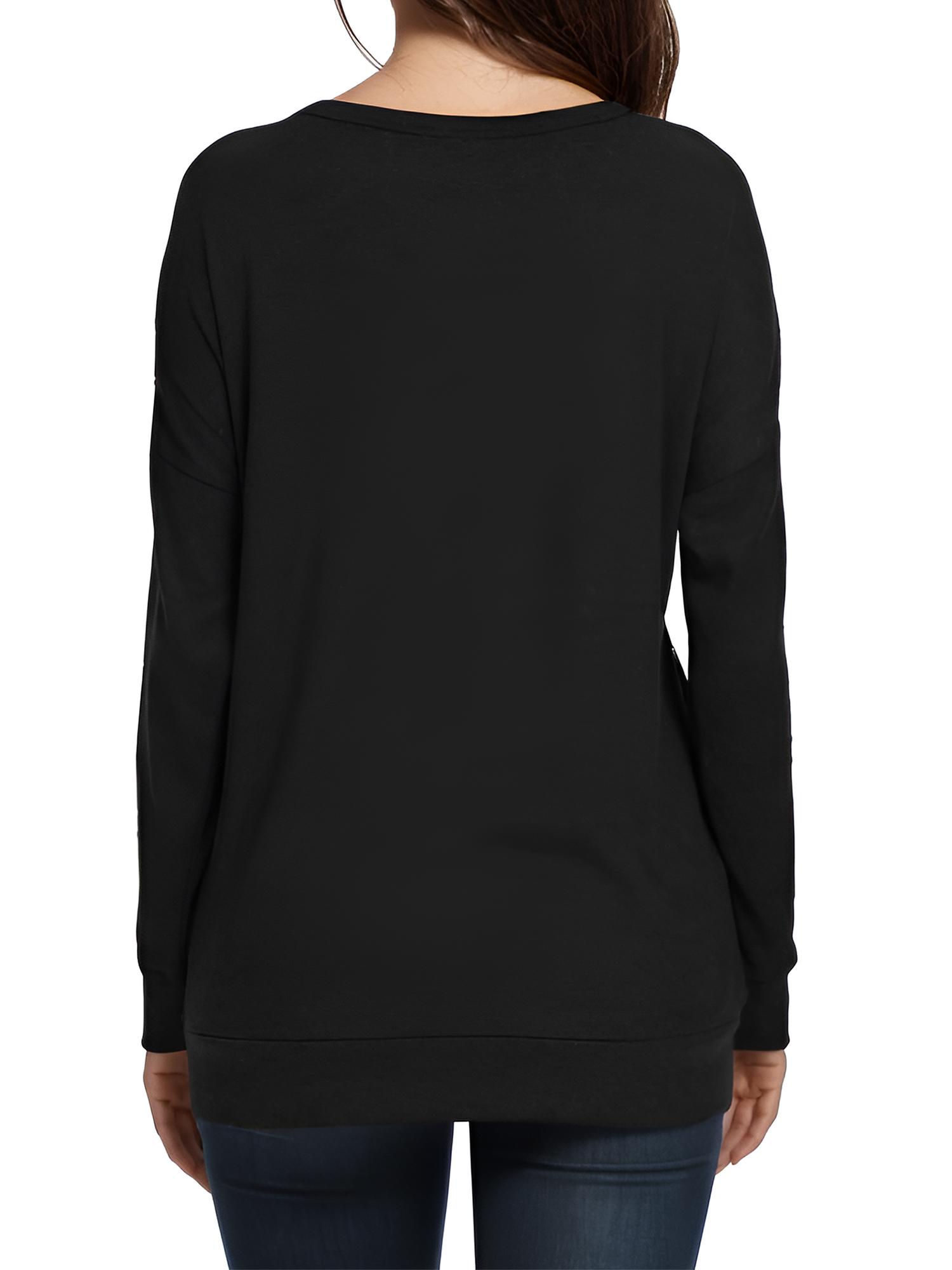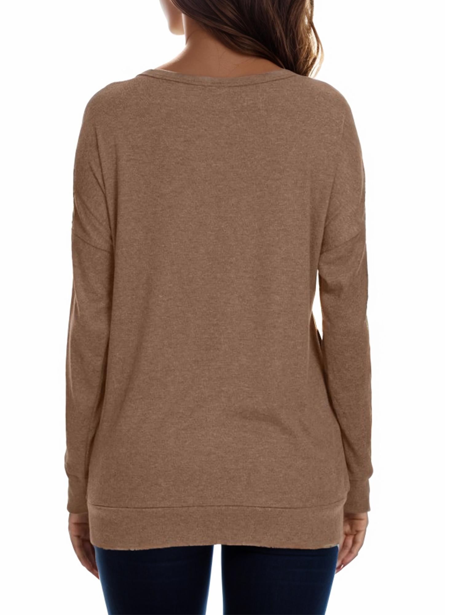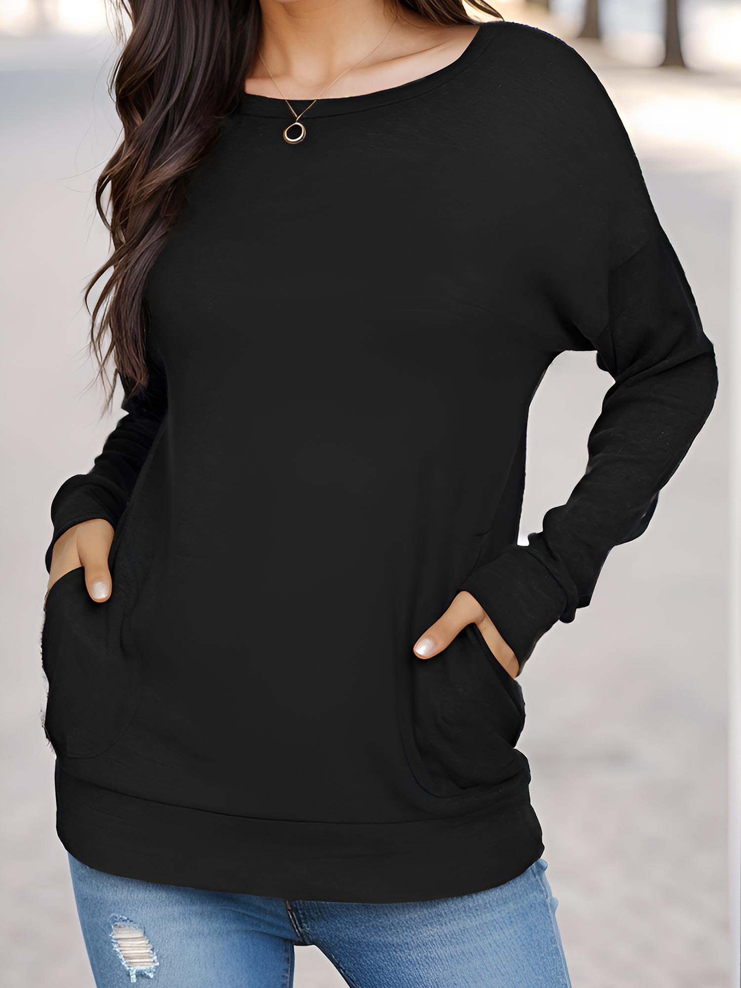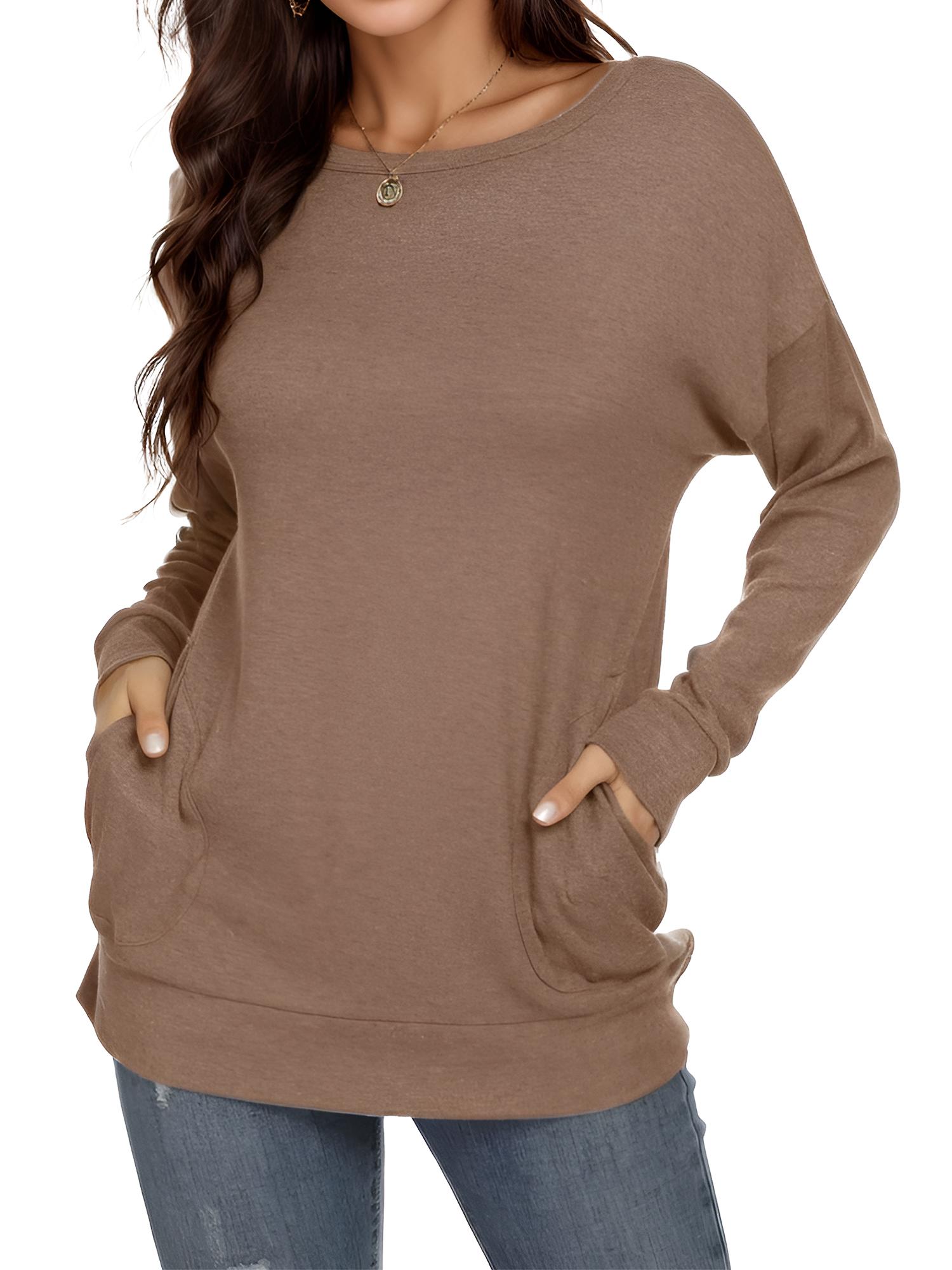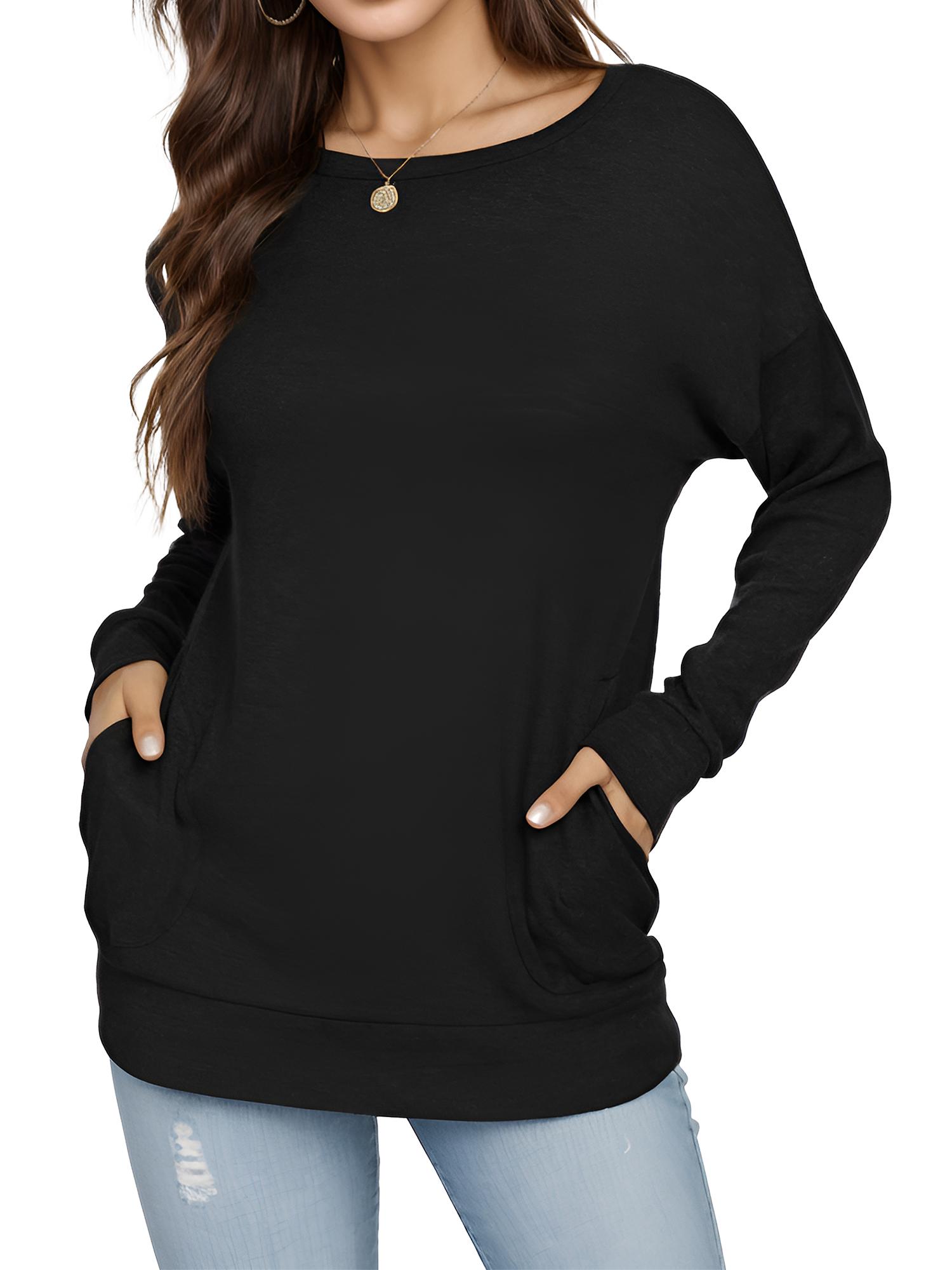 Women Casual Long Sleeve Tops Blouses Crew Neck Shirts with Pockets