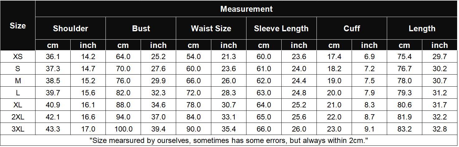 Size: There are 5 sizes (S/M/L/XL/XXL) available for the following listing. please allow 1-2cm differs due to manual measurement, thanks (All measurement in cm and please note 1cm=0.3937inch)
