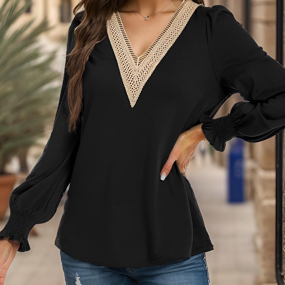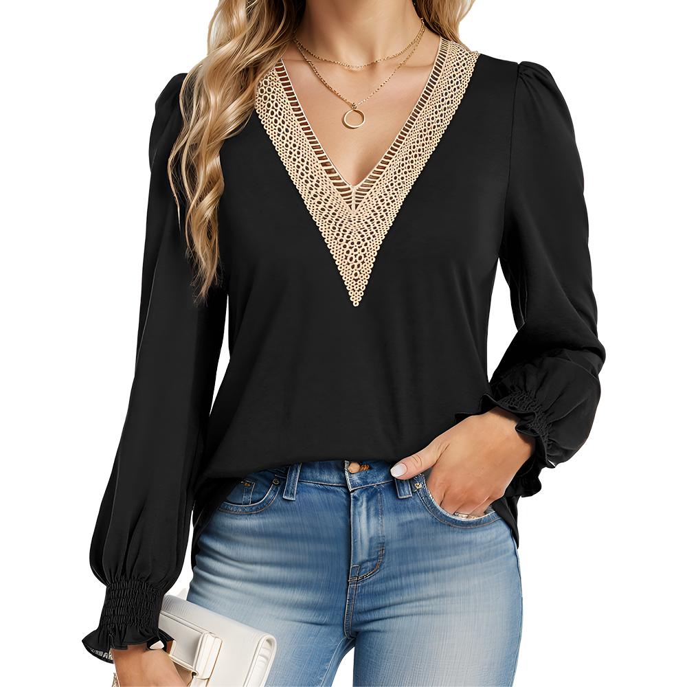 Cute puff long sleeve, classic and trendy lace V-neck design are popular with modern women of all ages for a daily fashion look.