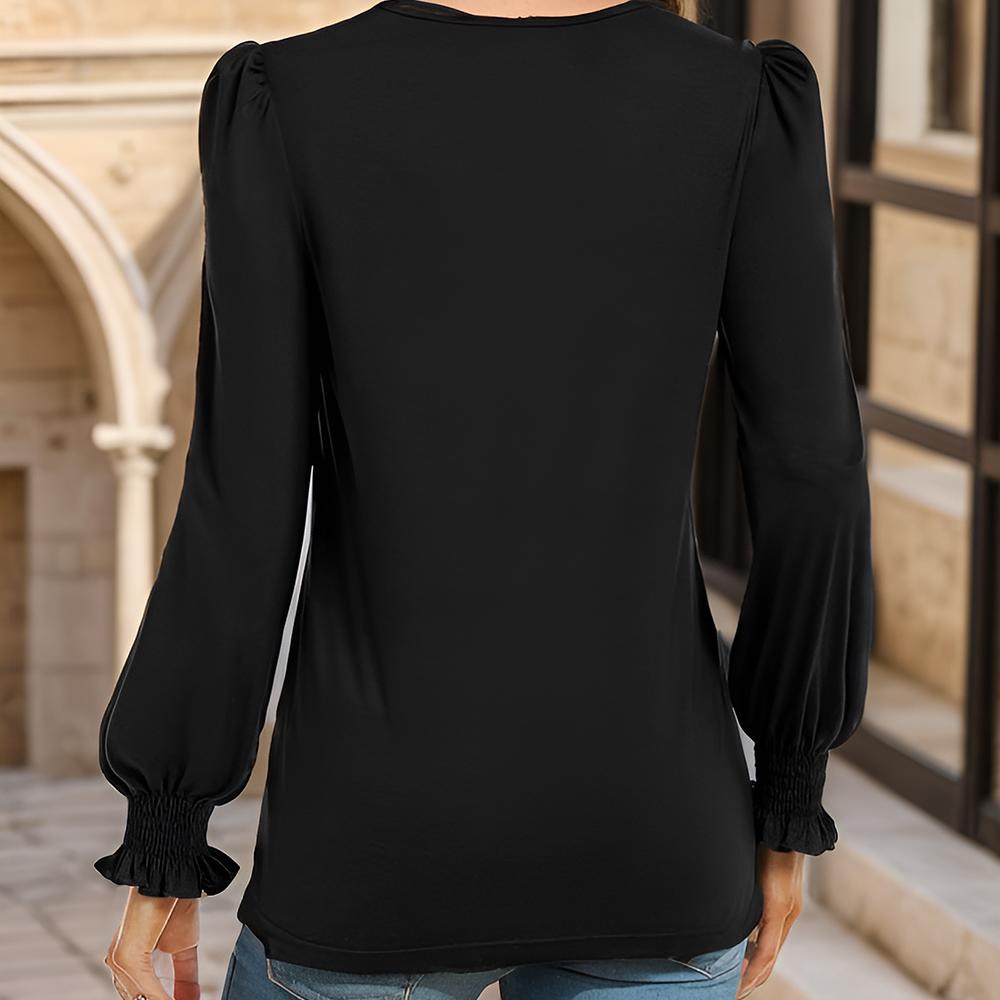 Women's Casual Lace V Neck T-Shirt Puff Long Sleeve Tops Loose Blouses