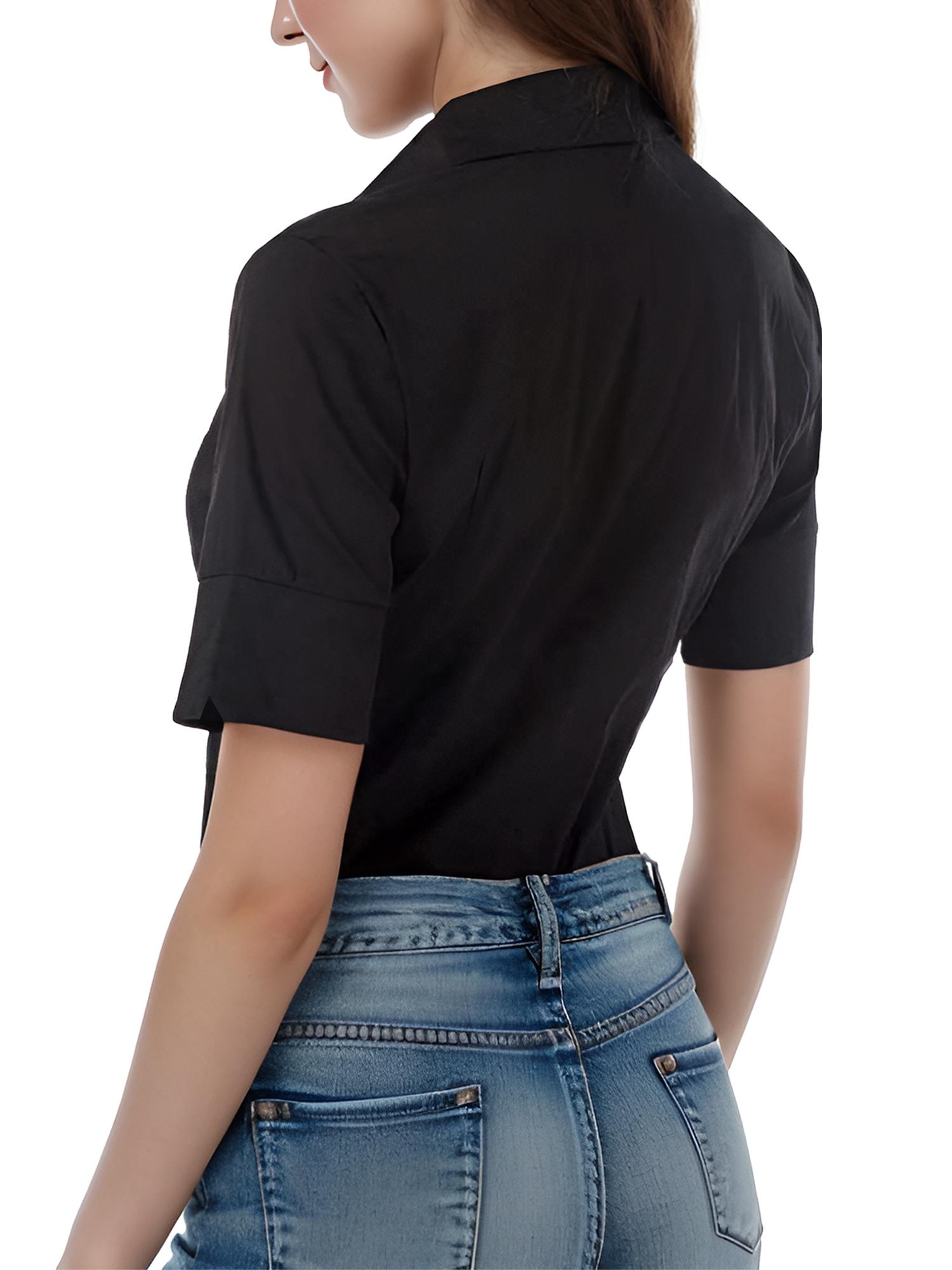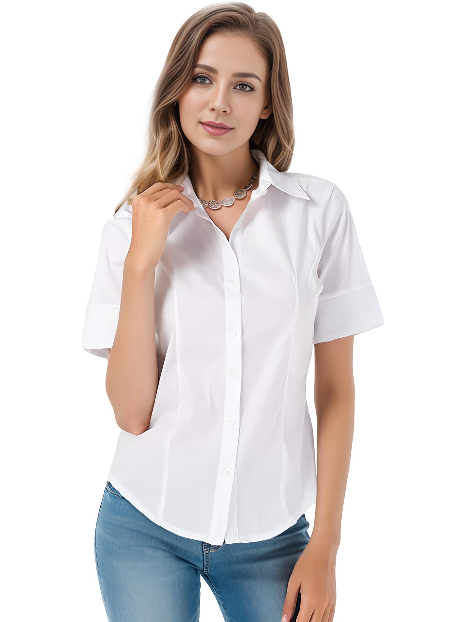 Womens Short Sleeve Basic Simple Button-Down Shirt