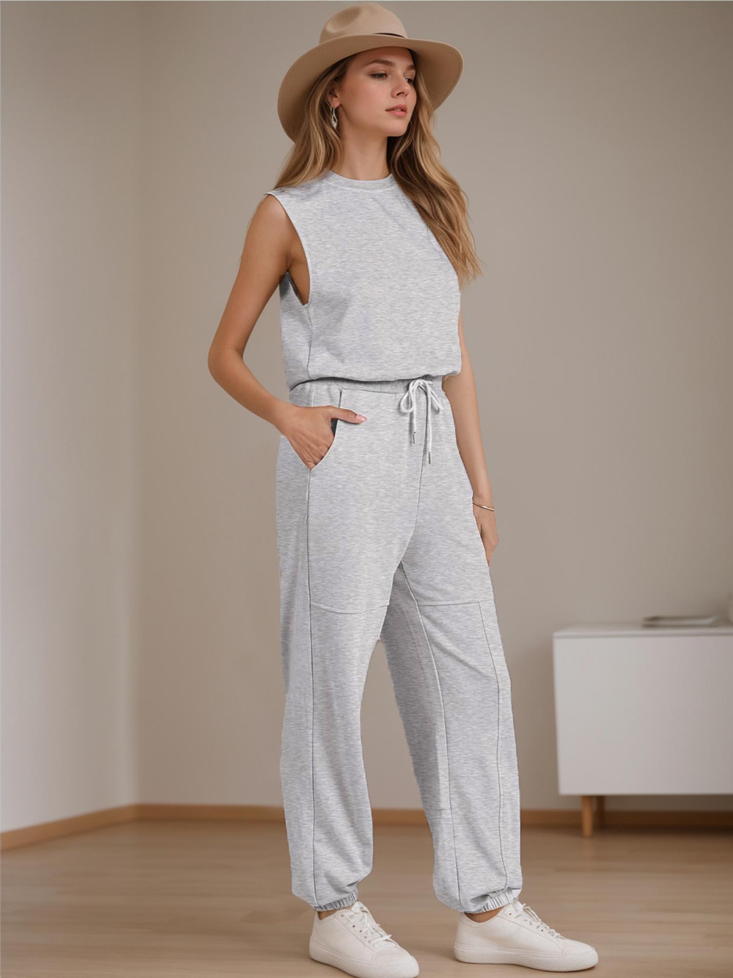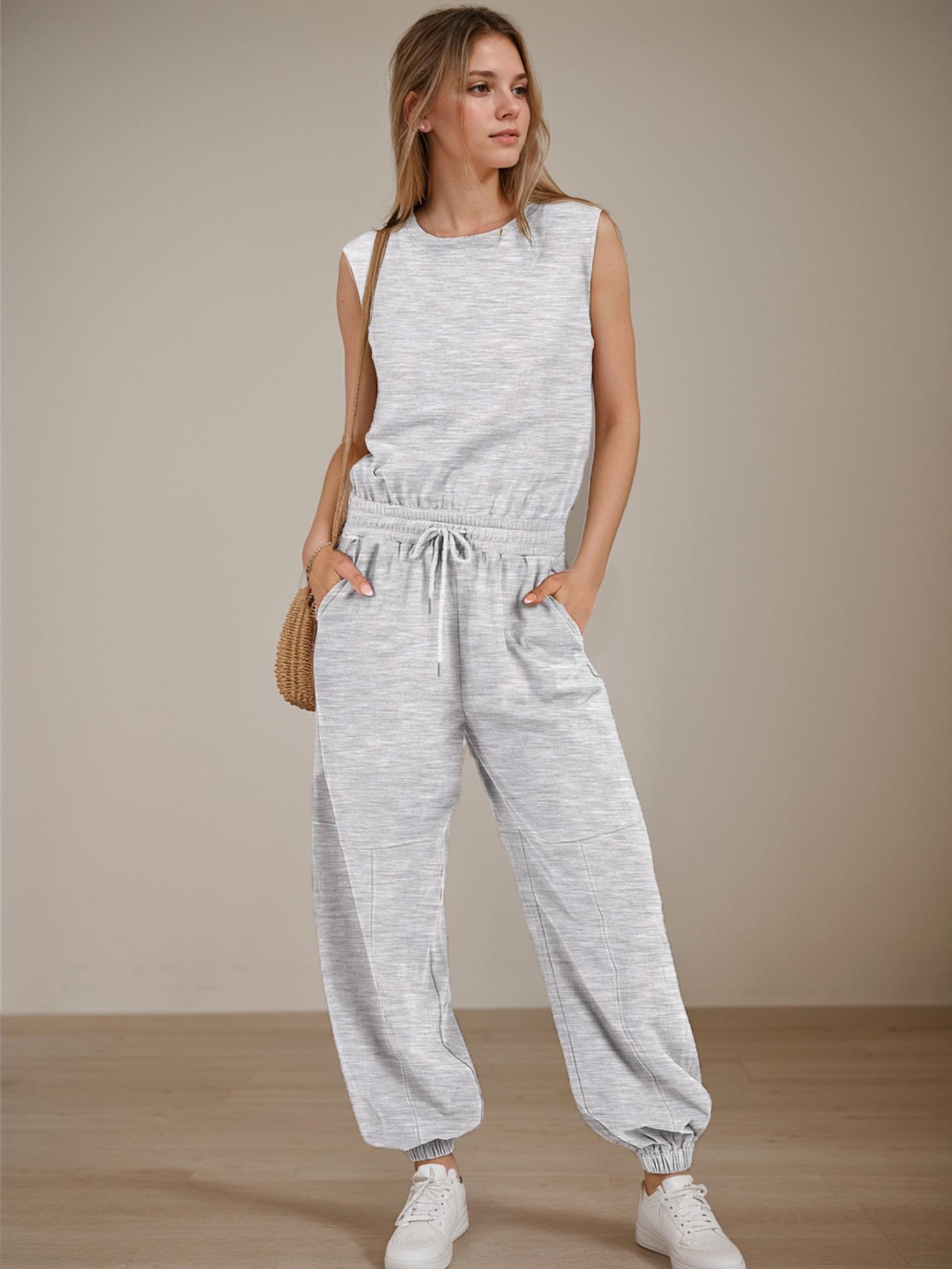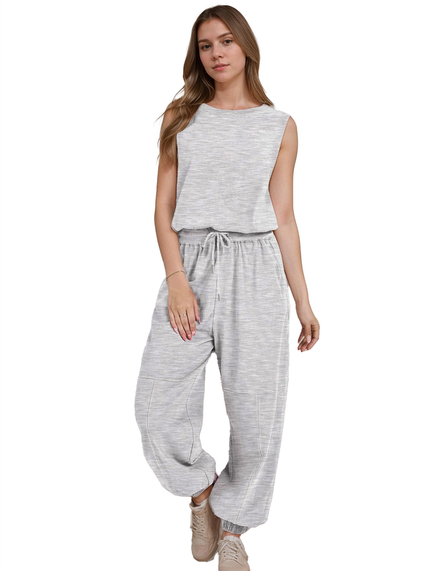 Women Casual One Piece Romper Sleeveless Lounge Jogger Tracksuits Sweatsuits