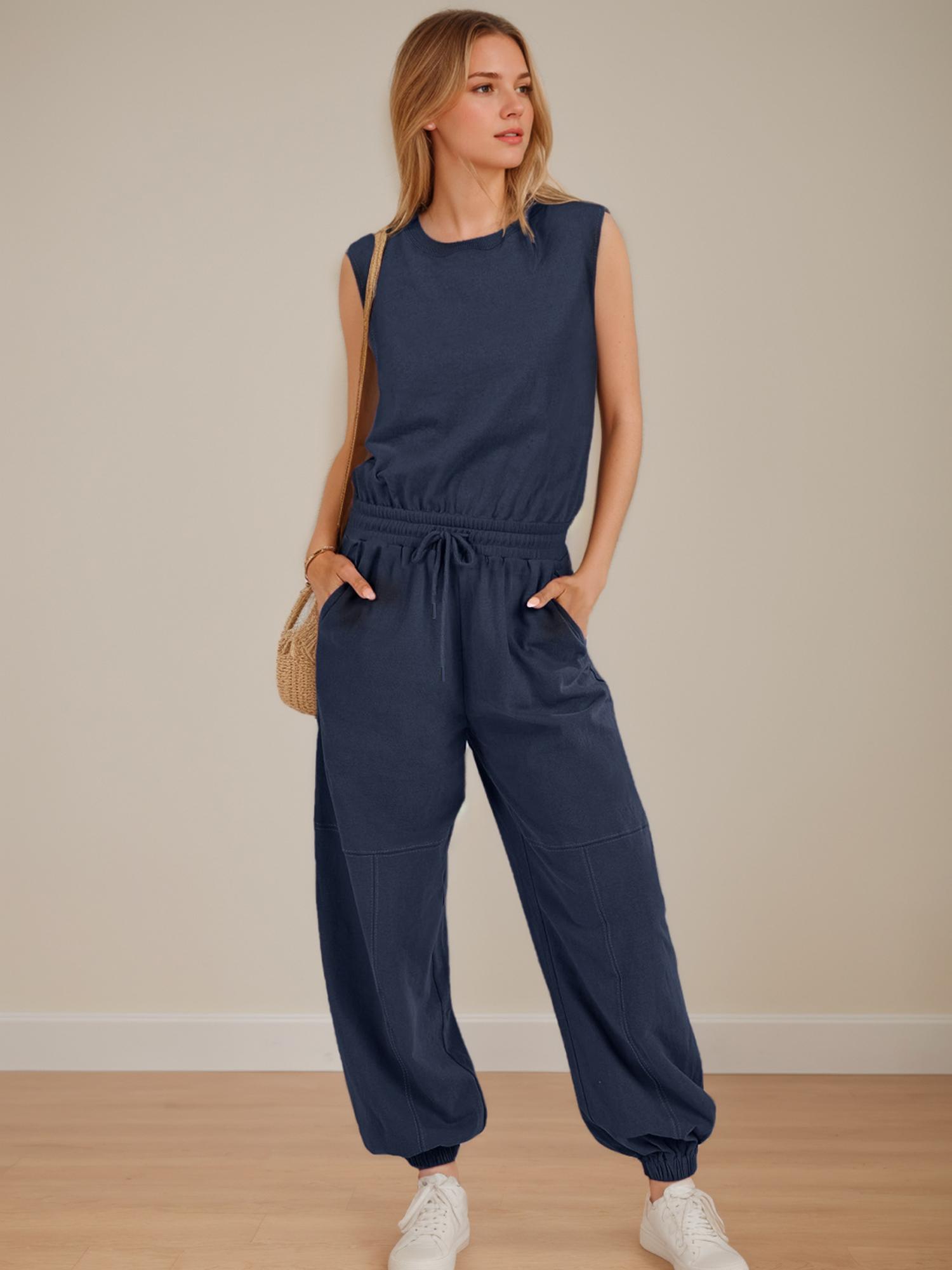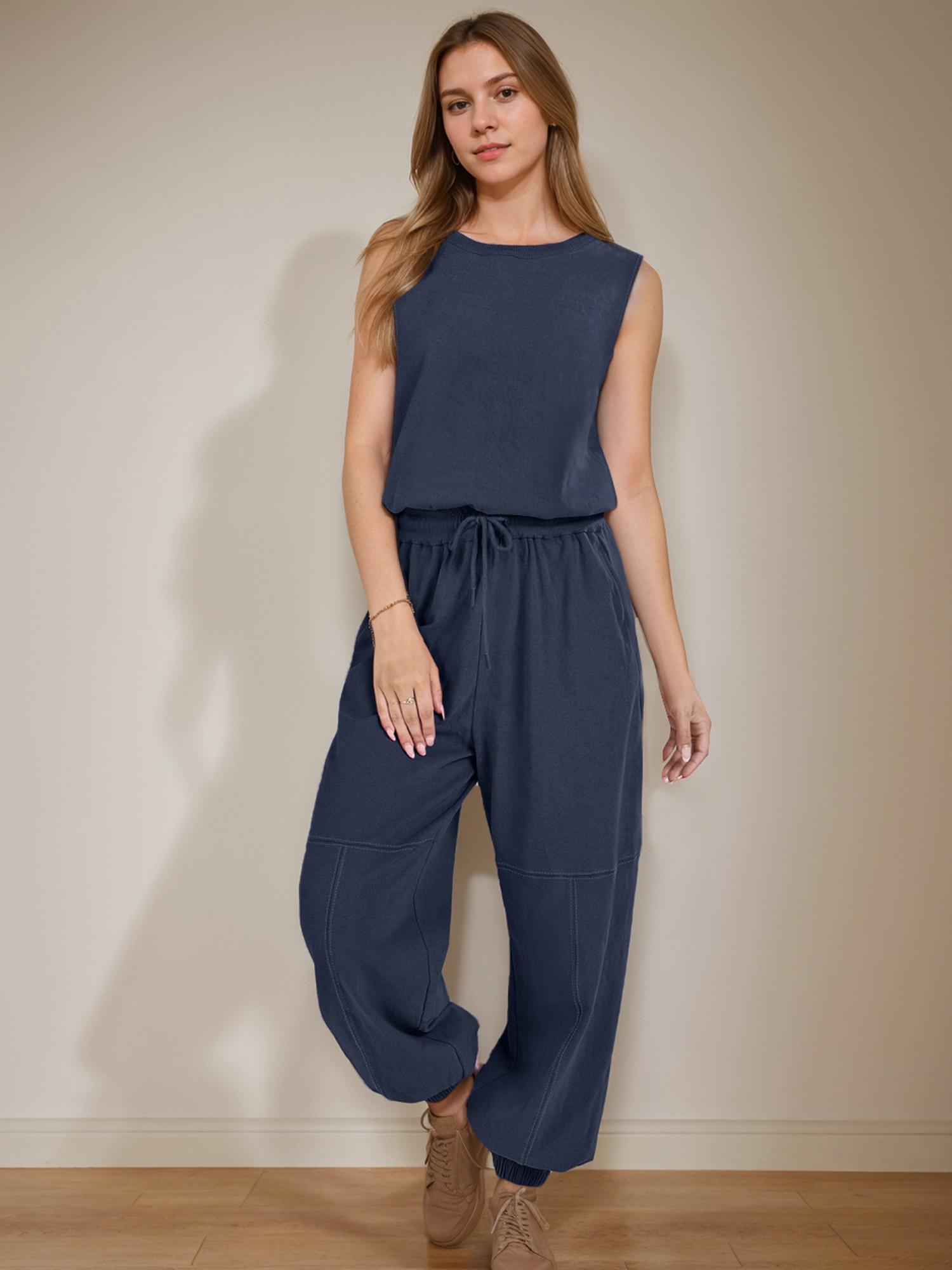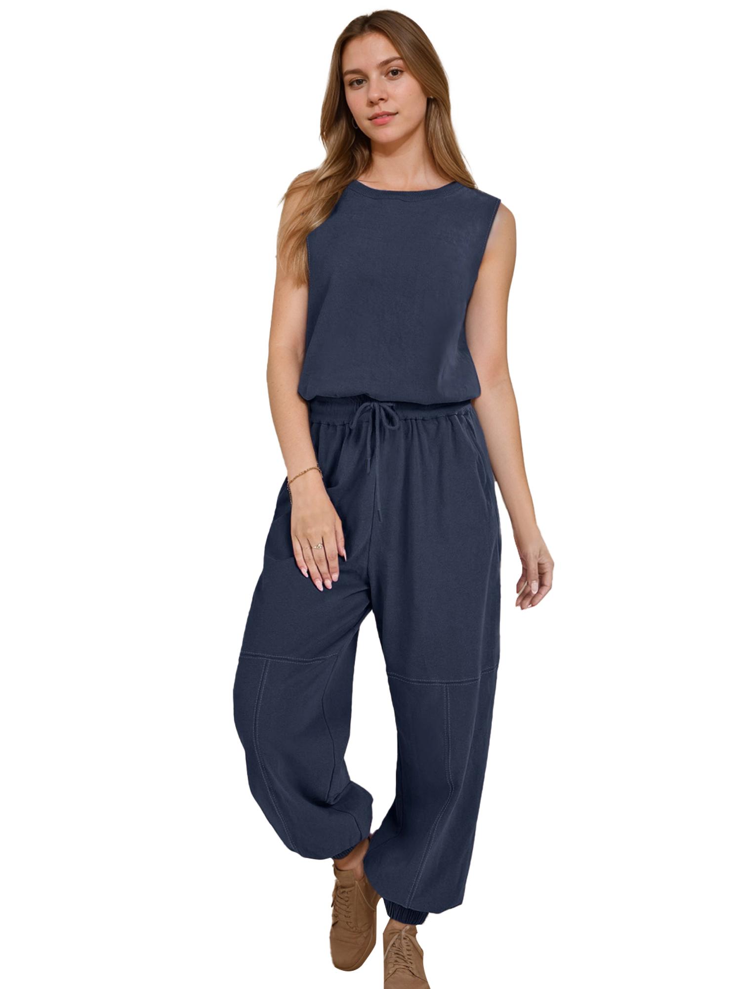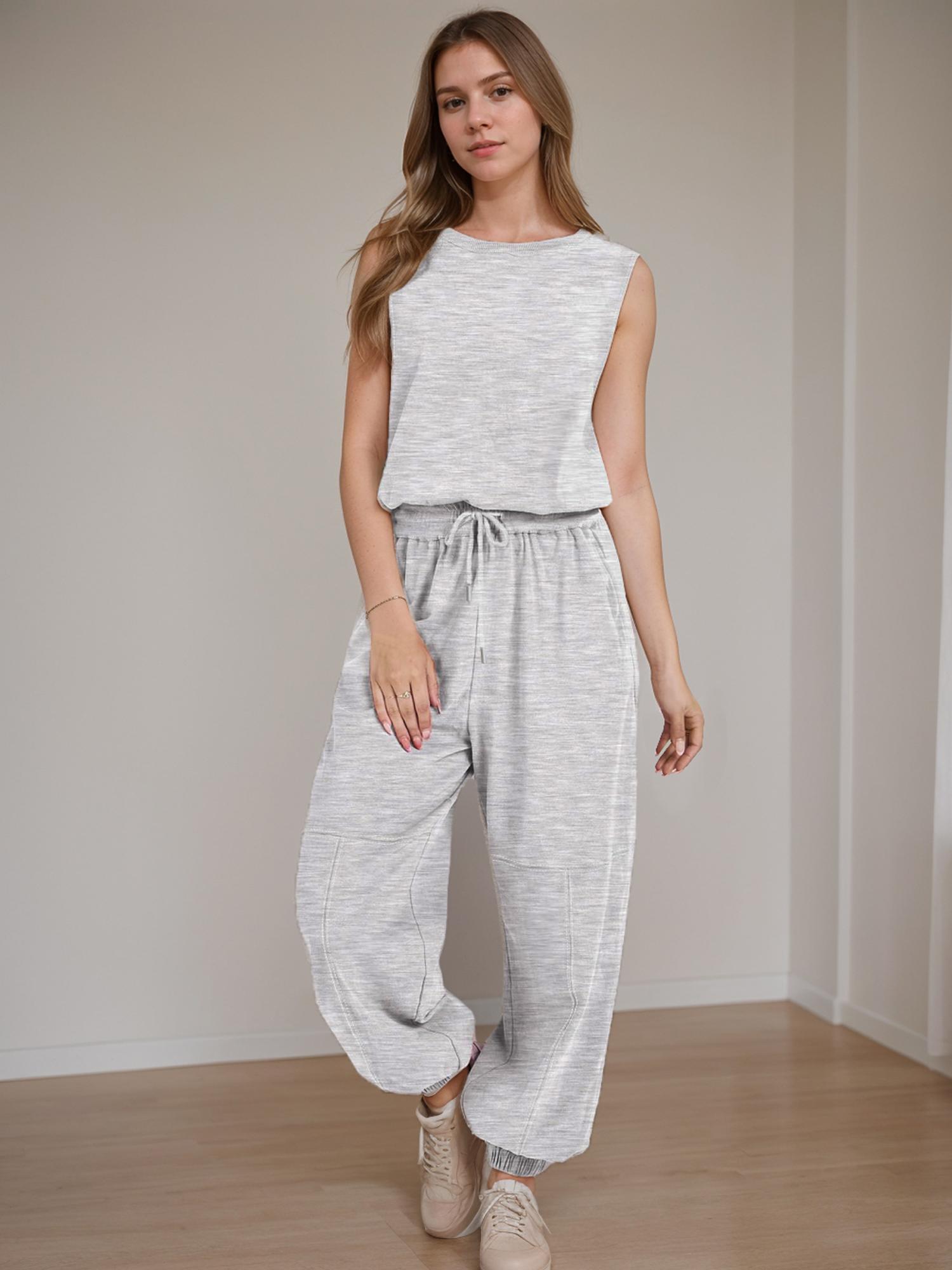 Women Casual One Piece Romper Sleeveless Lounge Jogger Tracksuits Sweatsuits