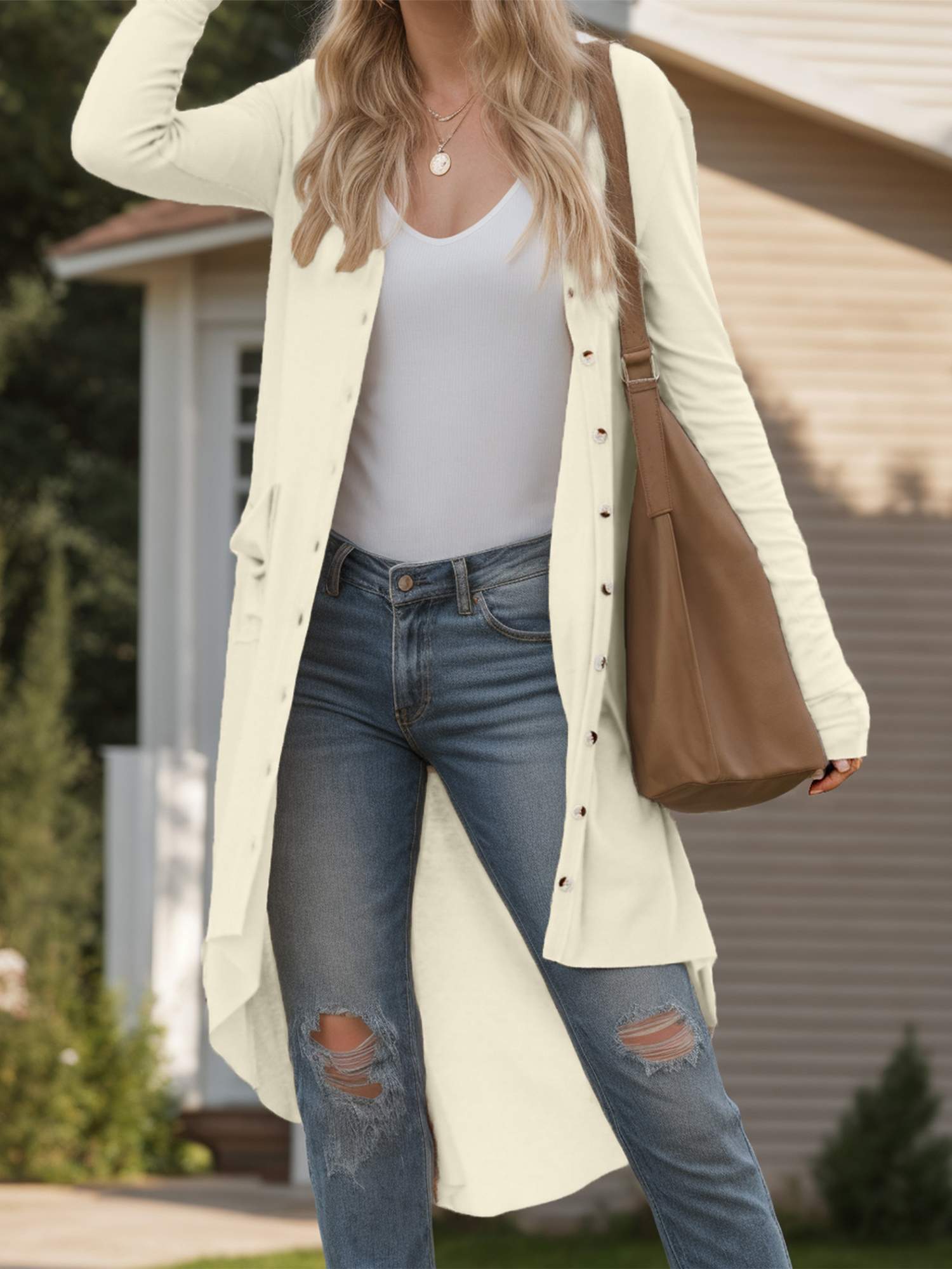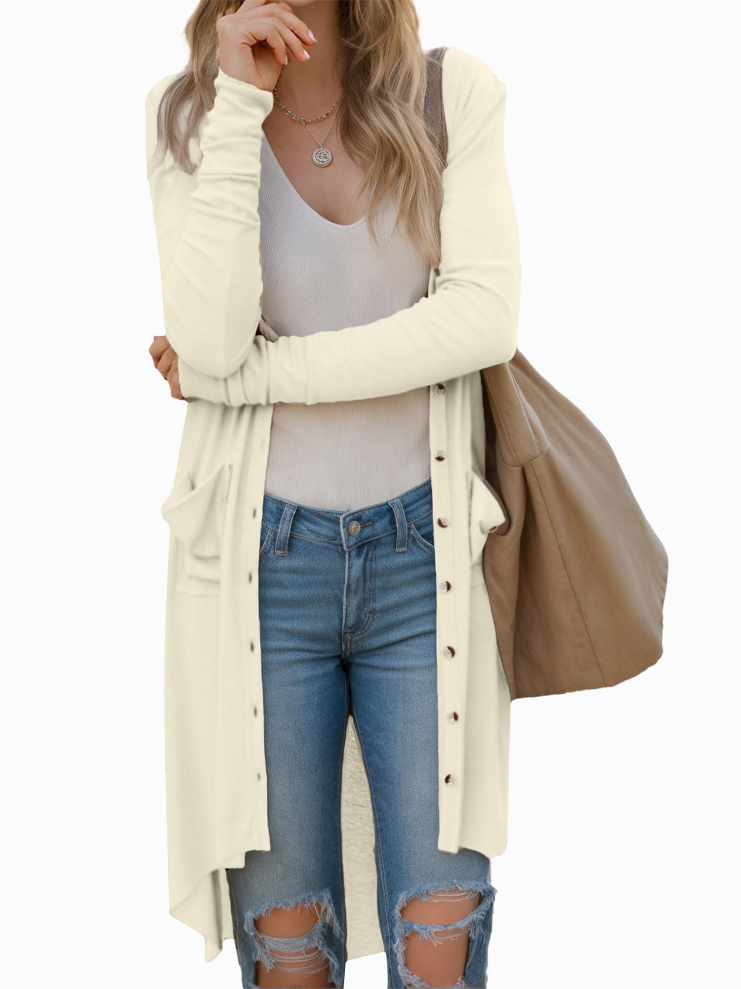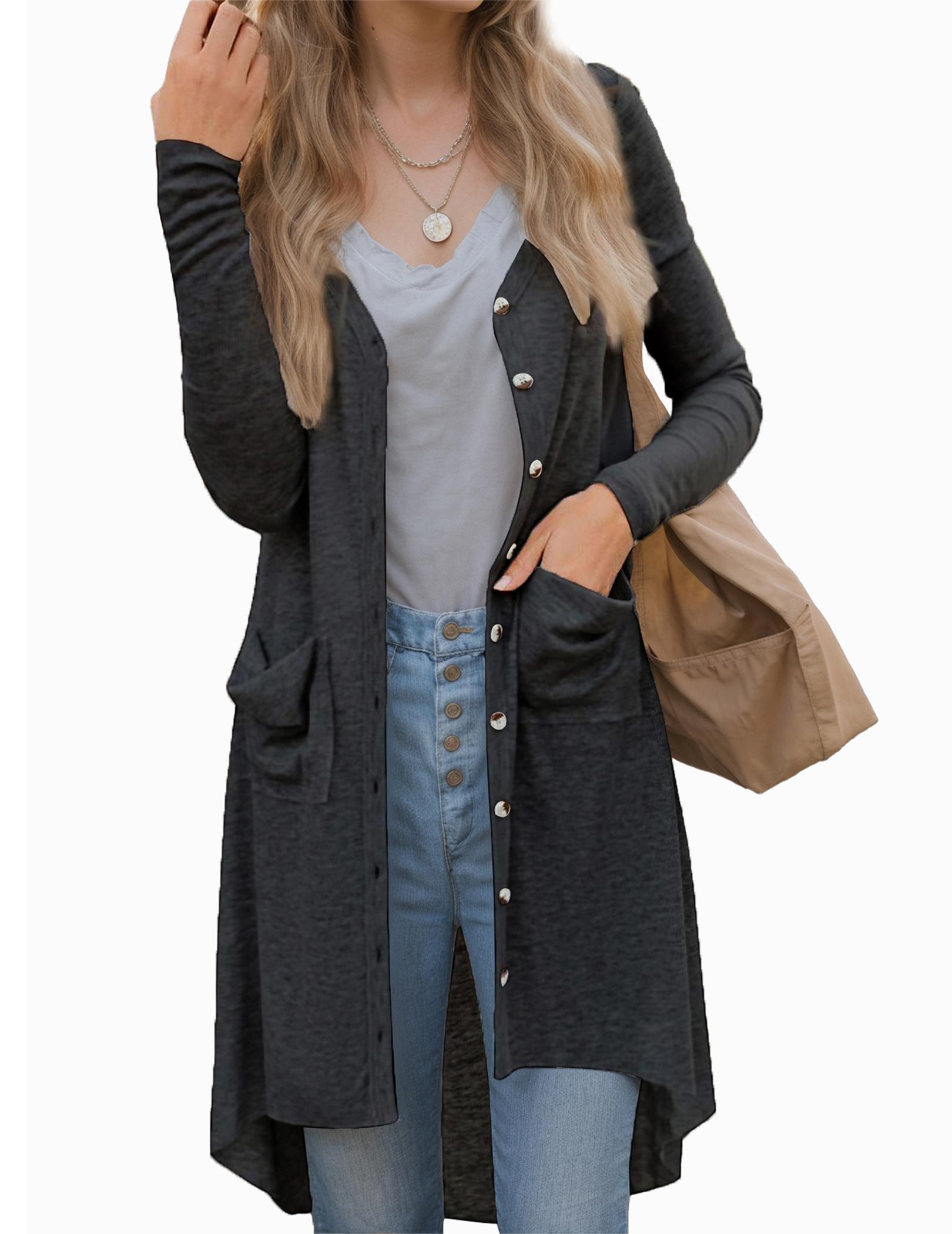 Women's Long Cardigans Button Down Solid Knit Loose Cardigans with Pockets