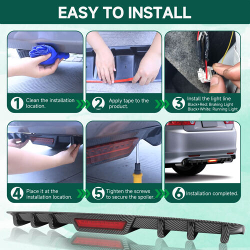 -OE Spec or Performance/Custom:Performance/Custom -Placement on Vehicle: Lower, Rear -Fitment Type:Performance/Custom -Interchange Part Number:Fit for Steering wheel, Gauge Pods, Dashboard, Door Panel -Other Part Number:Universal Fit diffuser Splitter Fins Body Kit Spoiler Valence Fitment: -For Car Universal -For Honda Acura Mazda Subaru Nissan Toyota Lexus Infiniti Mitsubishi (Fit most models) -For Mercedes Benz Audi VW Porsche (Fit most models) -For Ford Chevrolet Cadillac Lincoln Buick (Fit most models) Package Included: 1x Rear Bumper 6 Fins Diffuser Screws and Tapes