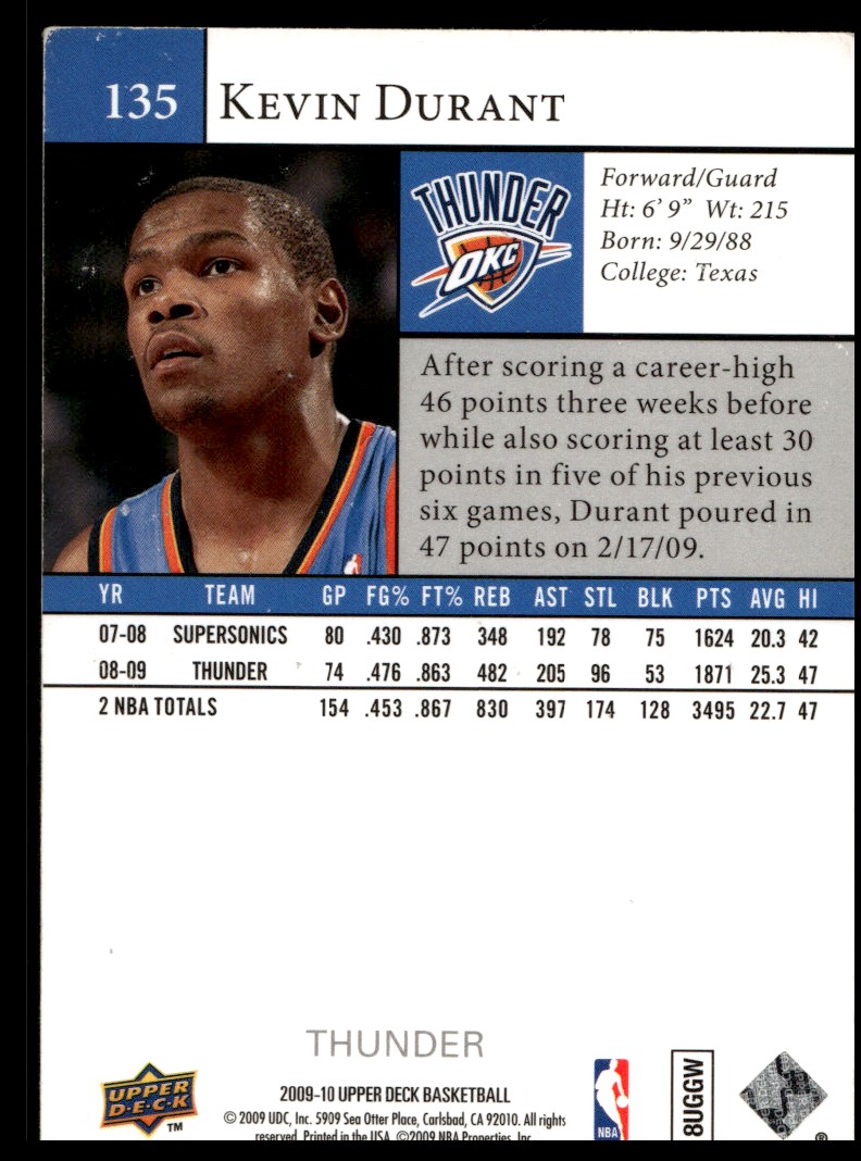 2009-10 Upper Deck Kevin Durant Oklahoma City Thunder #135