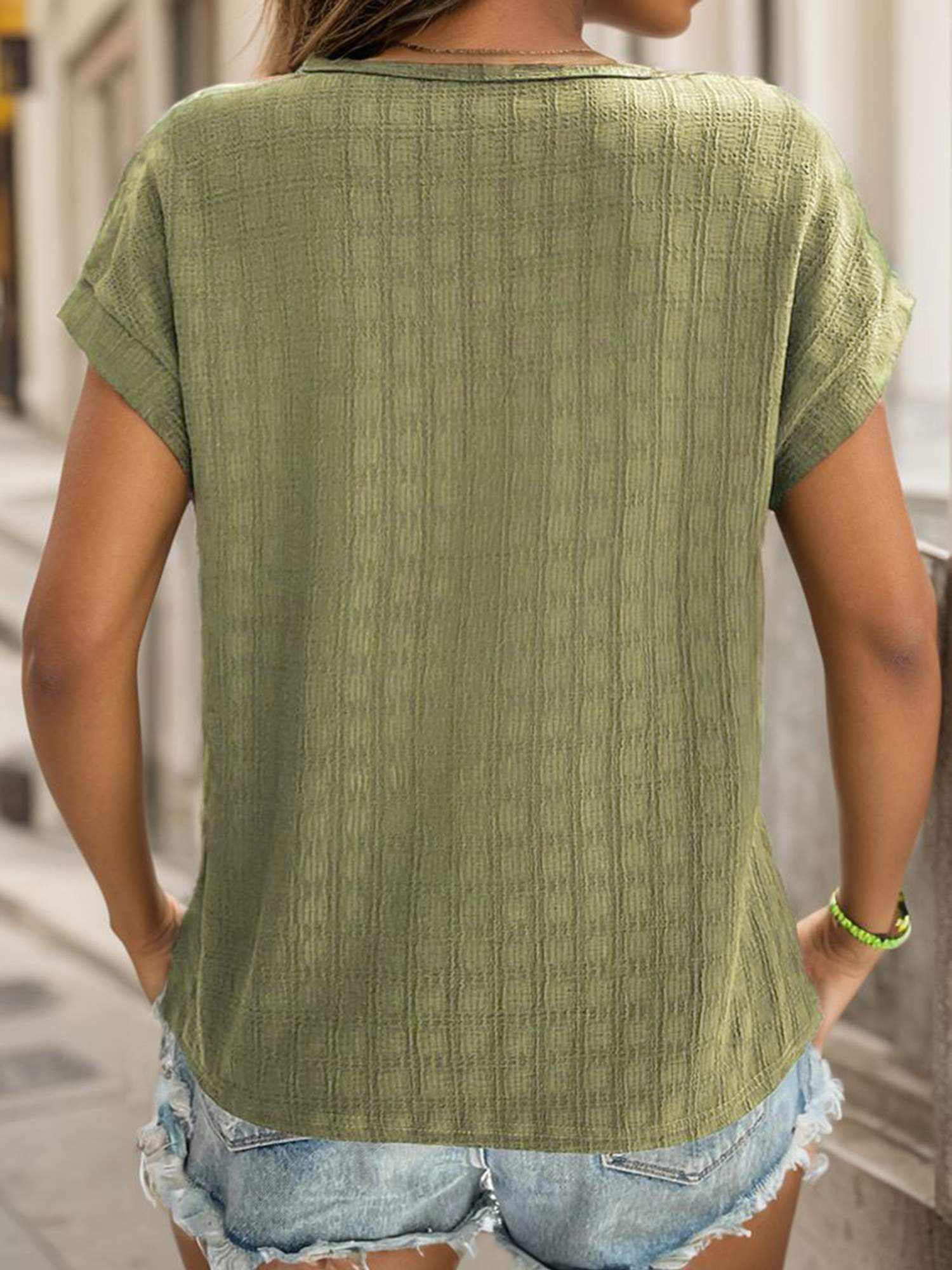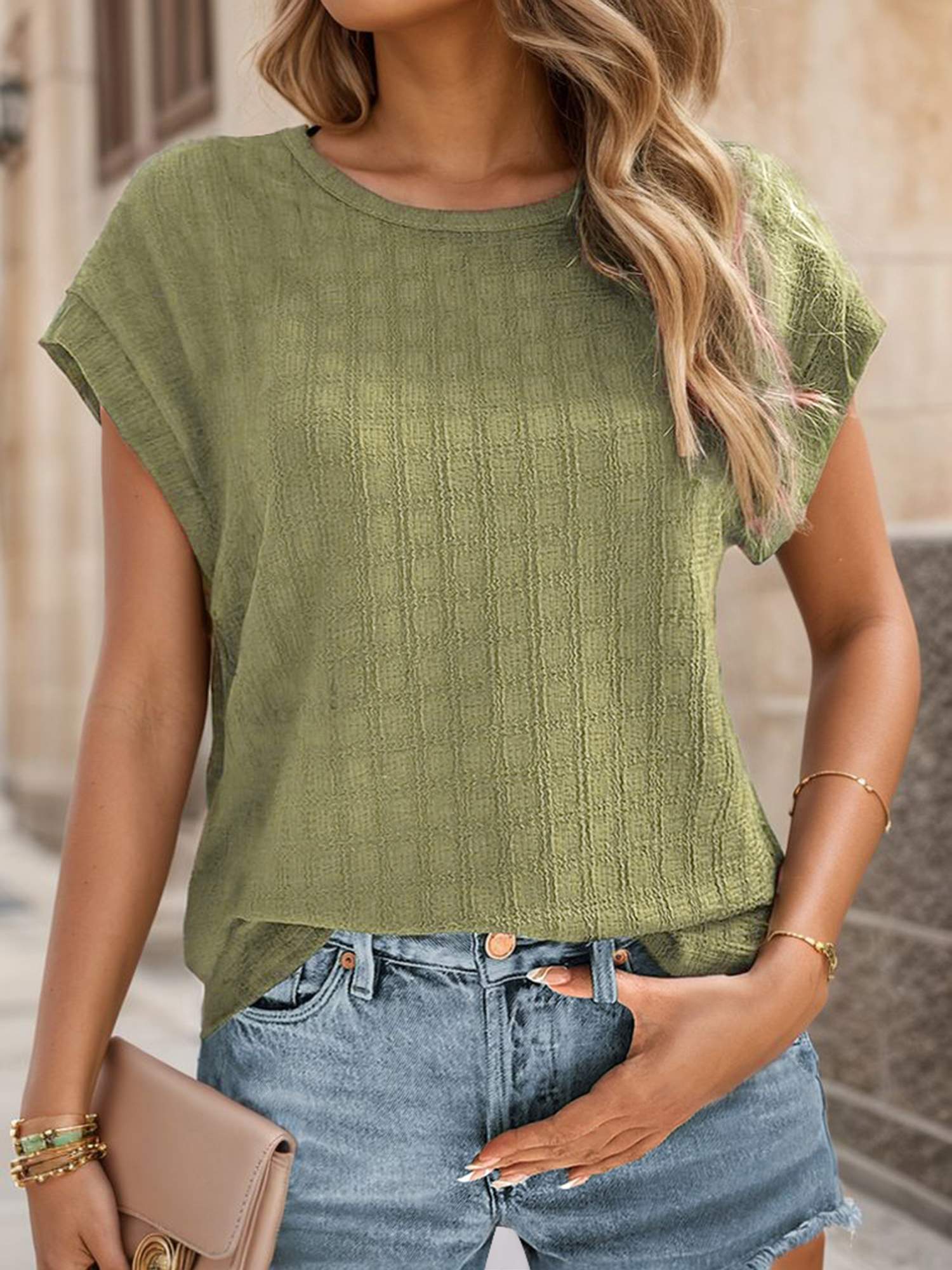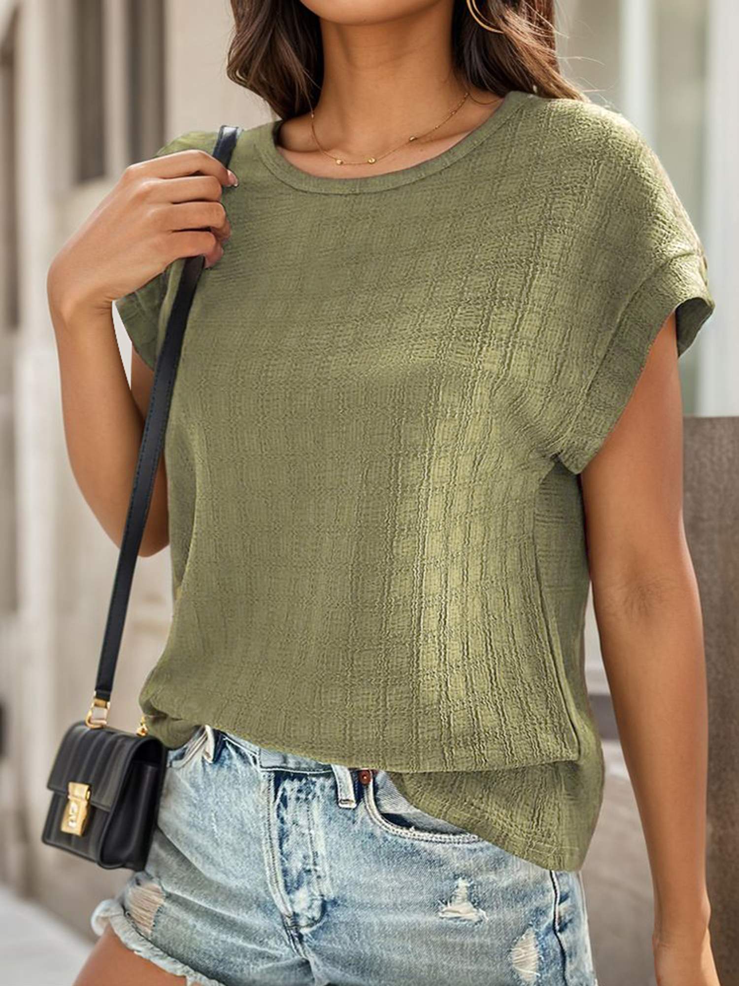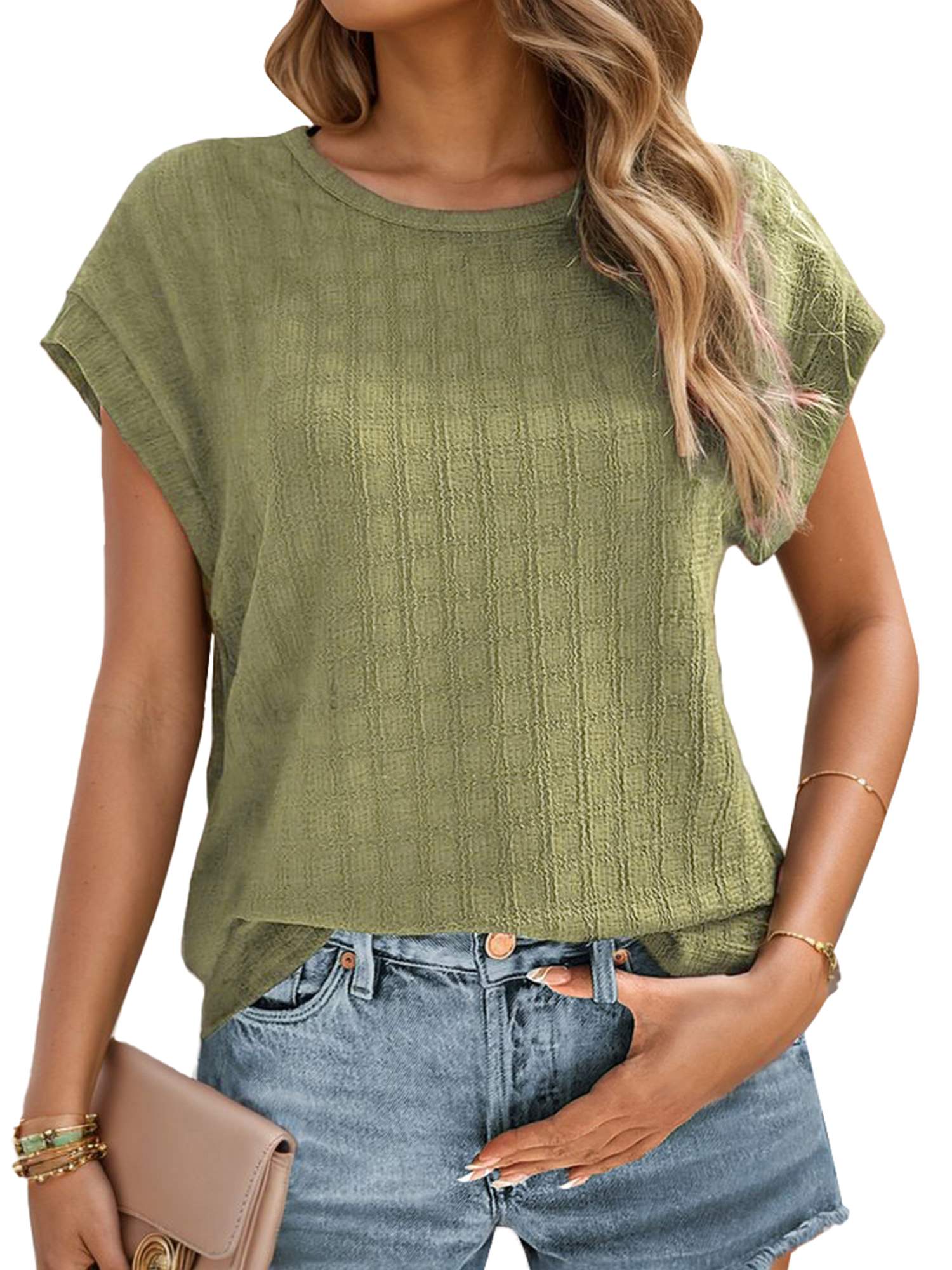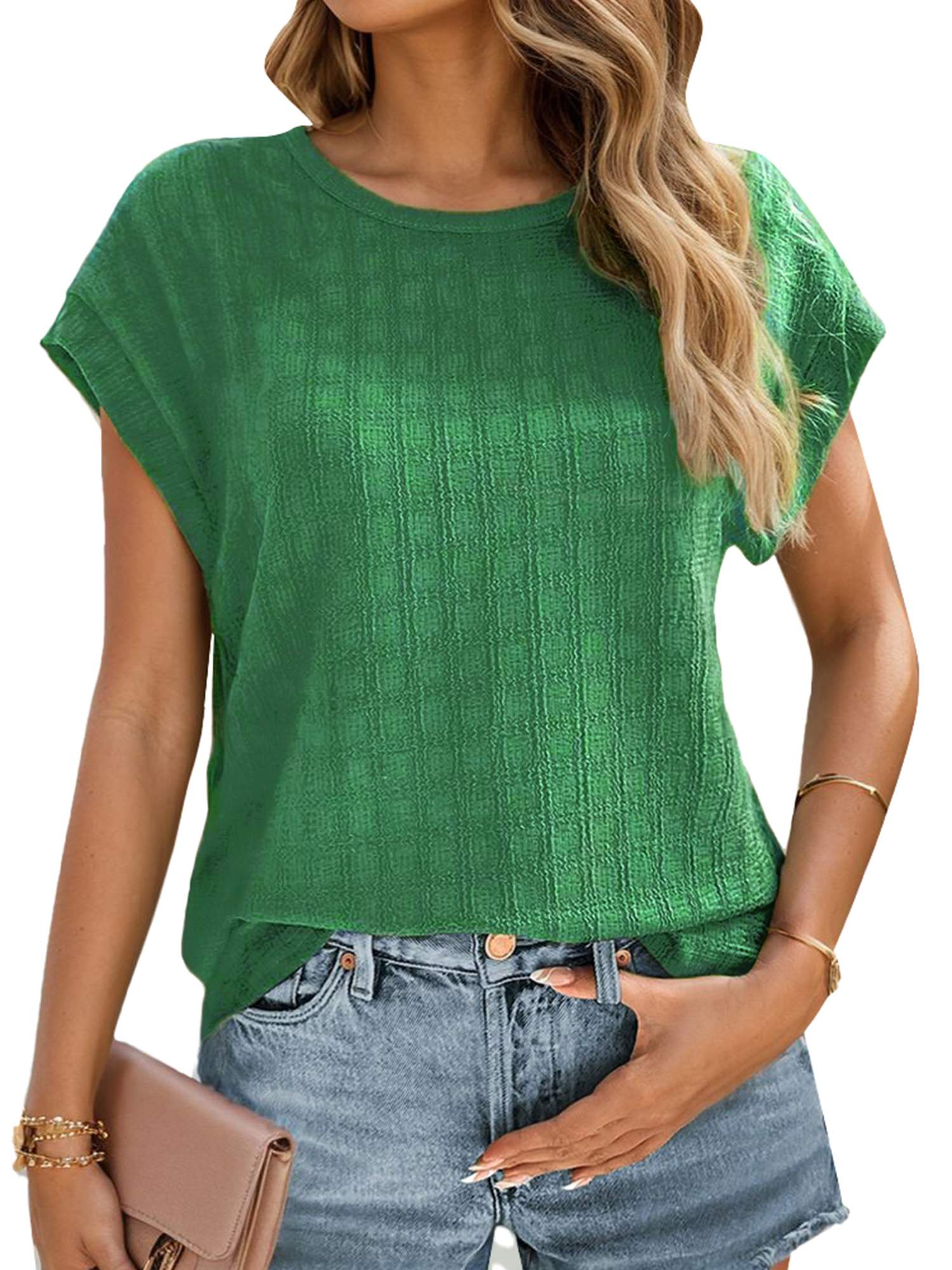 Design: Short sleeve, textured, solid color, batwing sleeve, crewneck