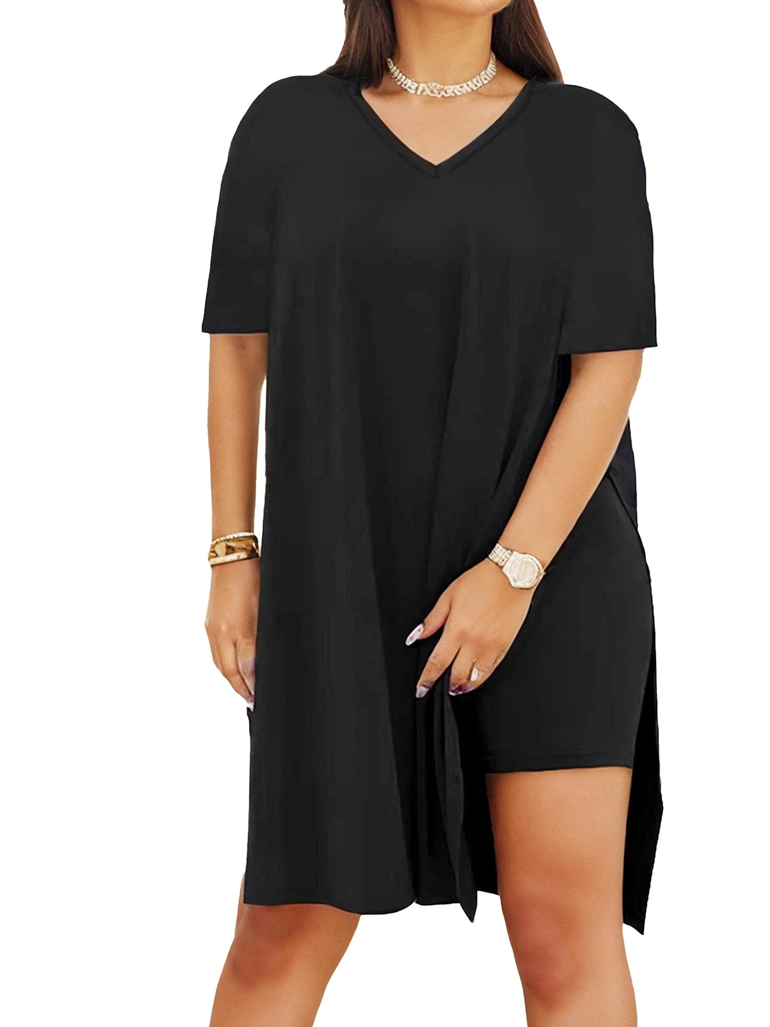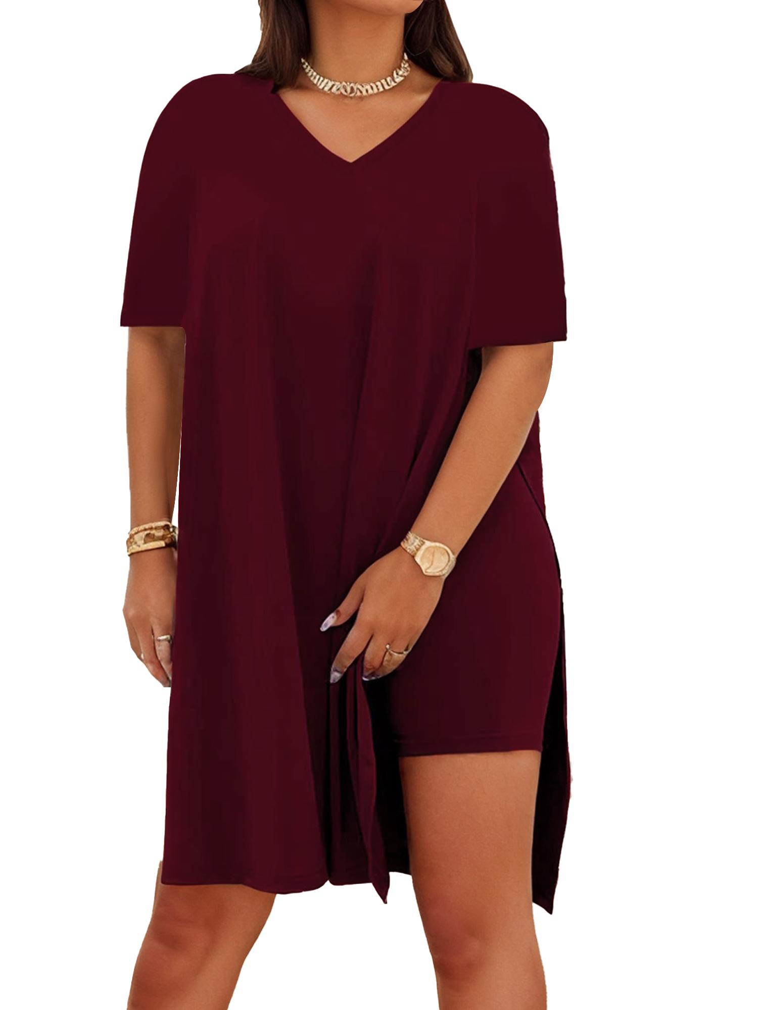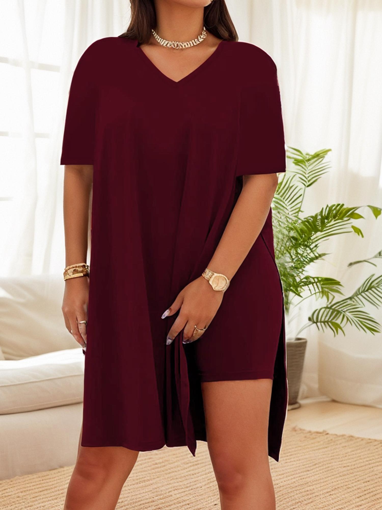Casual V-neck short sleeve T-shirt, solid color sweatsuit, high waist bike shorts, 2-piece jogging set.