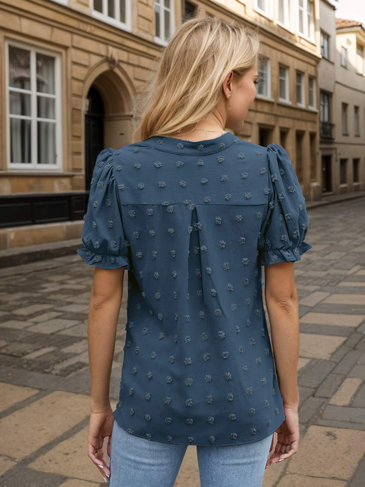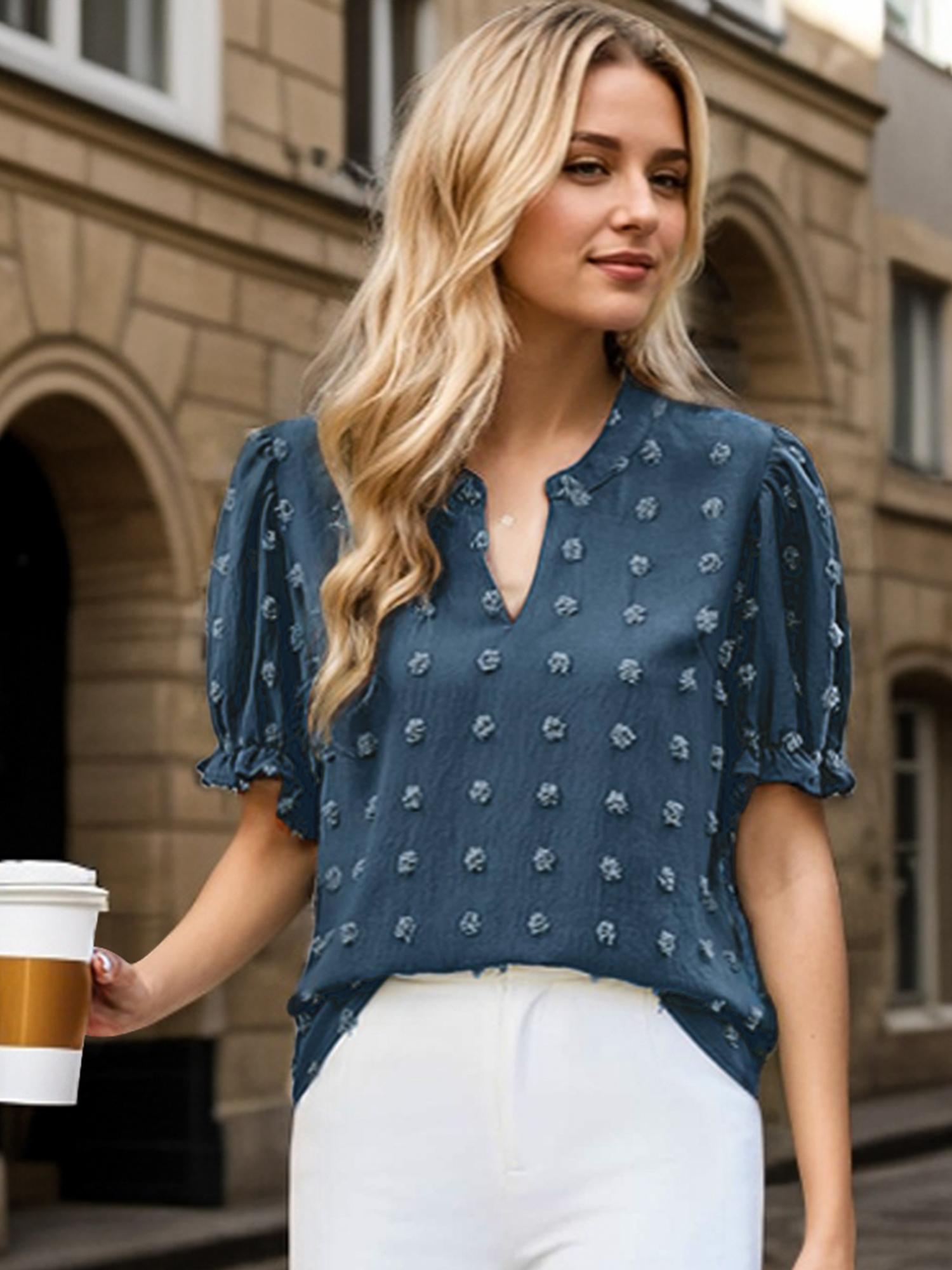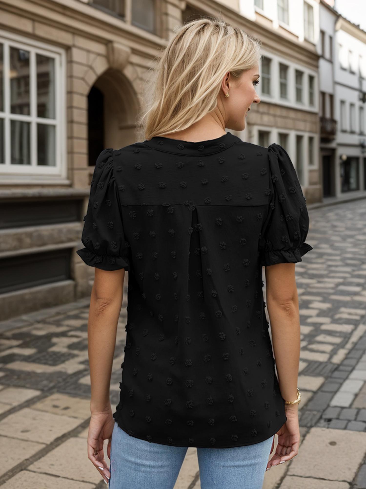 Womens Puff Sleeve Tops Chiffon V Neck Short Sleeve Blouses