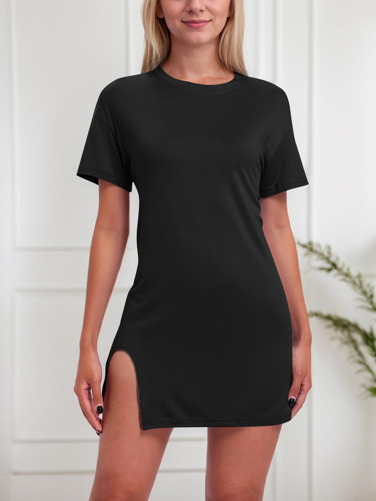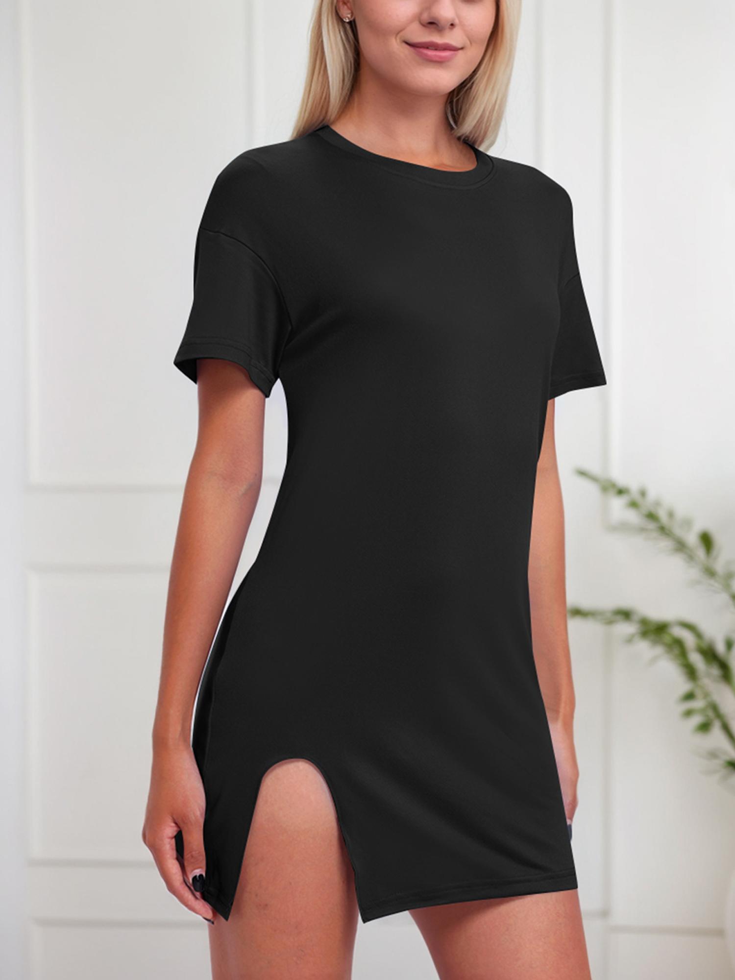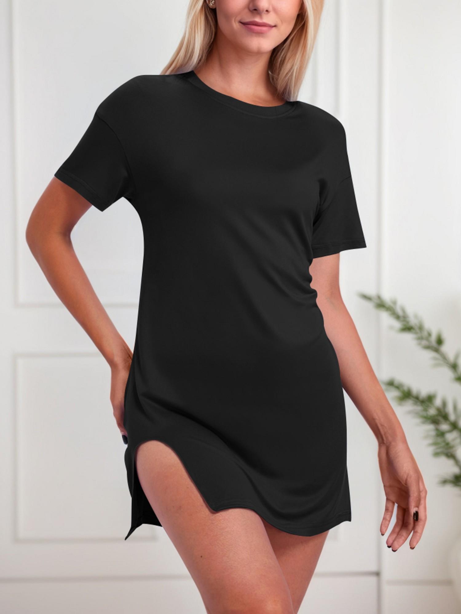 Women's Solid Color Short Sleeve Casual Dress With Slit Hem