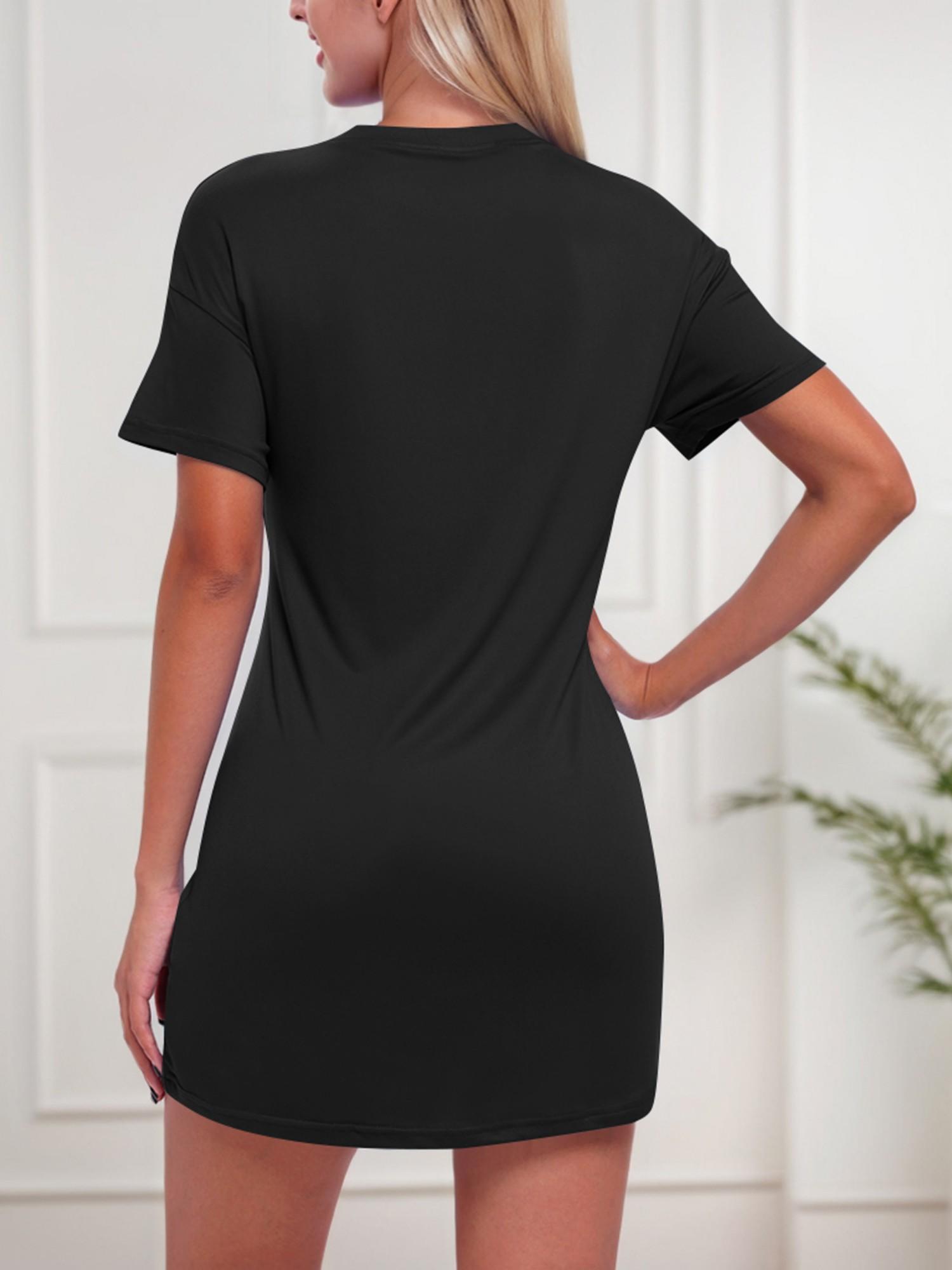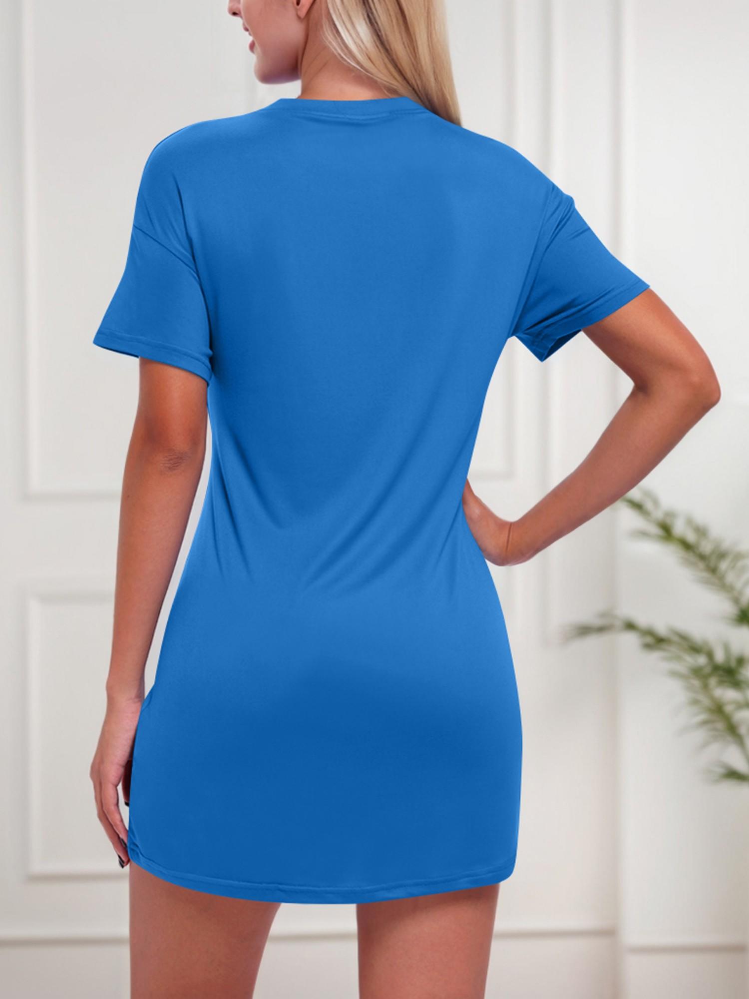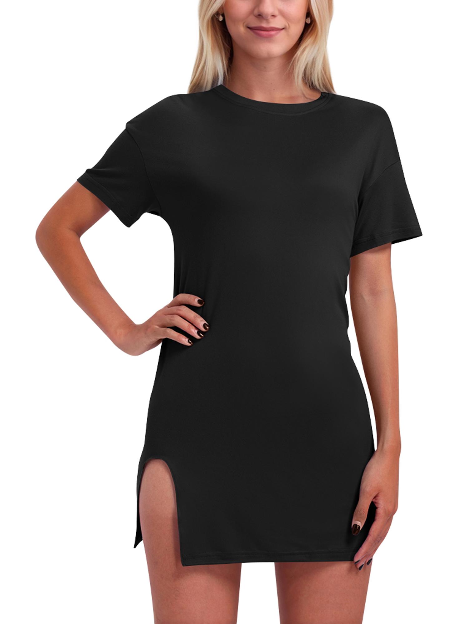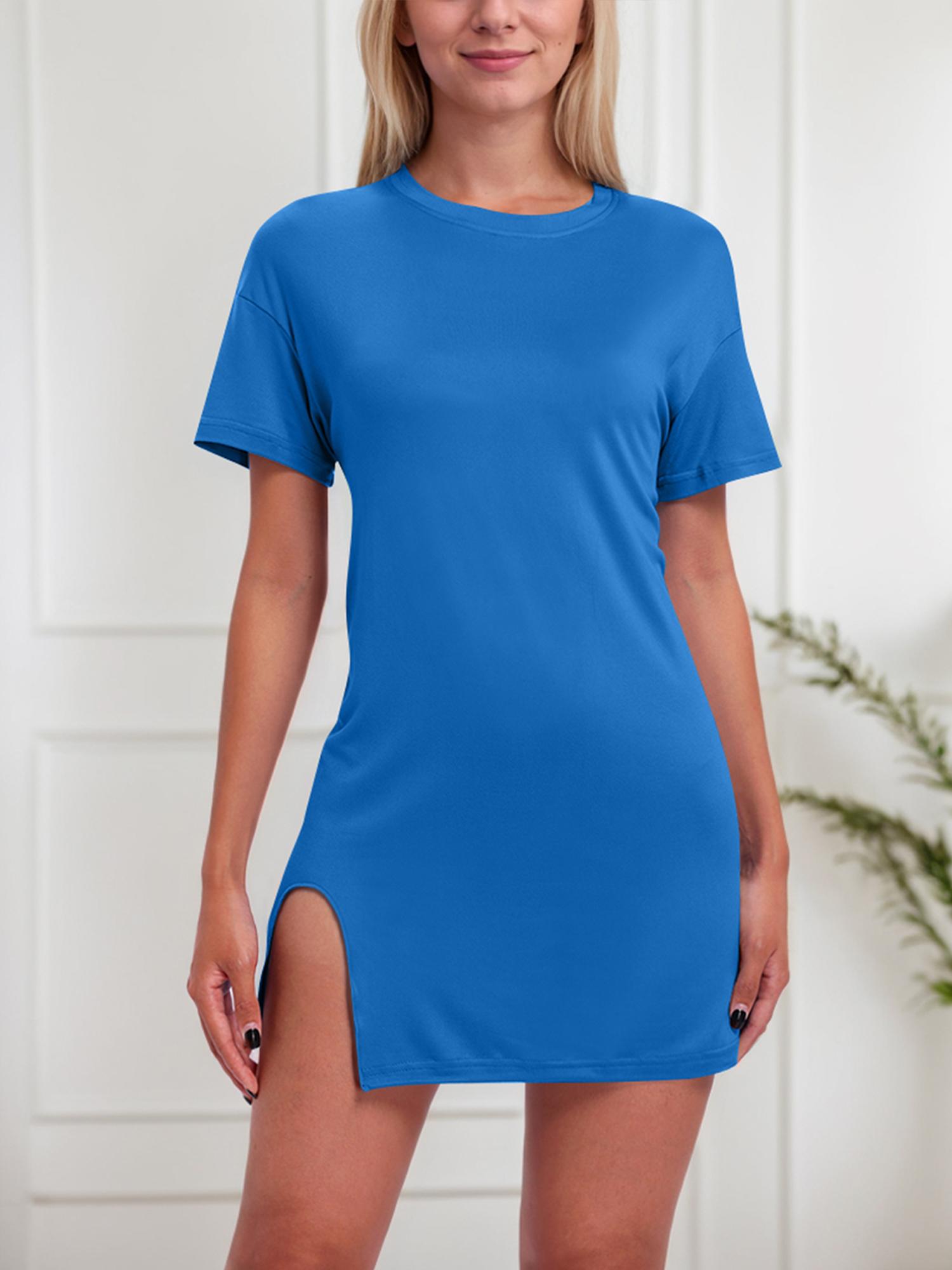 Women's Solid Color Short Sleeve Casual Dress With Slit Hem