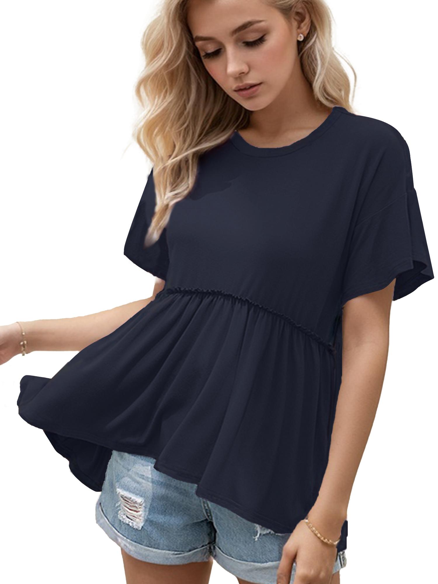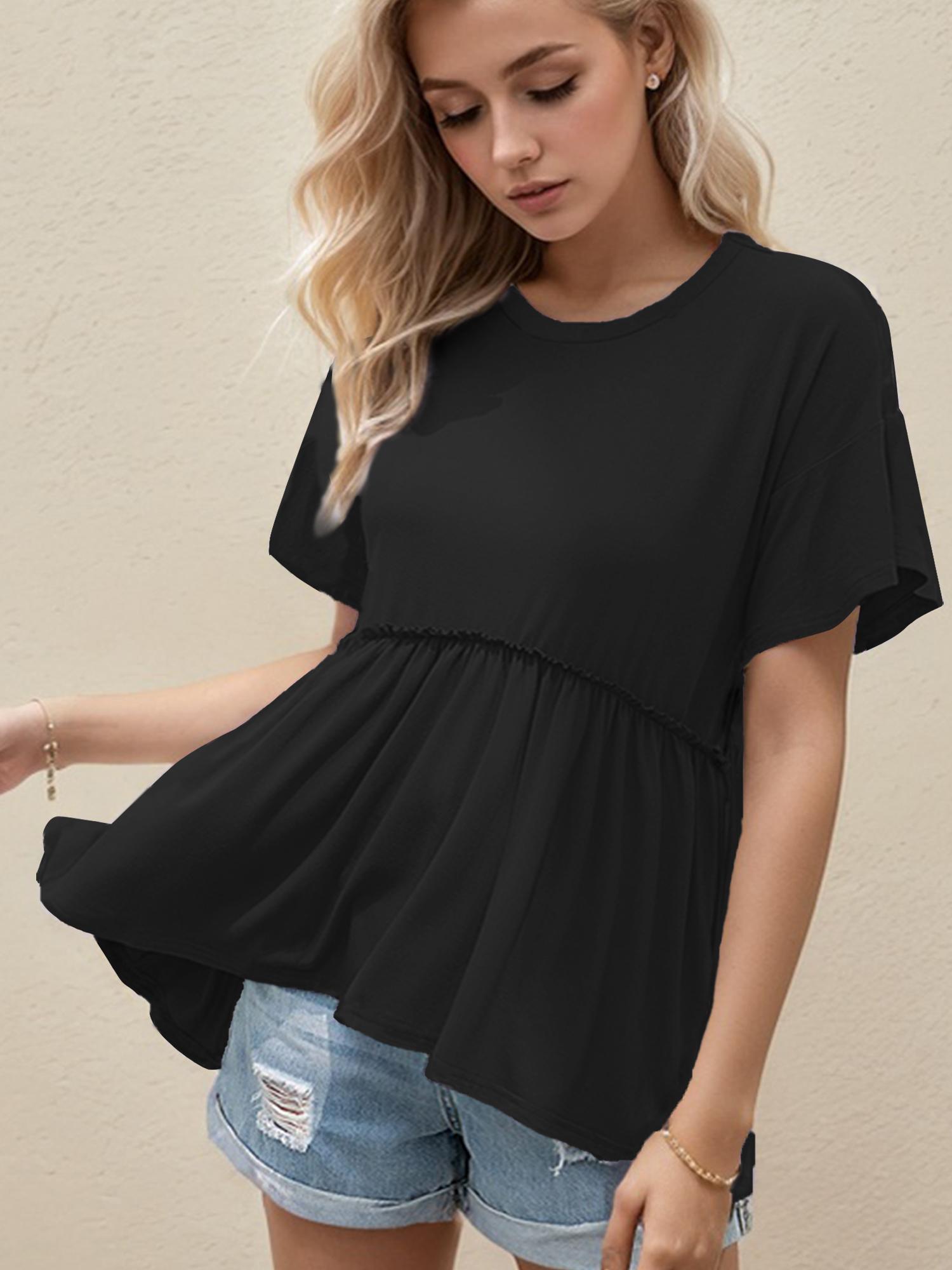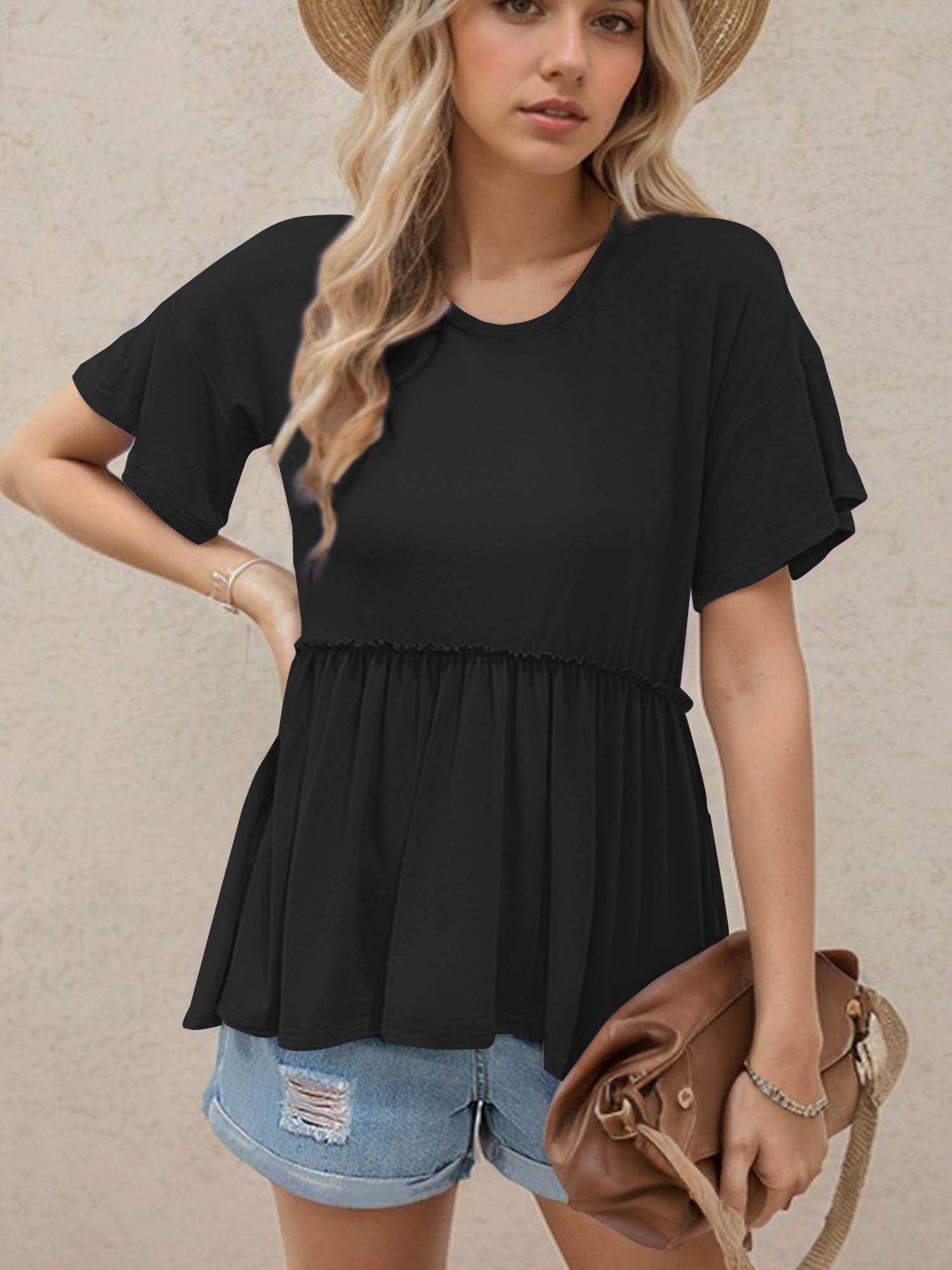 Women's Loose Ruffle Hem Short Sleeve Blouse Top