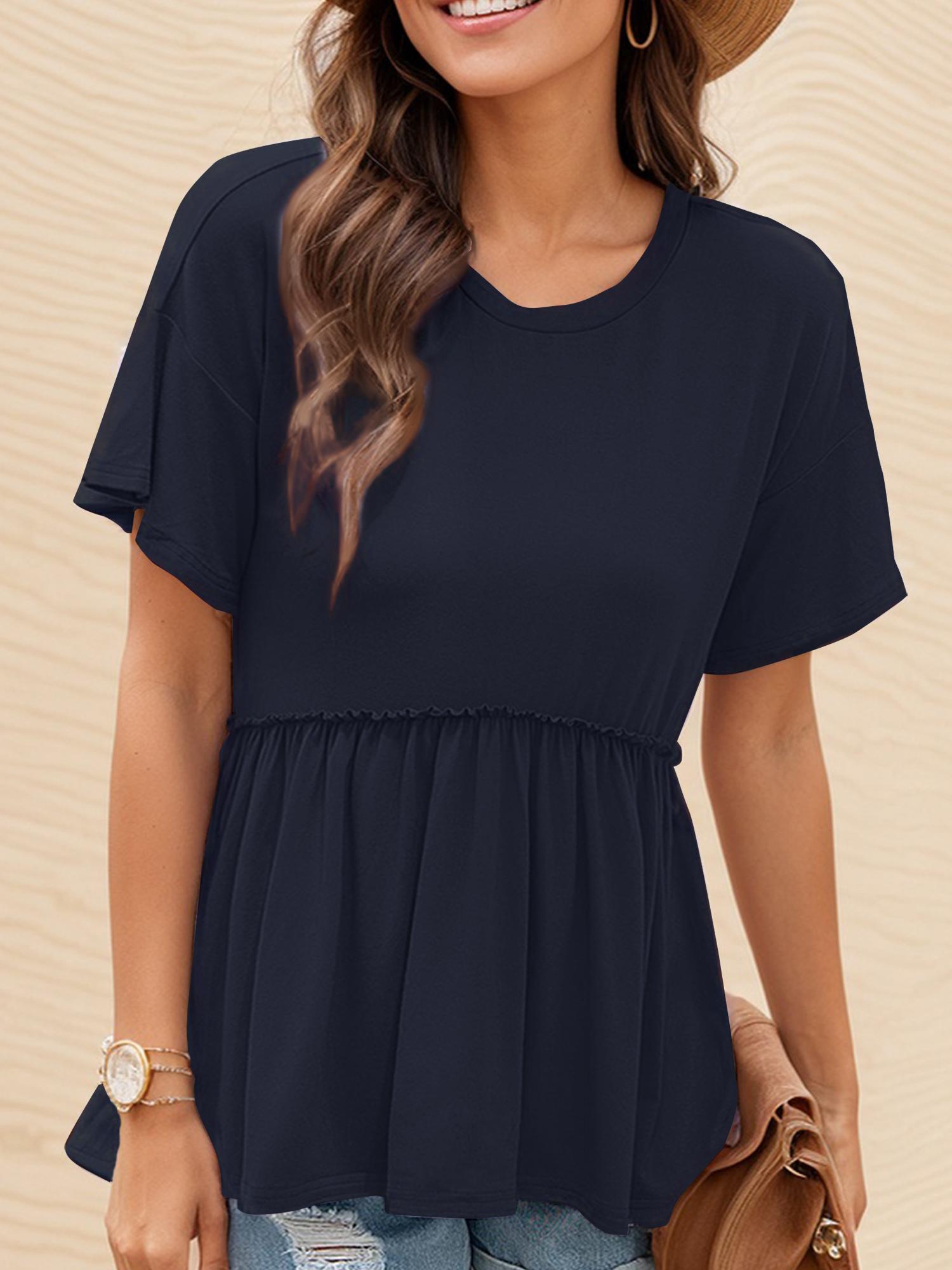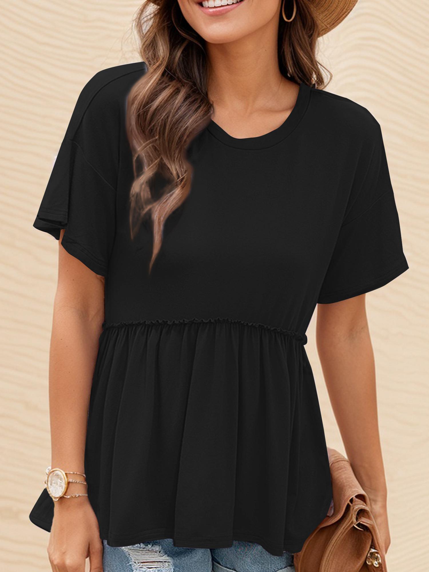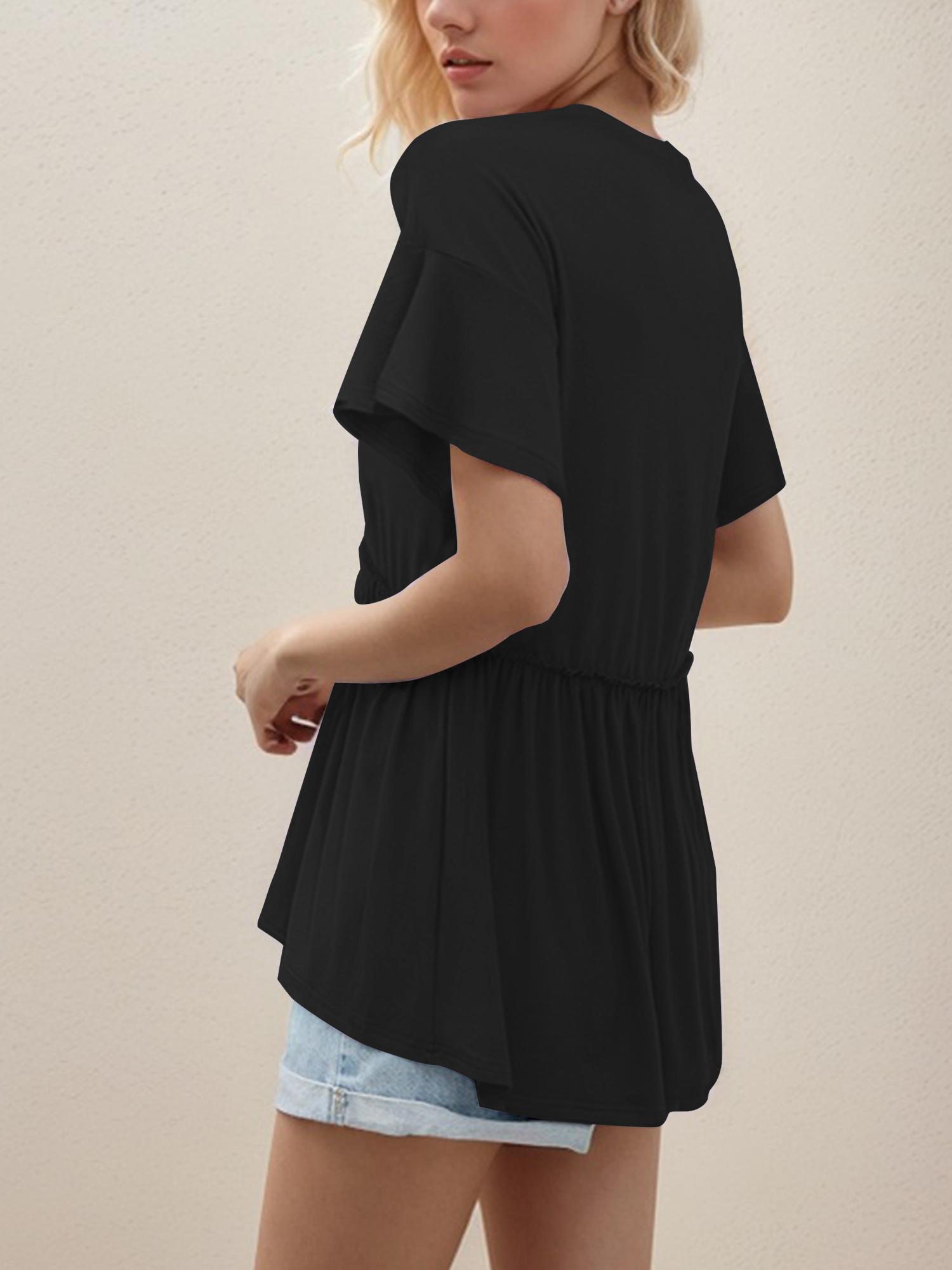 Women's Loose Ruffle Hem Short Sleeve Blouse Top