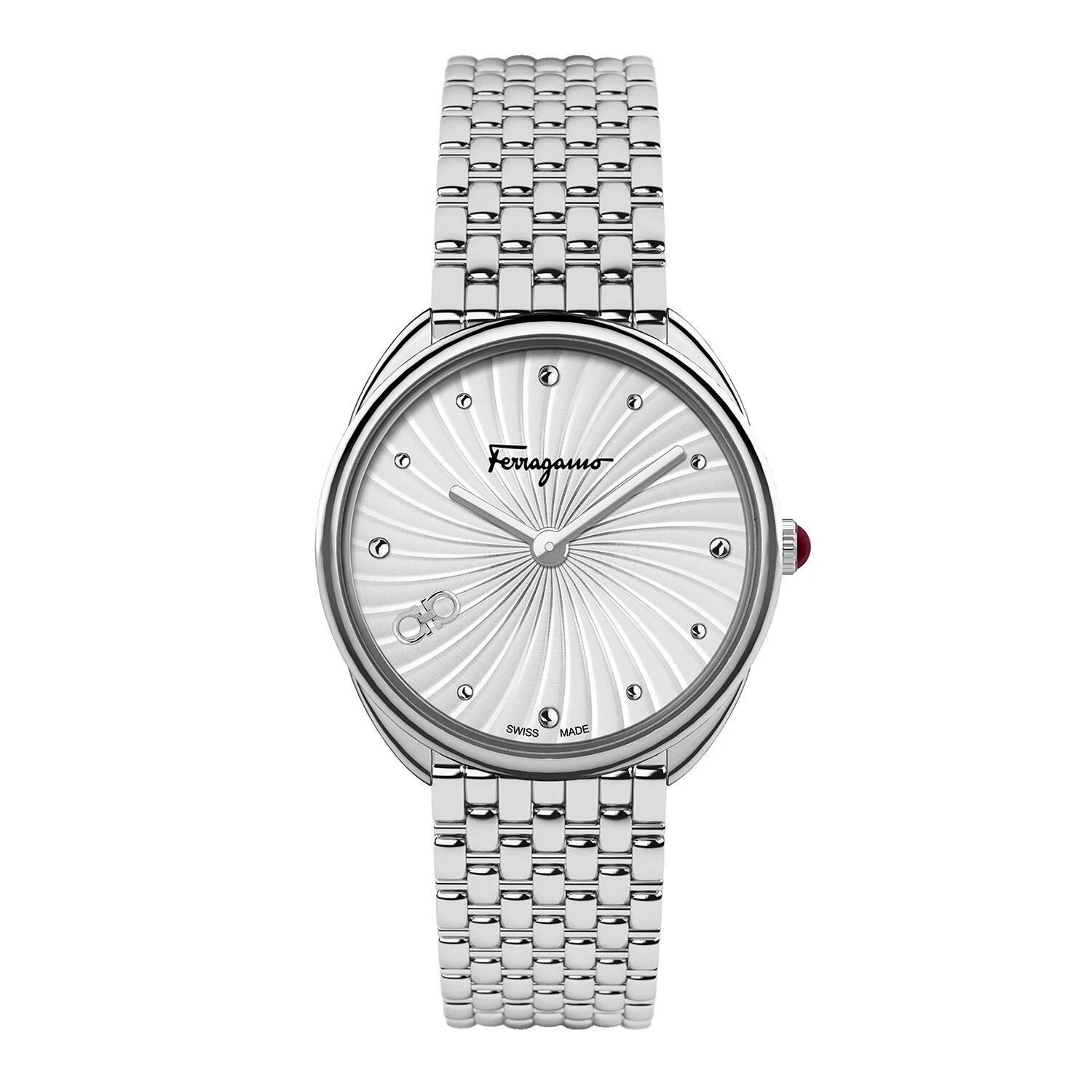 Elegant in its simplicity, the Salvatore Ferragamo Cuir Women's Stainless Steel Watch (SFYN00720) is a timeless accessory that embodies the brand’s signature sophistication and clean design. Crafted from silver-tone stainless steel, both the case and bracelet present a sleek, polished finish that effortlessly transitions from everyday wear to refined occasions. The fixed bezel maintains a minimalist aesthetic, allowing the understated elegance of the watch to shine through.