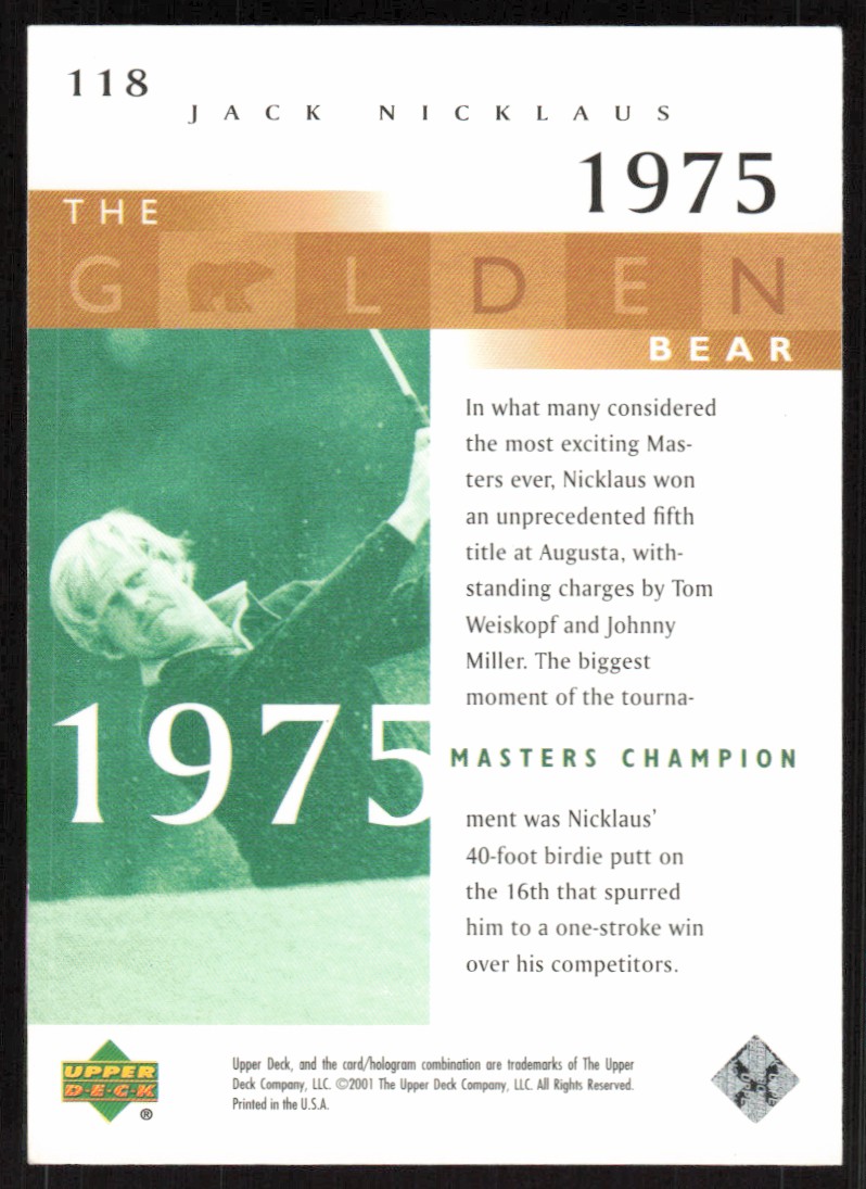 2001 UPPER DECK Jack Nicklaus The Golden Bear