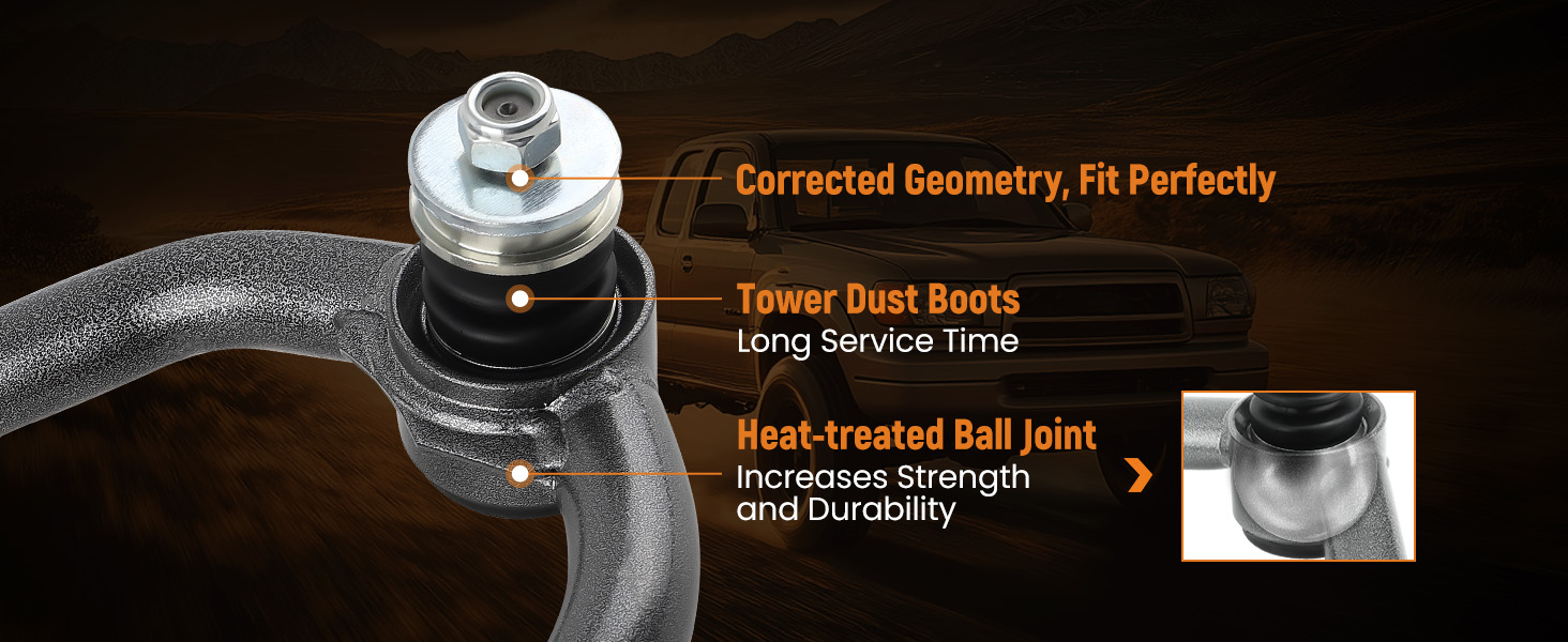 - The control arms with Pre-Assembled high-quality Ball Joint for quick and easy installation