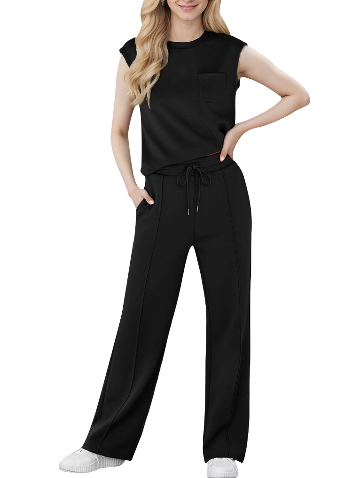 Women's 2 Piece Outfits Casual Sleeveless Sweatsuits Wide Leg Lounge Sets