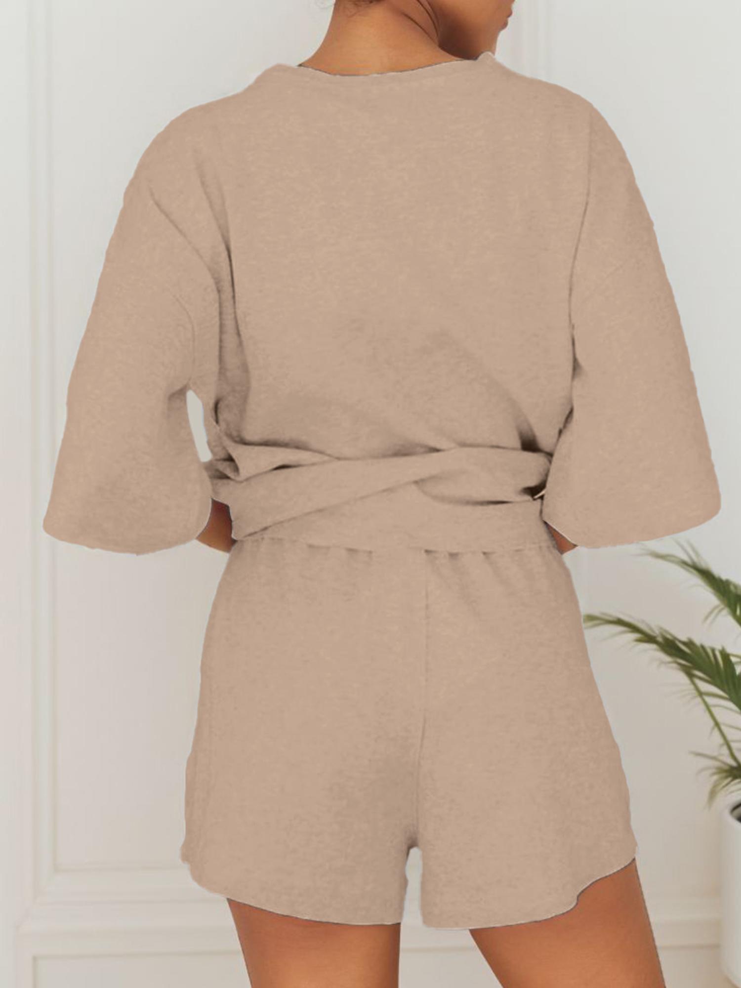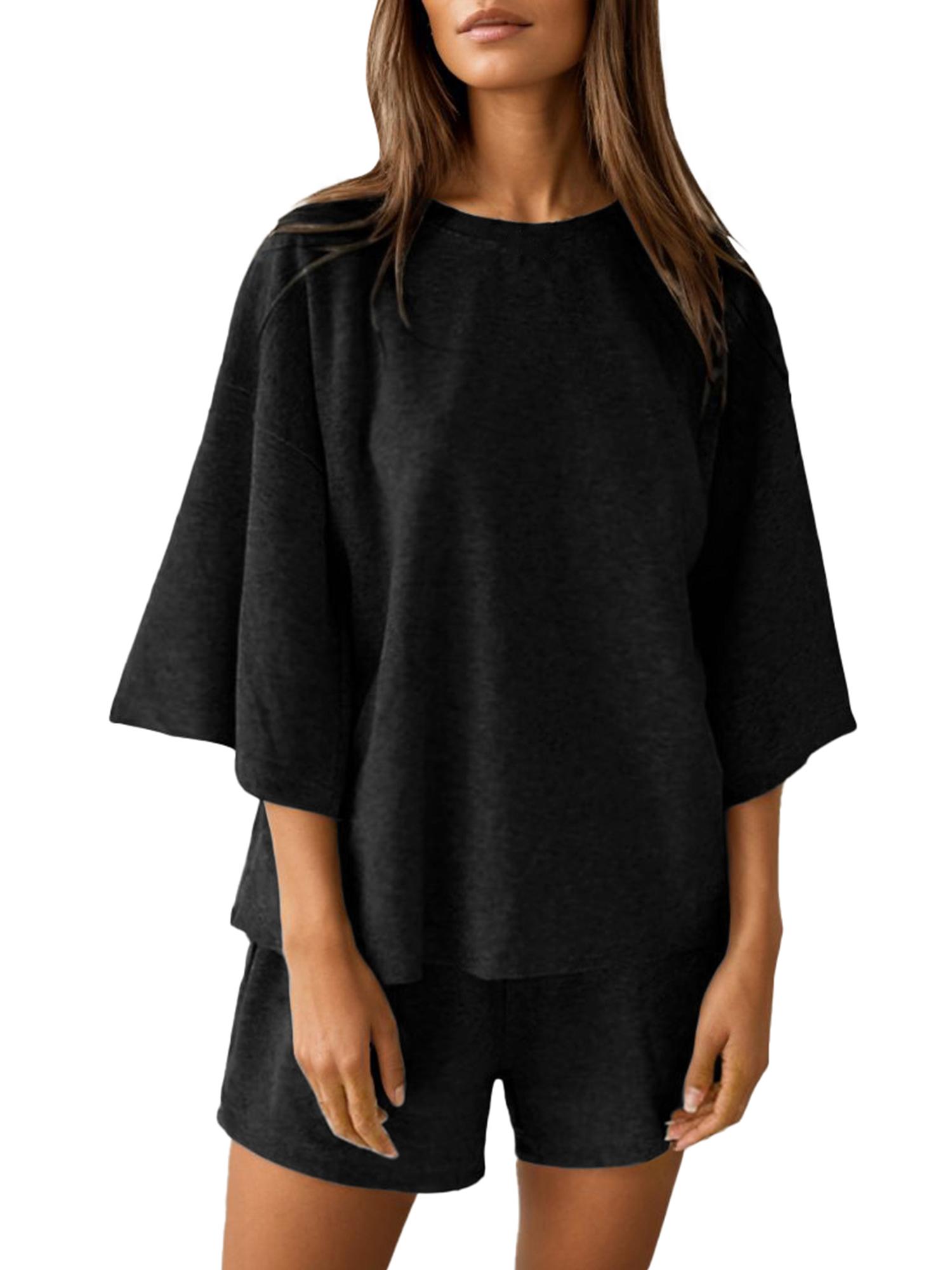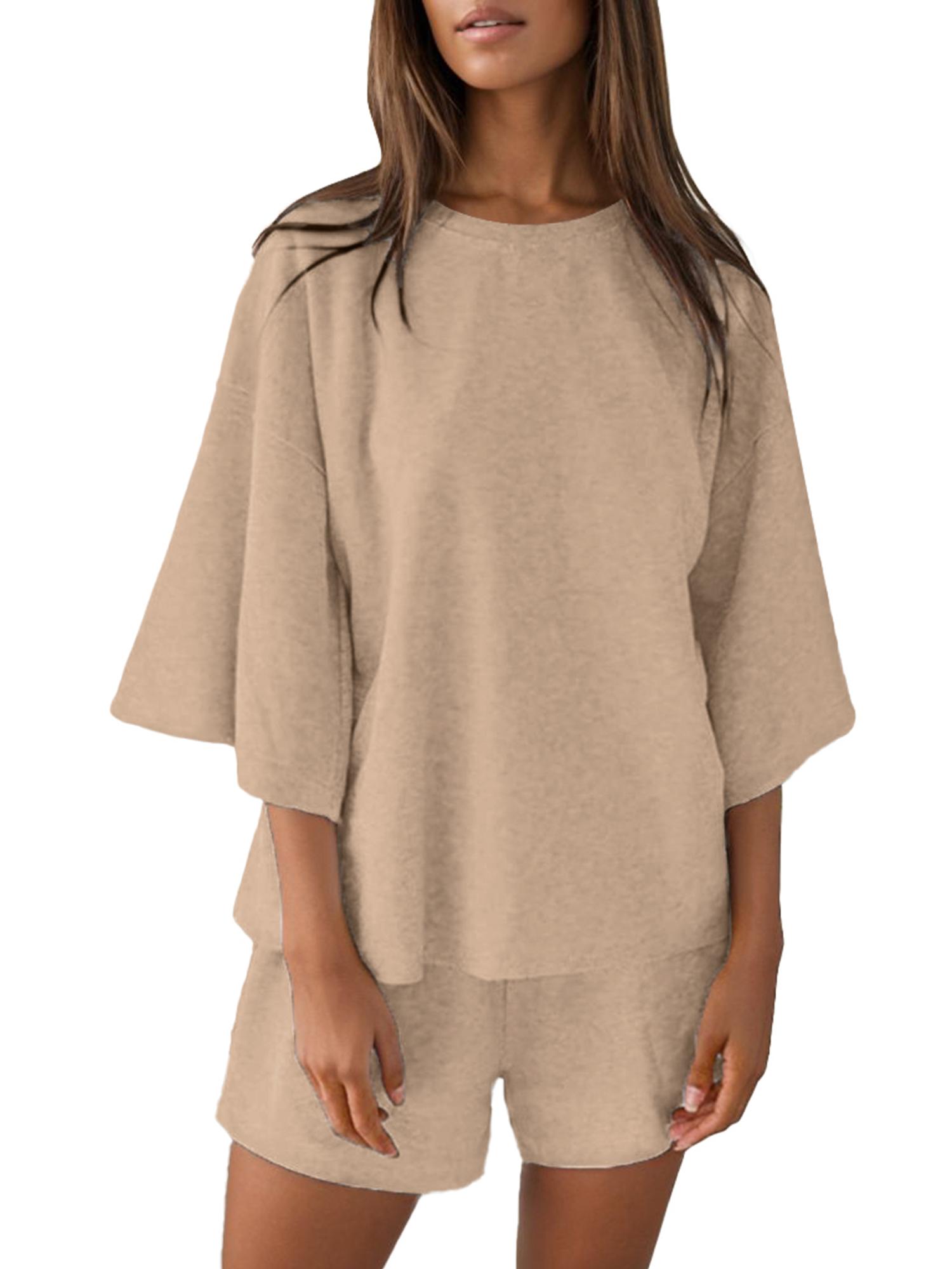 Womens 2 Piece Outfits 3/4 Sleeve Tops and Elastic Waist Shorts Lounge Sets