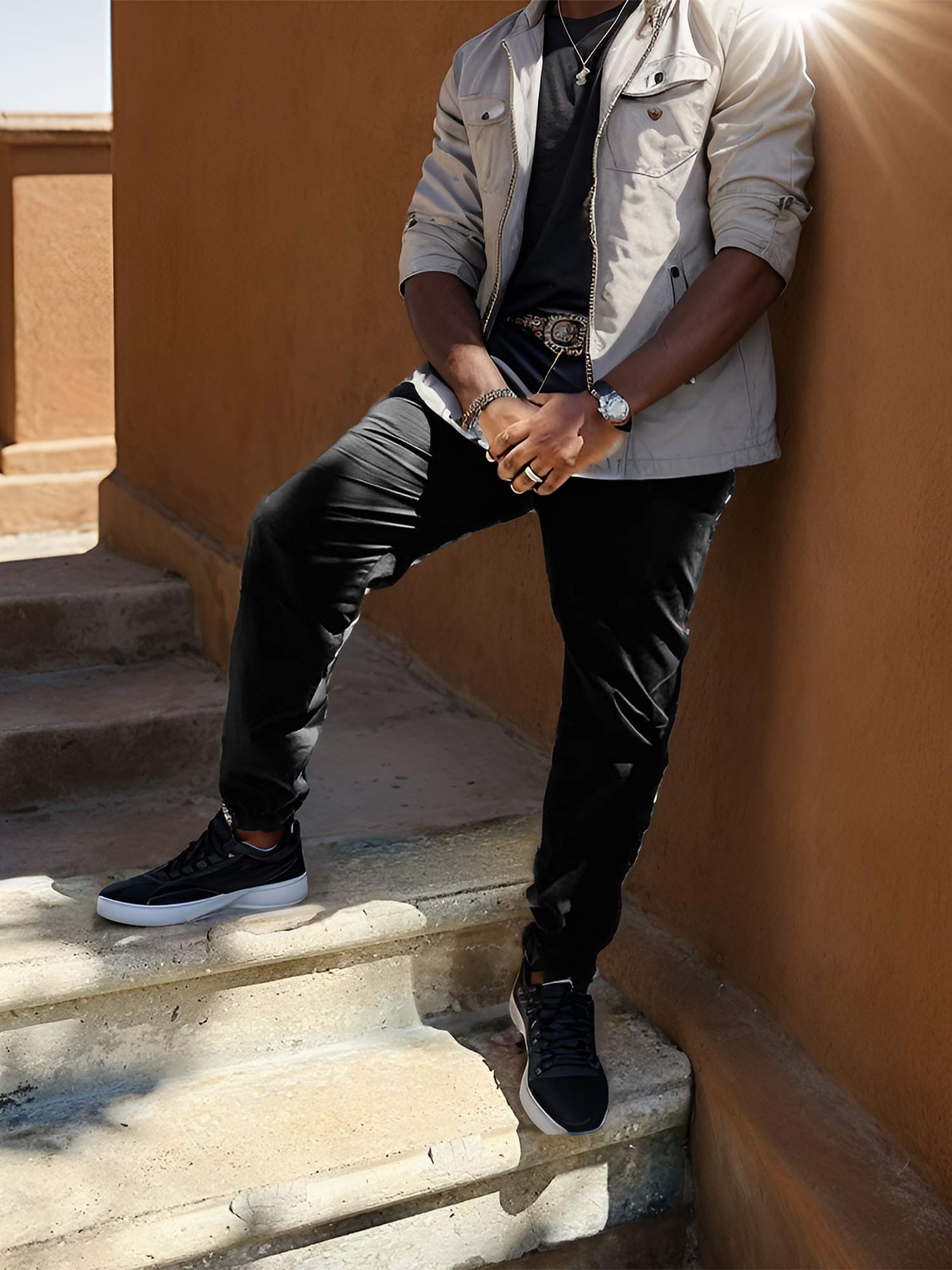 Sports casual pants design, with 2 pockets on the front and 2 pockets on the back.