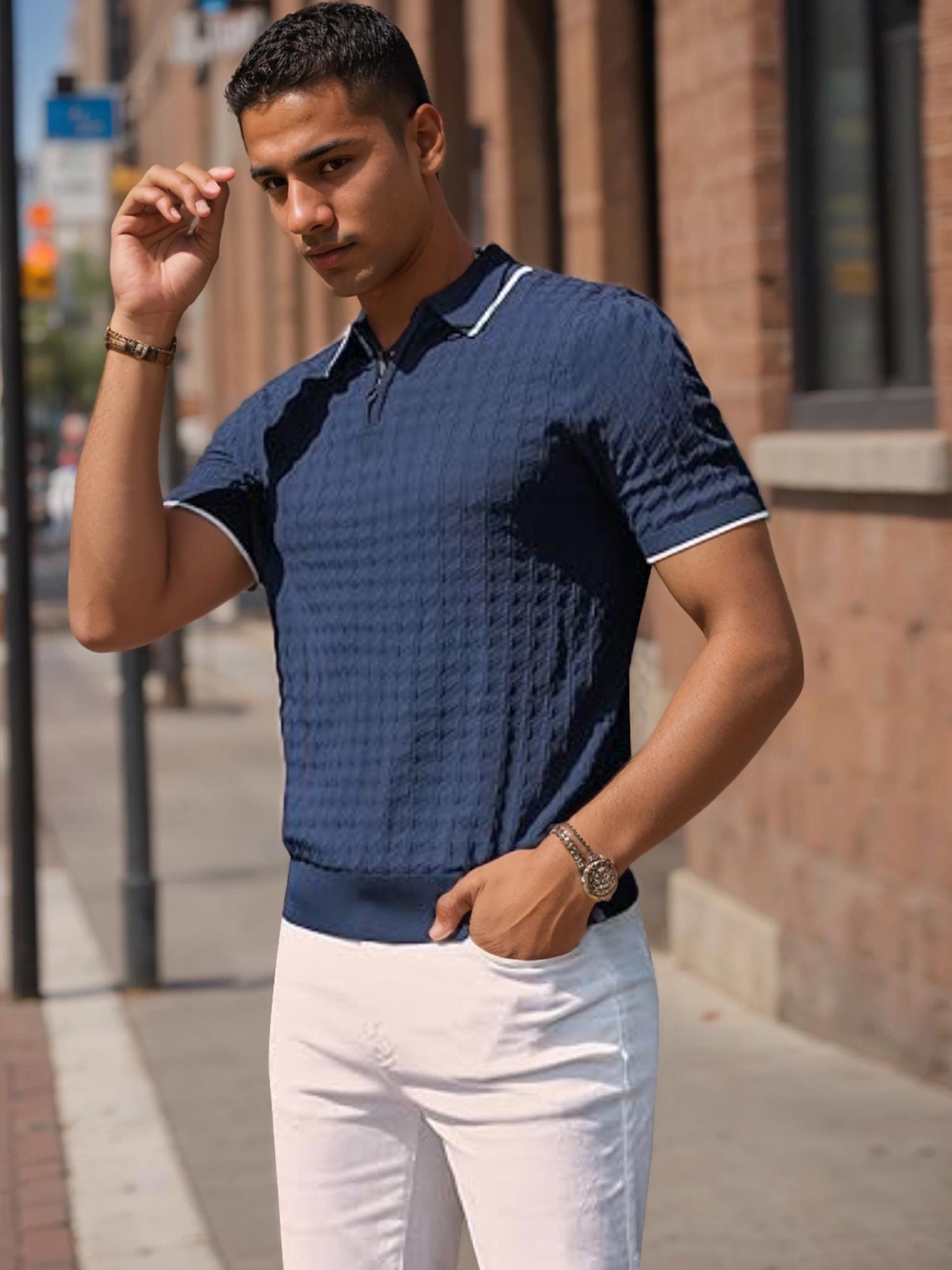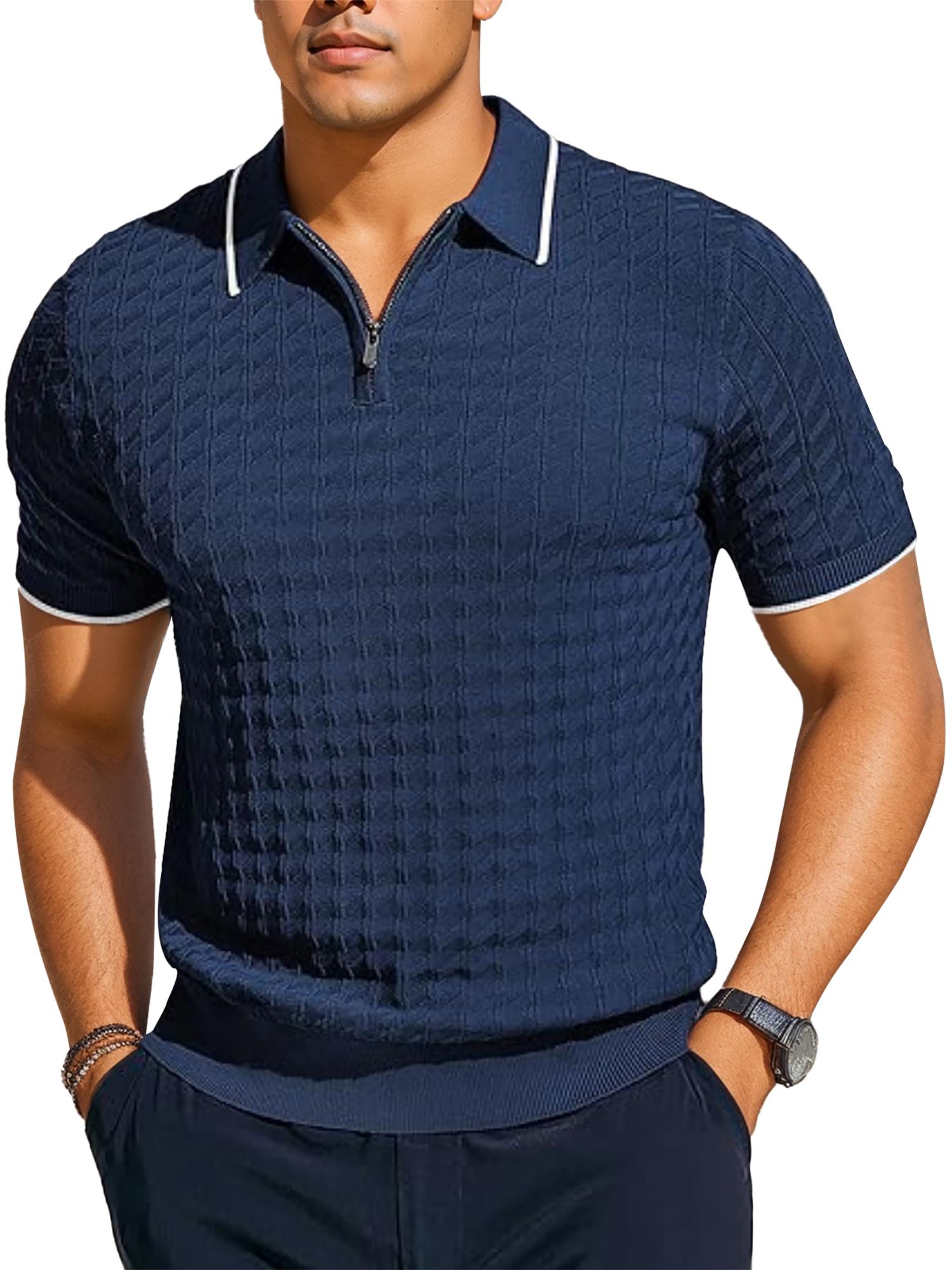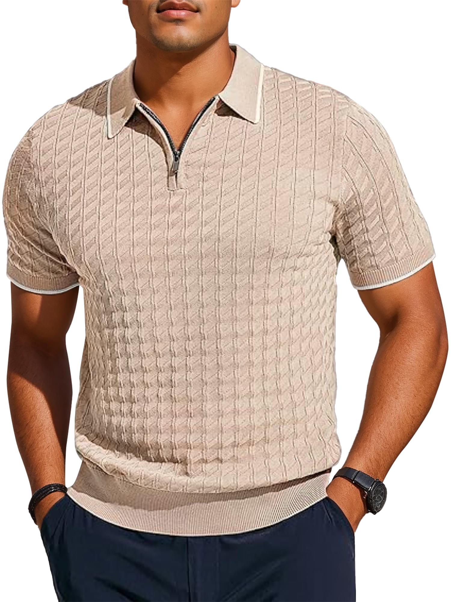 Men's Knit Shirts Short Sleeve Quarter Zip T-Shirt