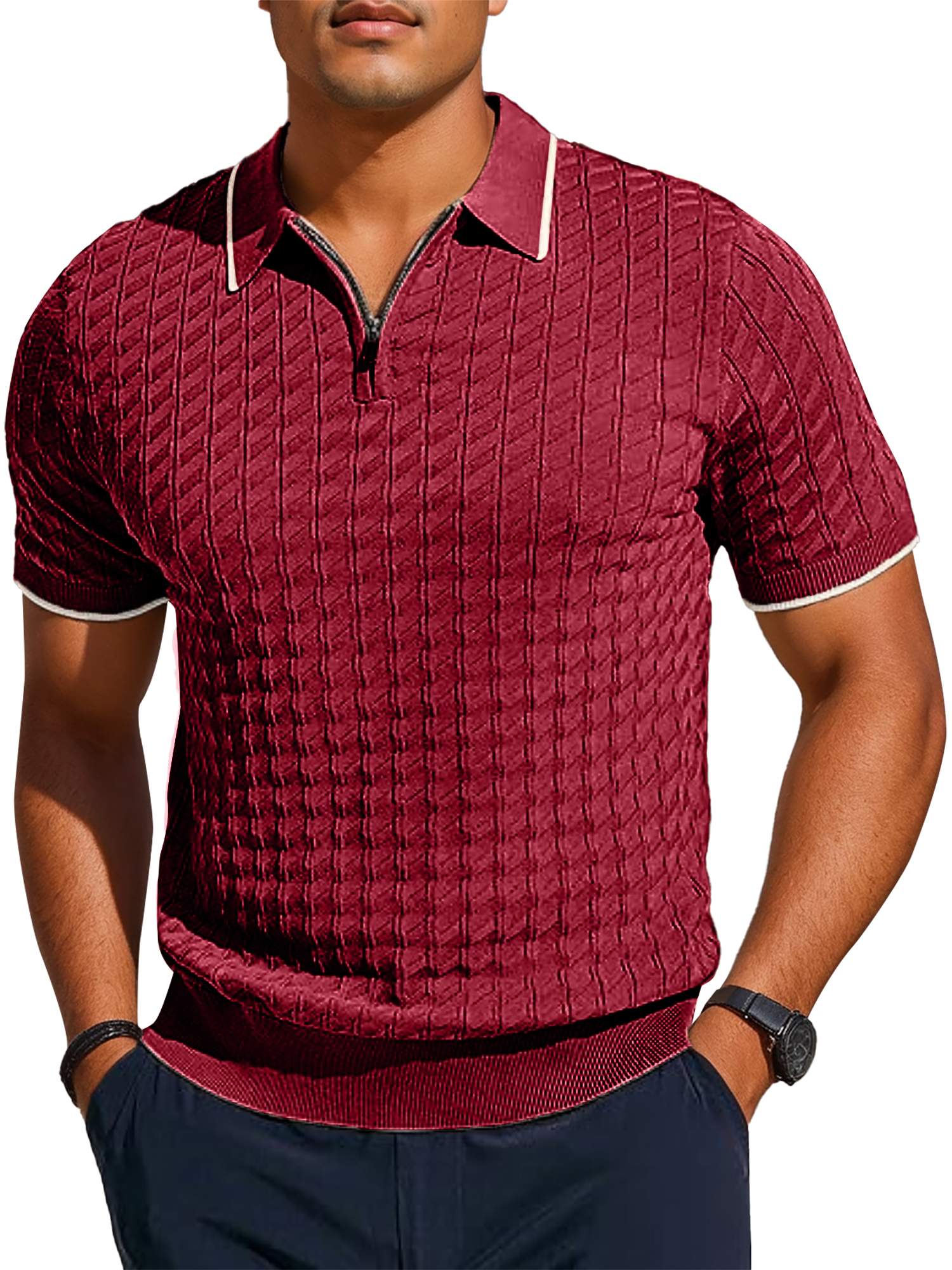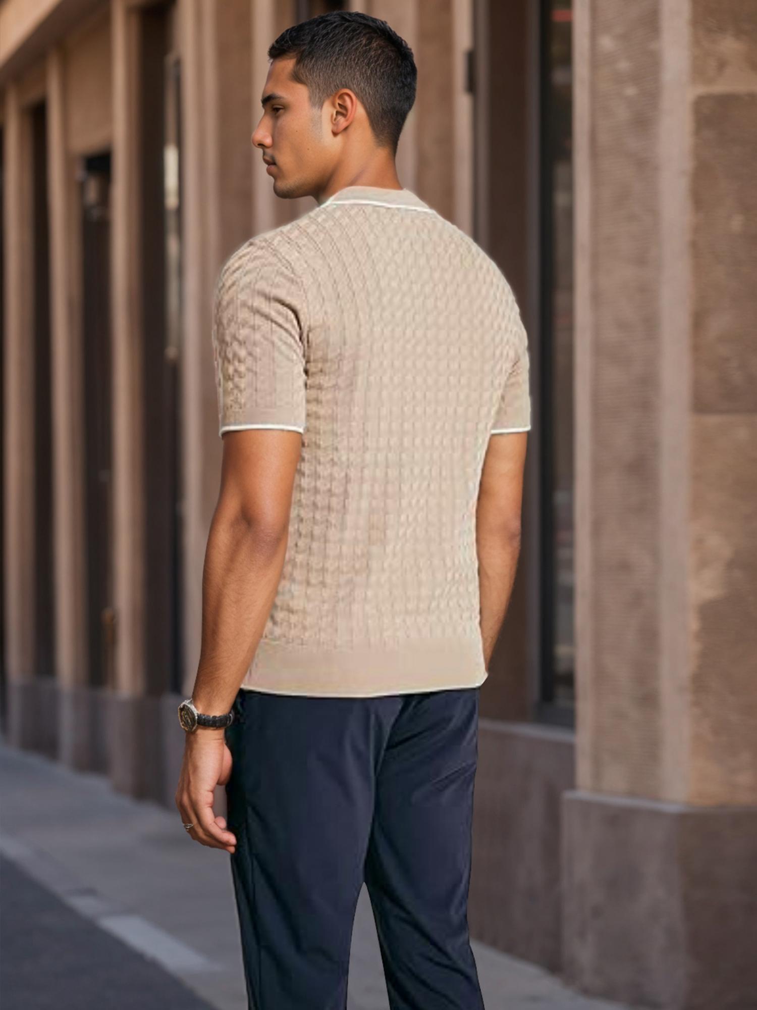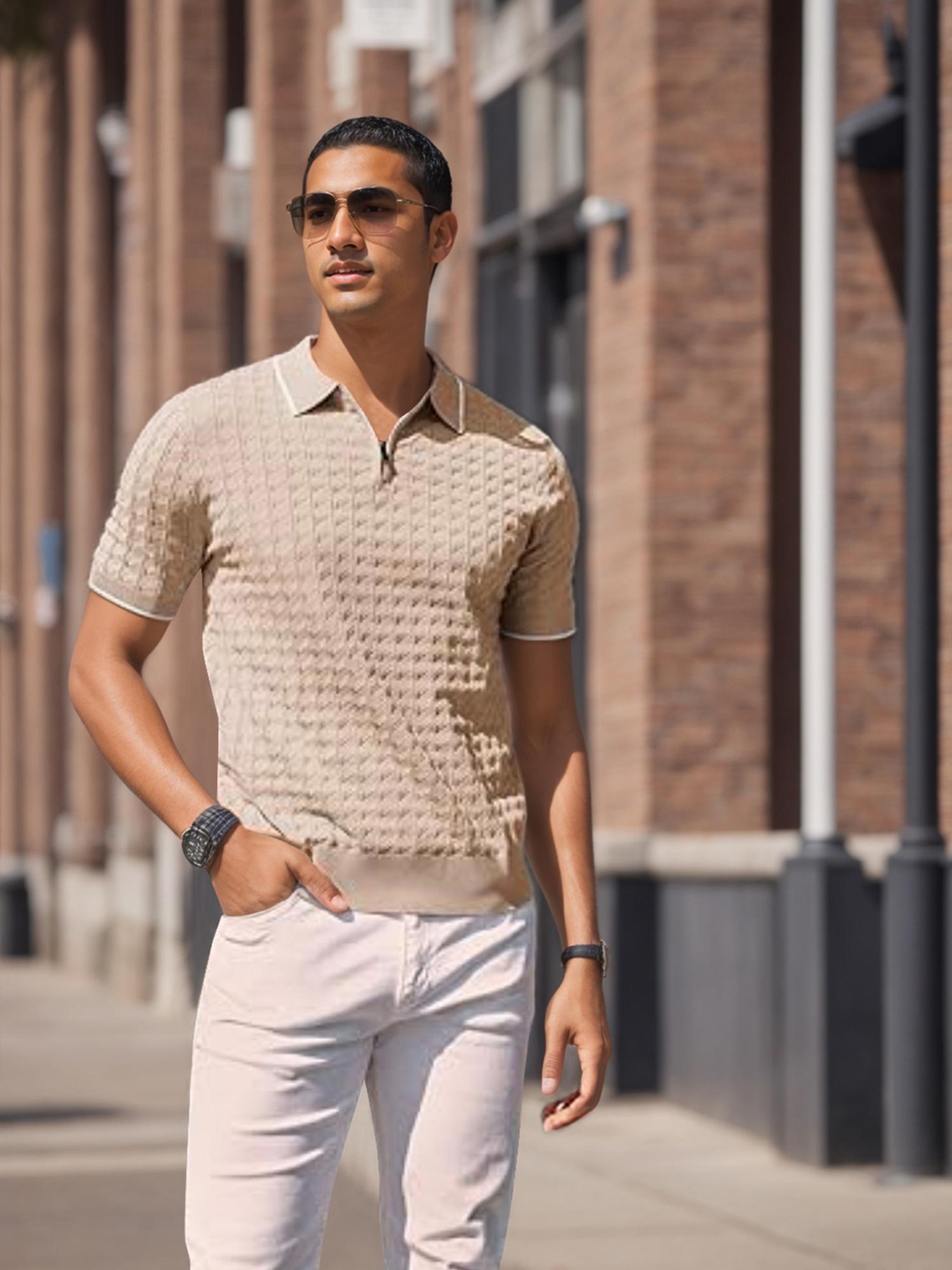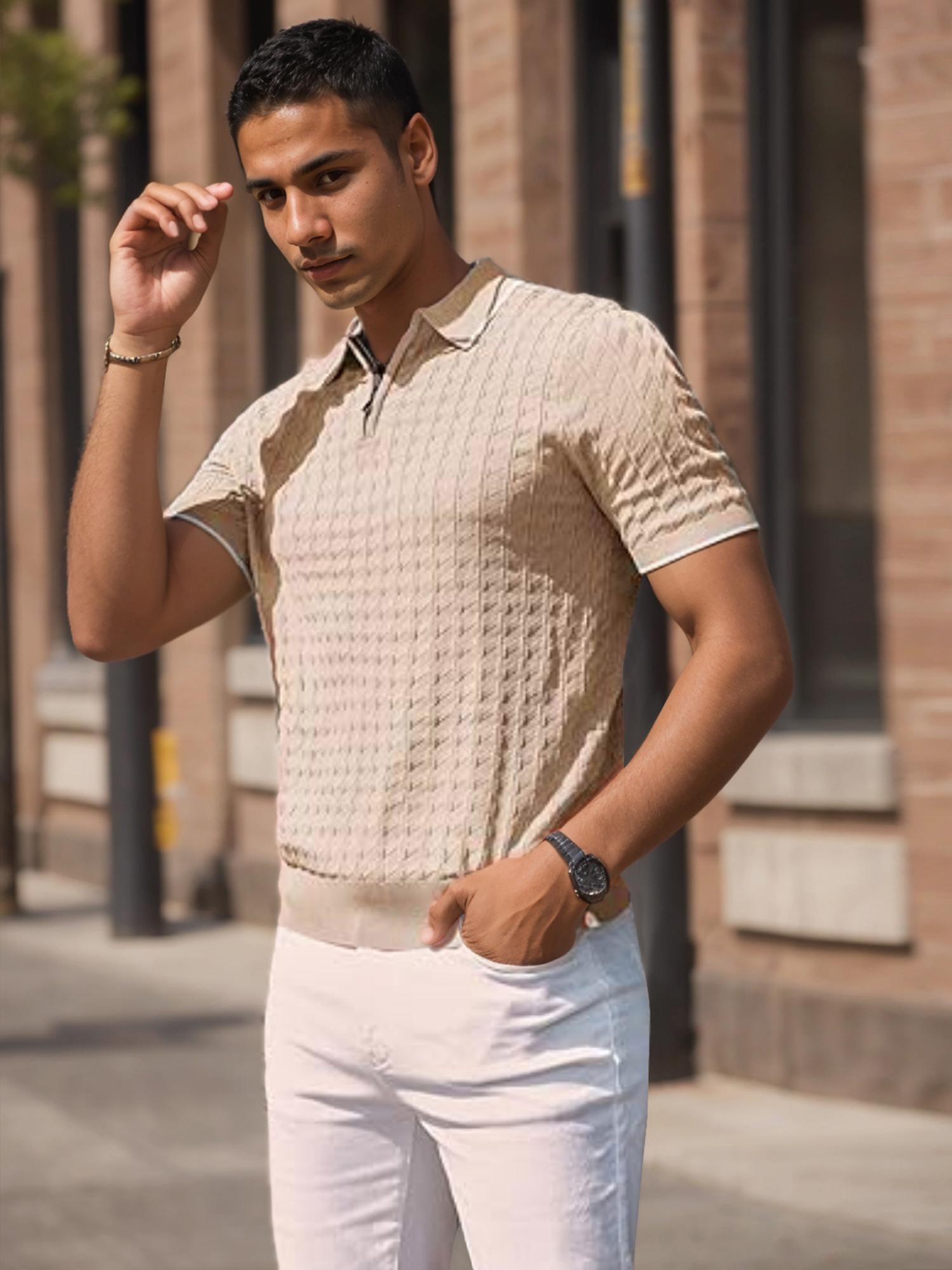 Men's Knit Shirts Short Sleeve Quarter Zip T-Shirt