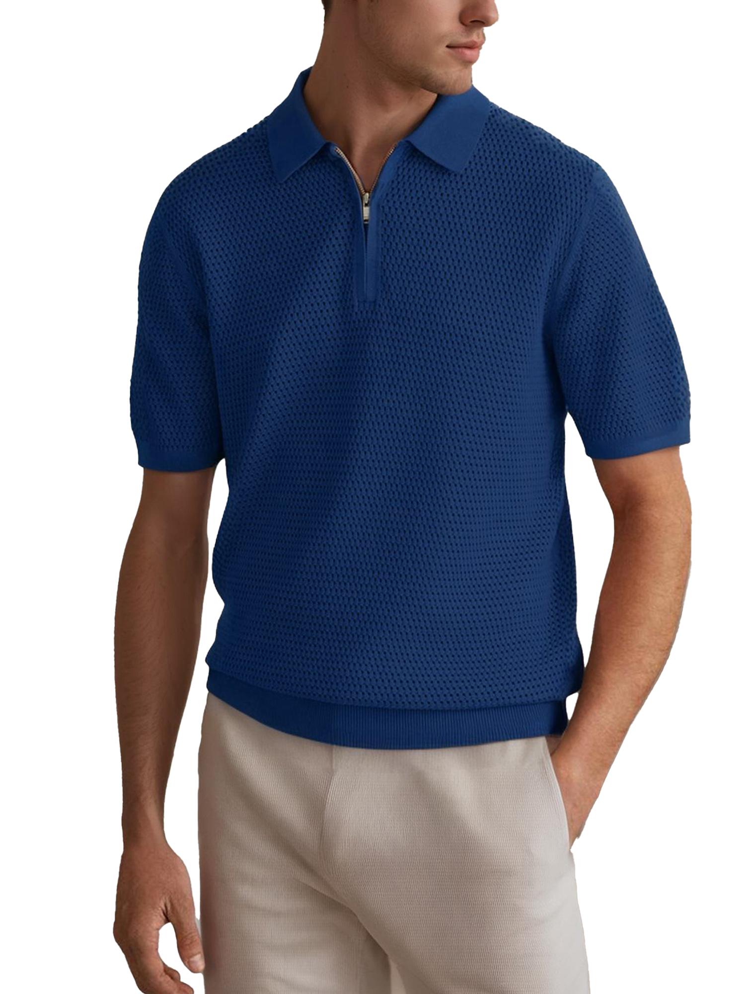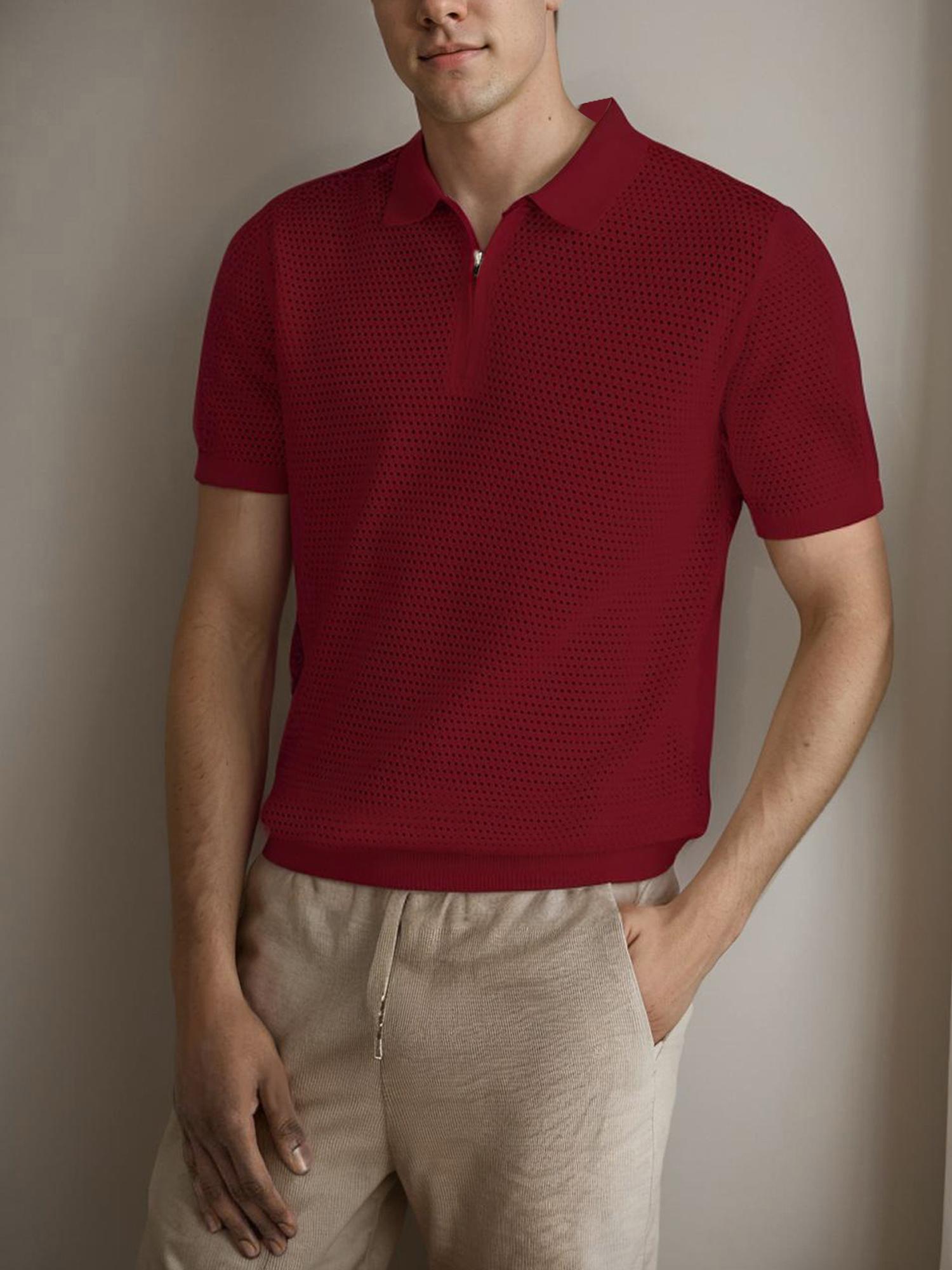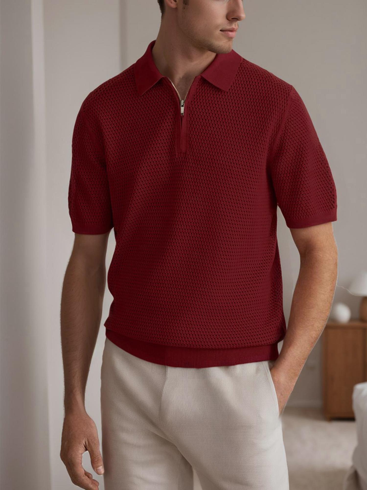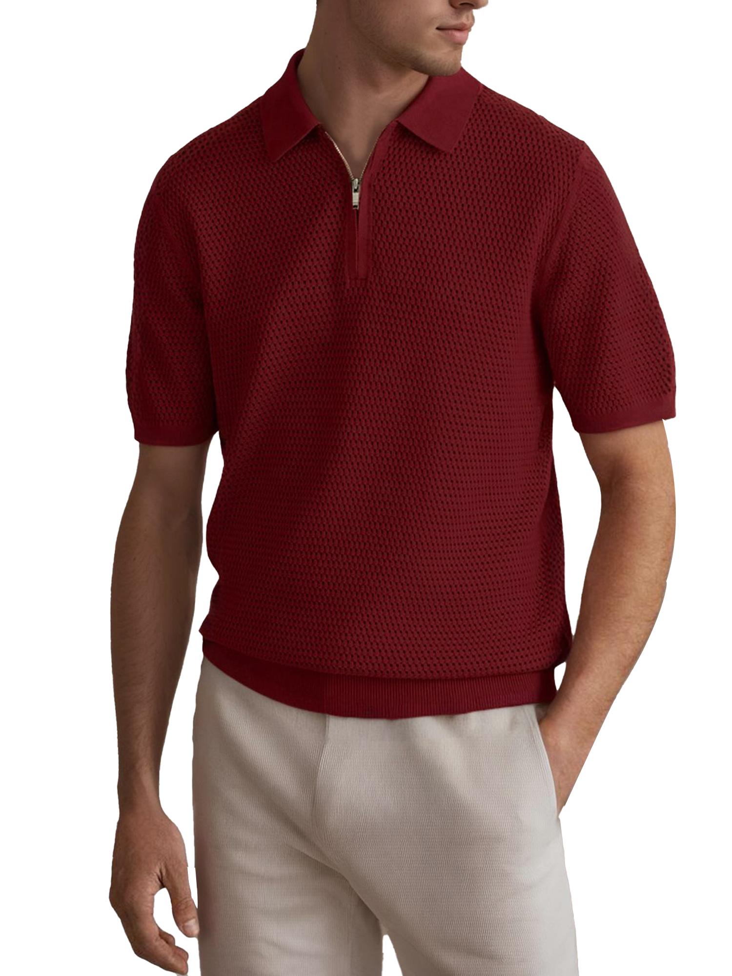 Mens Textured Half Zip Short Sleeve Po lo Shirt