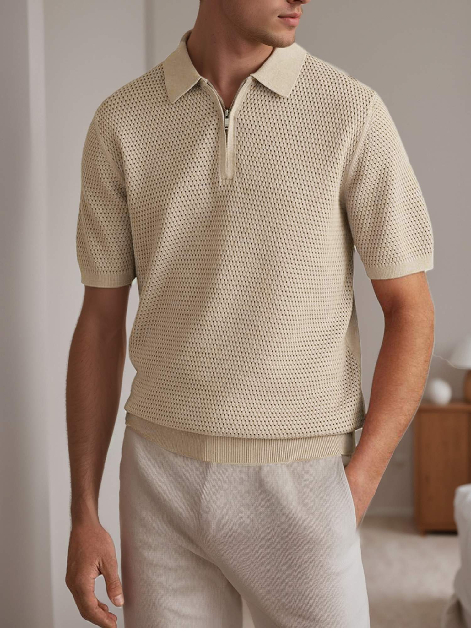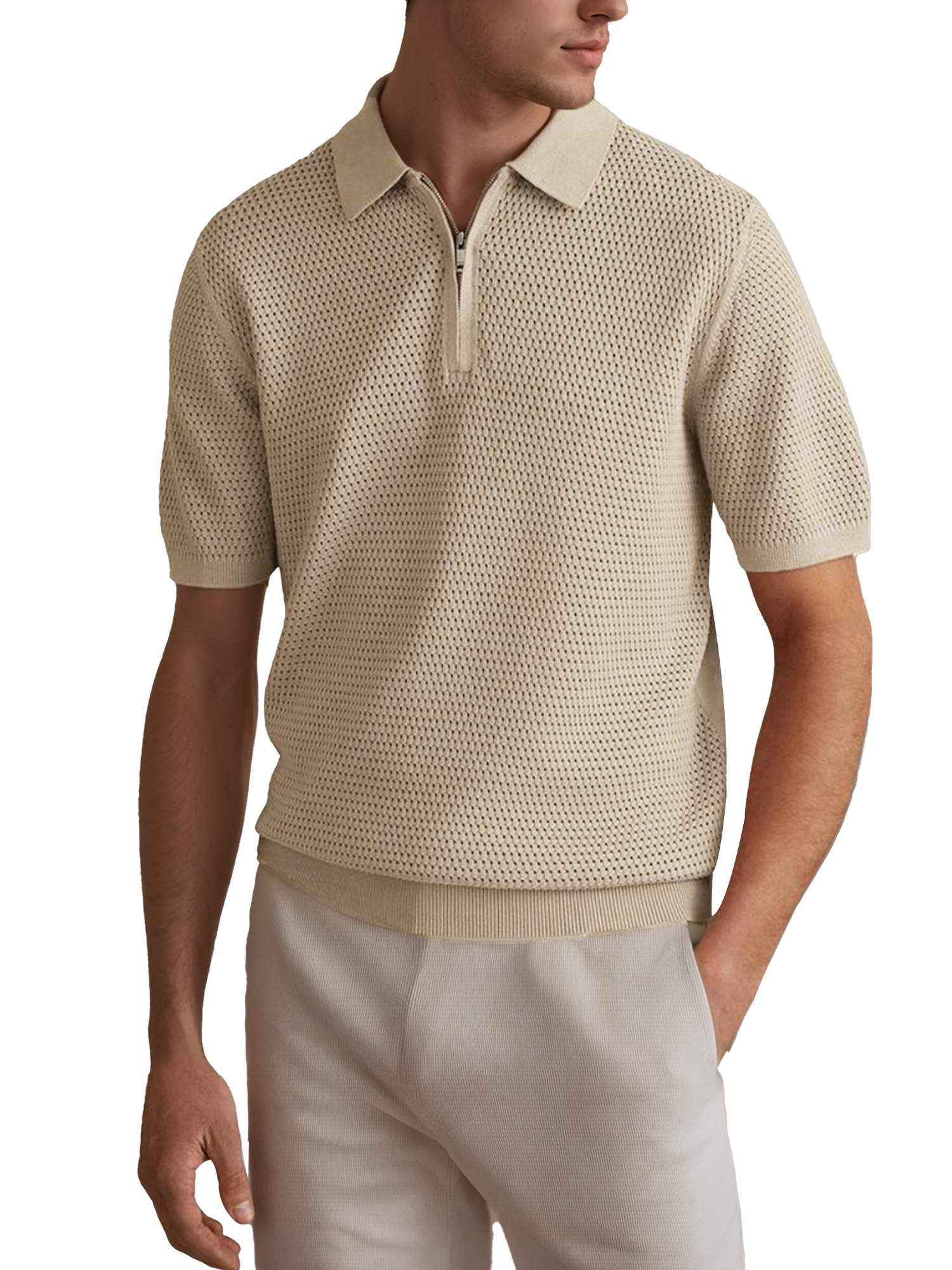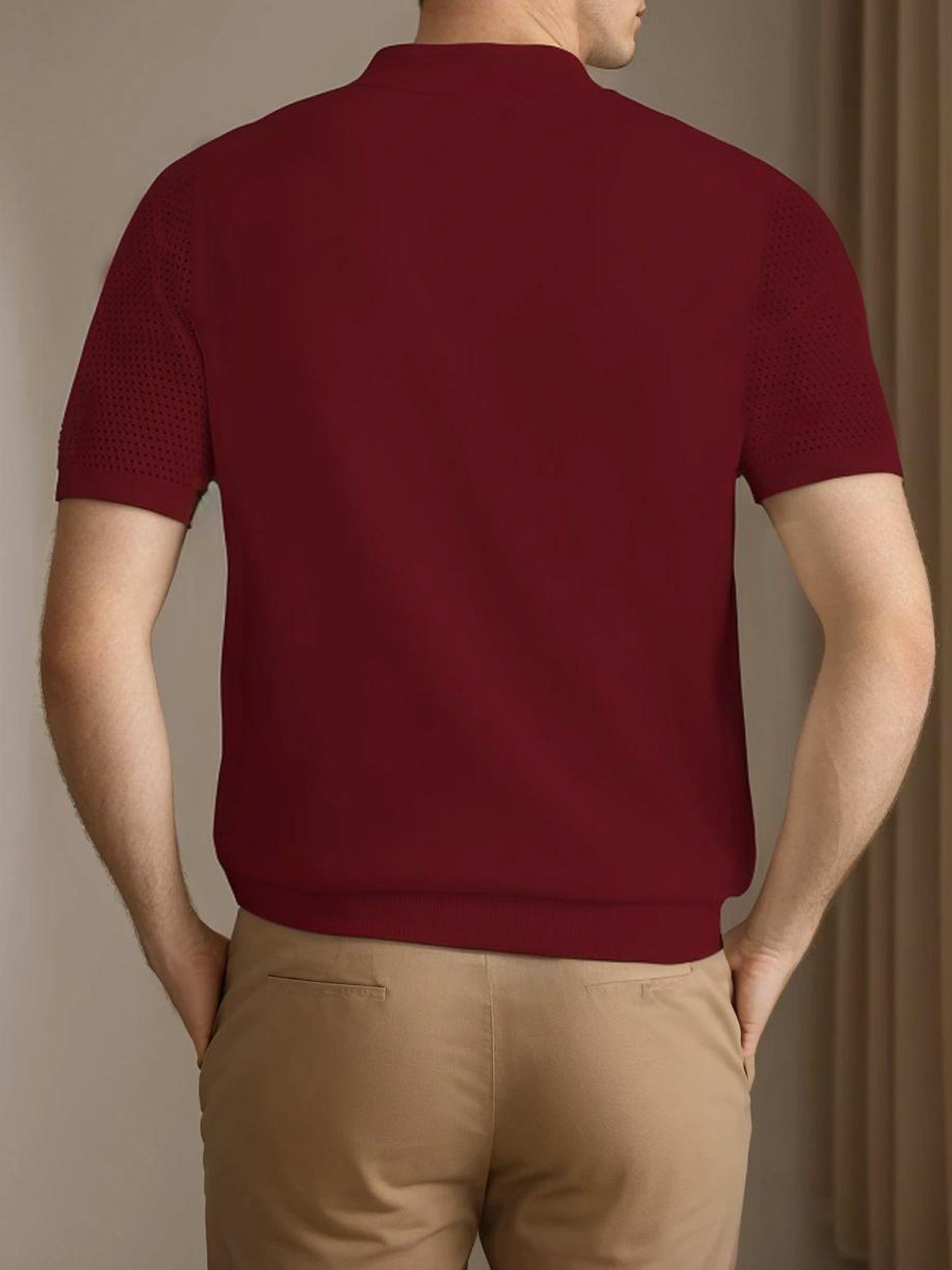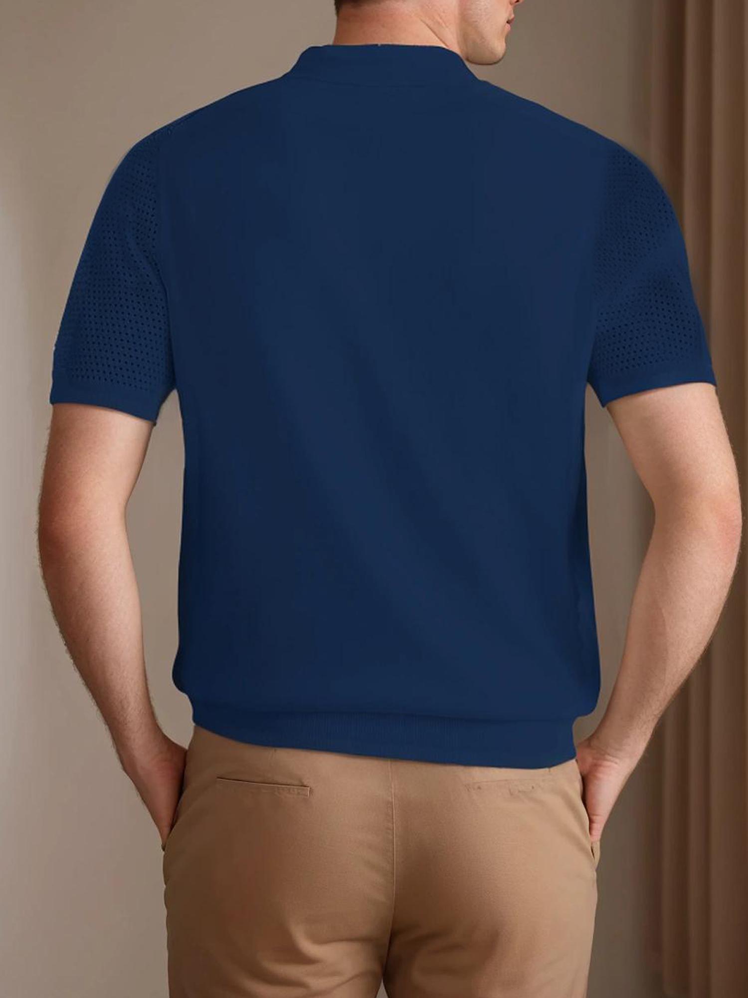 Mens Textured Half Zip Short Sleeve Po lo Shirt