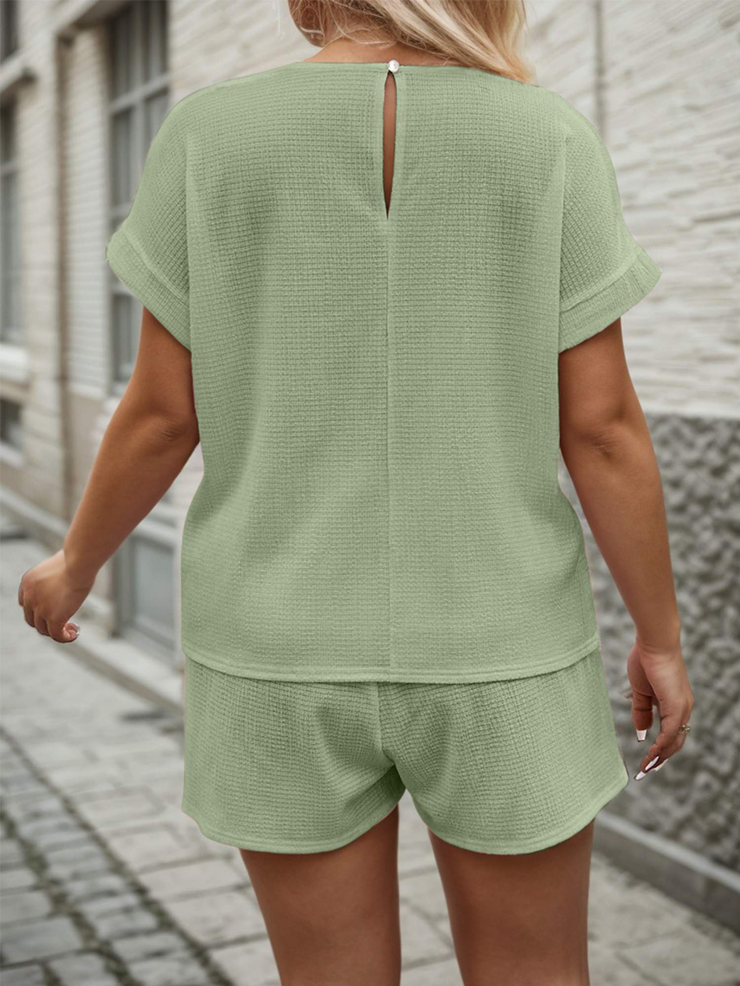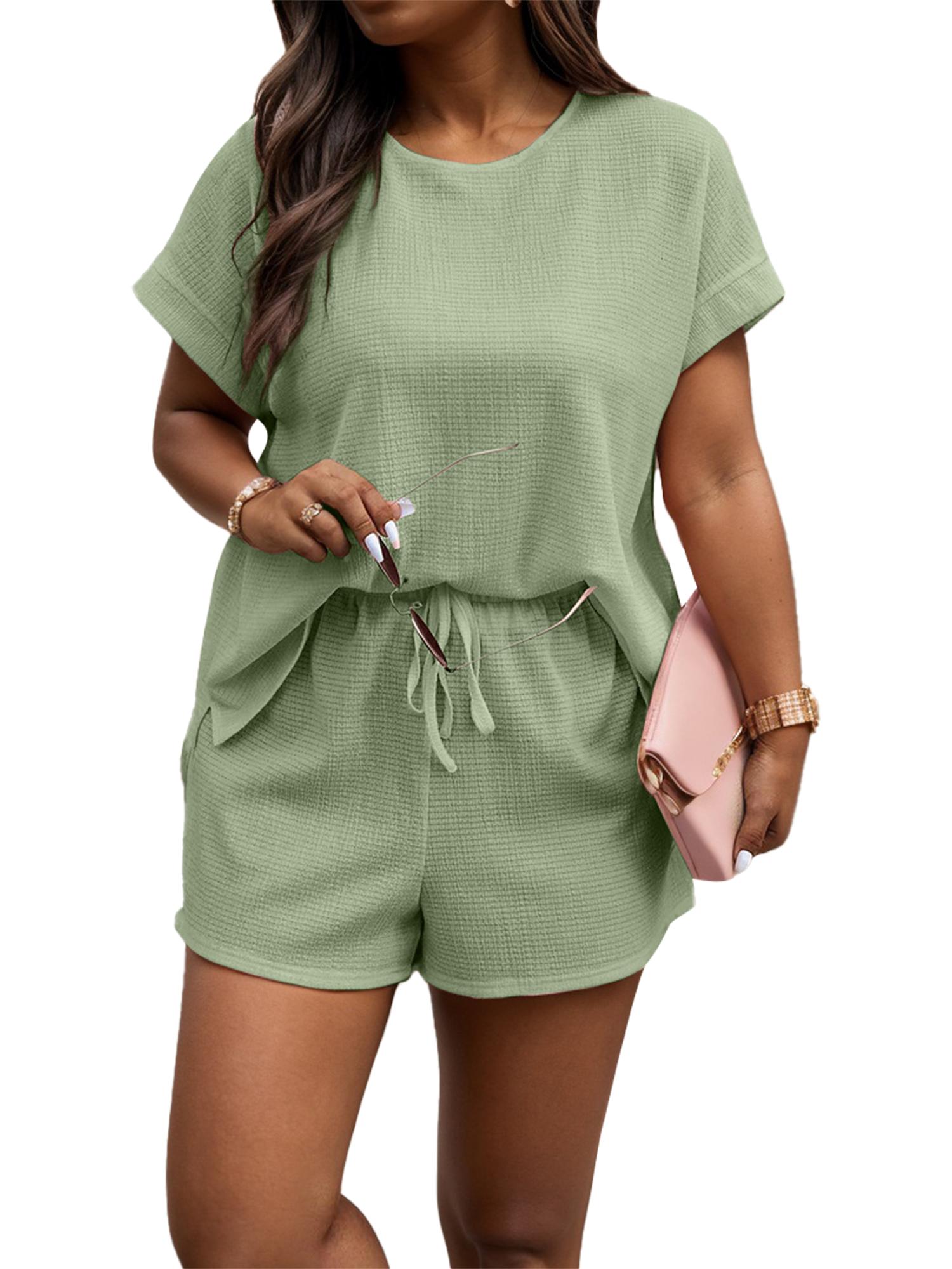 Womens Two Pieces Outfits Casual Lounge Sets Solid Batwing Sleeve Tee & Shorts