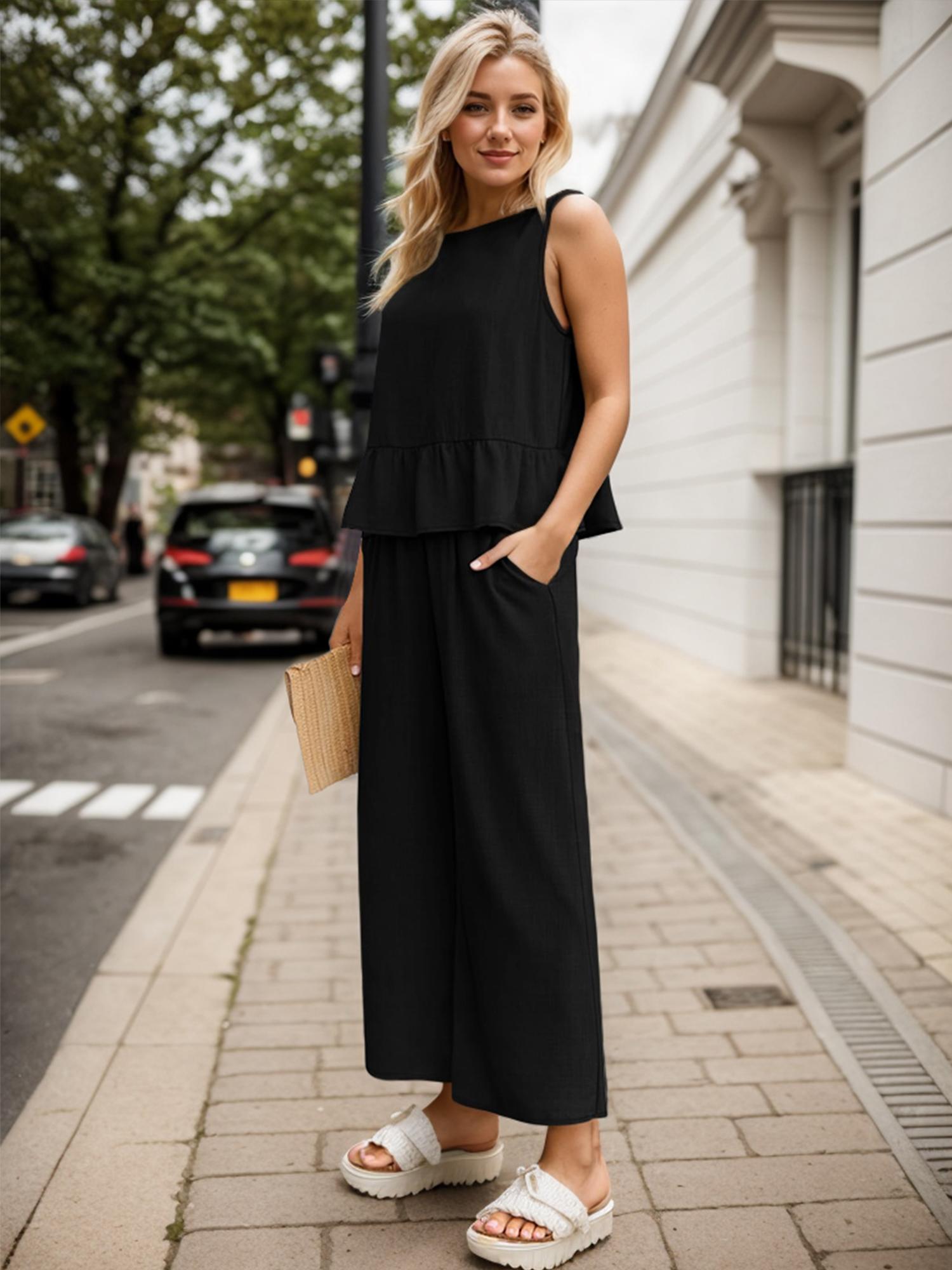 Womens 2 Piece Outfits Crop Top Tops and Long Pants Sets