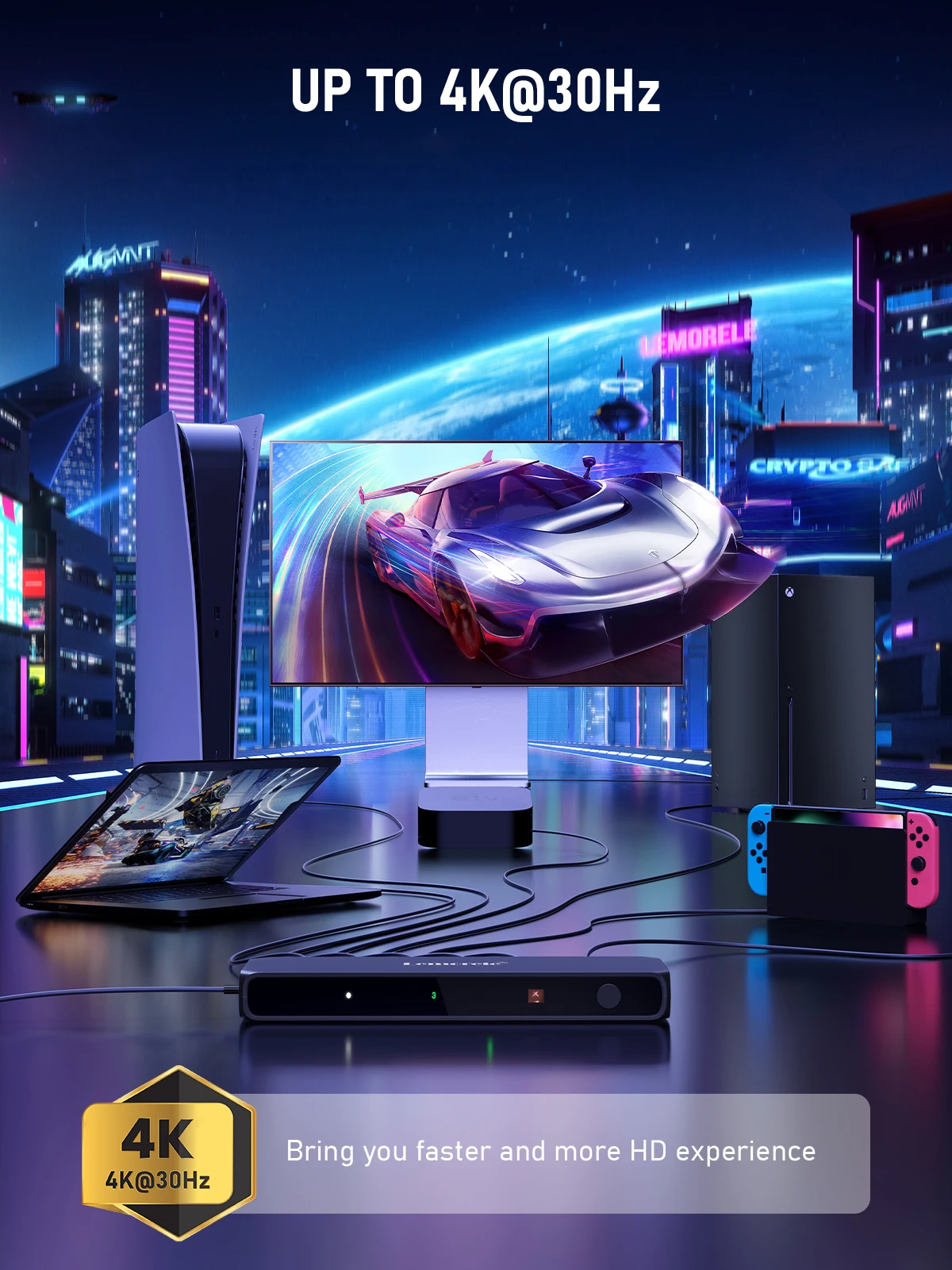 The switcher supports video outputs up to 4K@30Hz resolution, providing you with clear, high-quality image transmission. This means you can connect multiple devices with 4K resolution and easily switch their output signals to enjoy realistic and detailed image effects, whether in your home entertainment system or office environment. The switcher's HD output ensures that you can appreciate every detail, making your visual experience even more satisfying. Whether you're watching a movie, playing a game, or working on a professional design, this switcher provides the clarity and quality to make your video content vivid and lifelike.