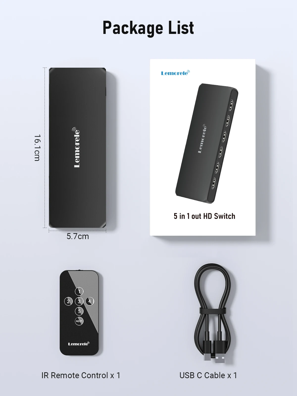 Allows users to connect up to 5 HDMI sources to a single HDMI display device. Users can connect game consoles, Blu-ray players, TV boxes, computers and other HDMI devices to the input ports of the switcher, and then use the switcher to send the selected source to a TV, projector or monitor.