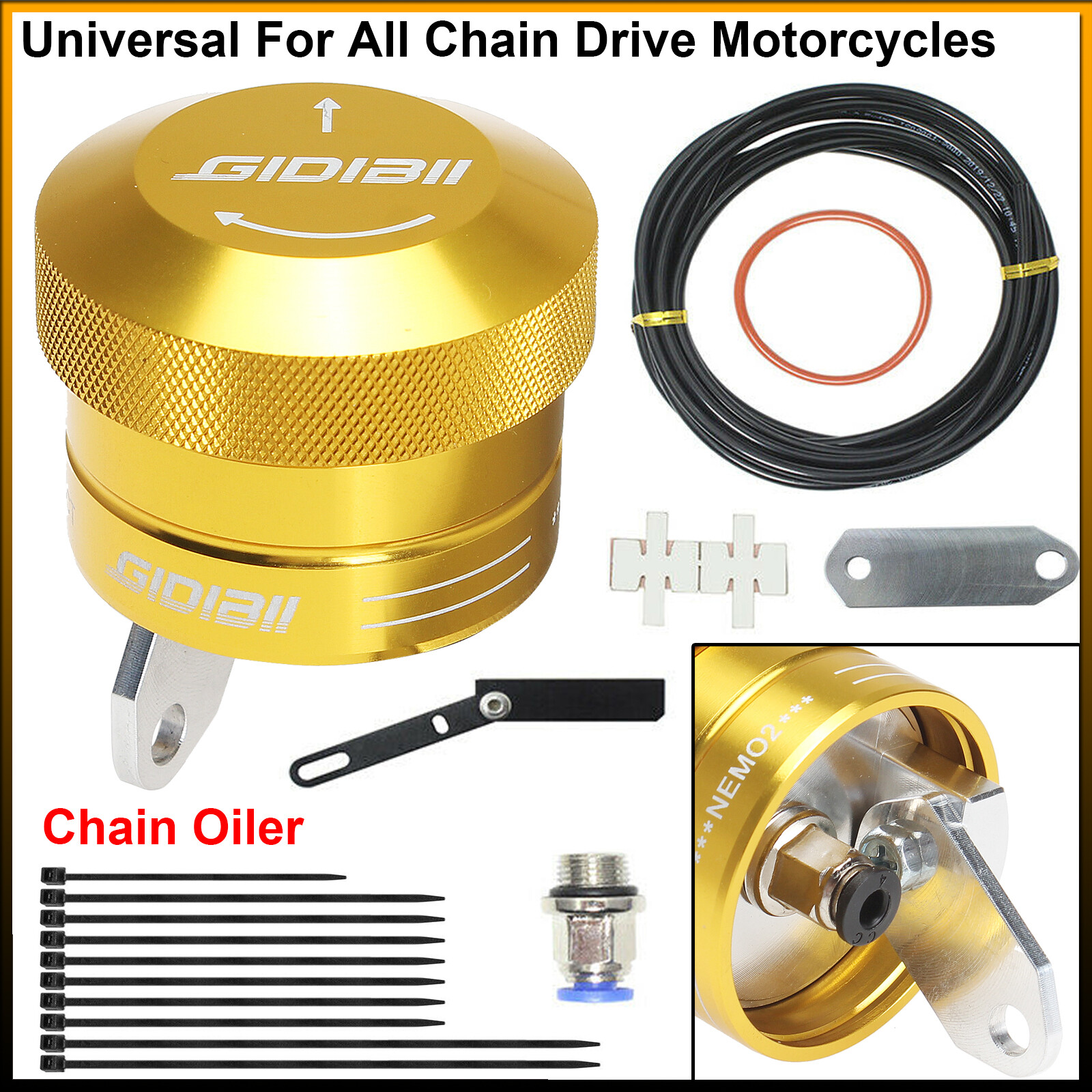 Universal For All Chain Drive Motorcycles - 1 Set Gold 30cc Chain Oiling System
