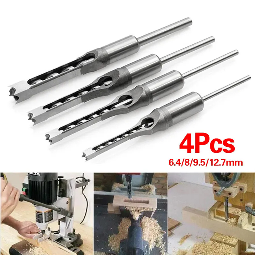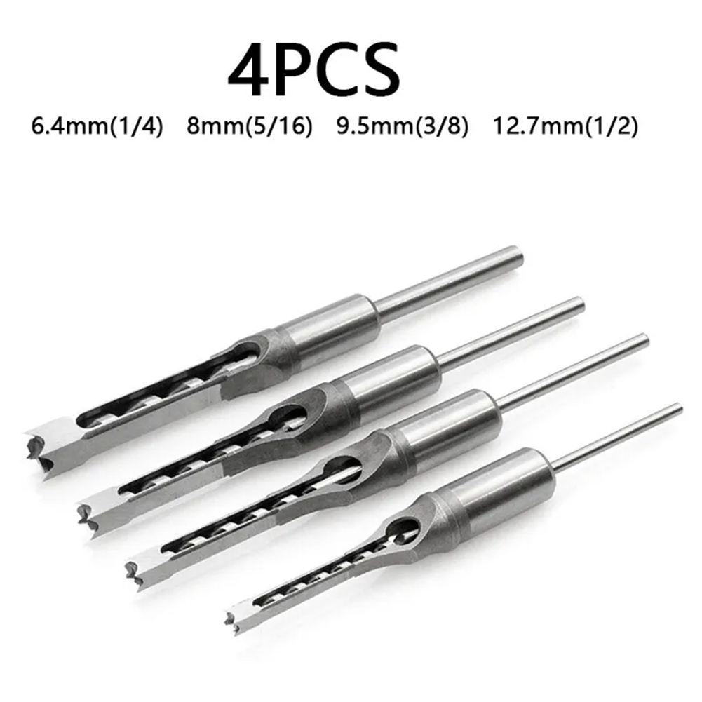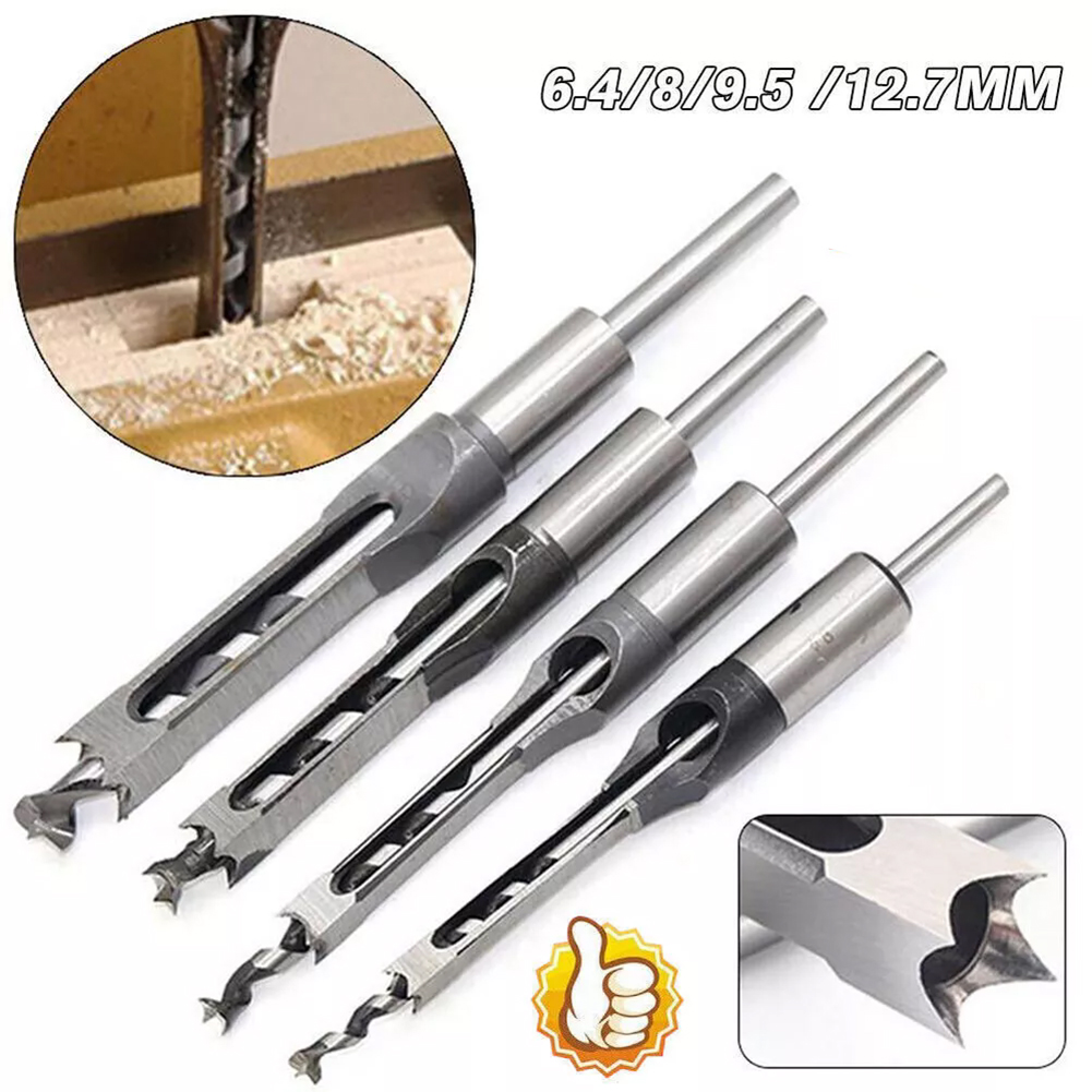 Packing Included: 4PCS Packing Included:6.4/8/9.5/12.7MM Description: 100% Brand new and High quality. This Saw Drill Bit is Made of #45 steel, heat treatment, HRC48-50, offers high hardness, lengthened core, and high concentricity. Great for Drilling Square Holes in Wood with a mortising machine or a mortising attachment. Fits all mortising machines and drill press attachments. Square hole drill is mainly used for woodworking aspects. This Set of Great woodworker tools can reduce labor intensity of construction workers, speed up the construction speed, reduce construction costs. Specifications Product Material: #45 Steel Product Hardness:HRC48-50 Product Model:6/8/9.5/12.7MM Note: