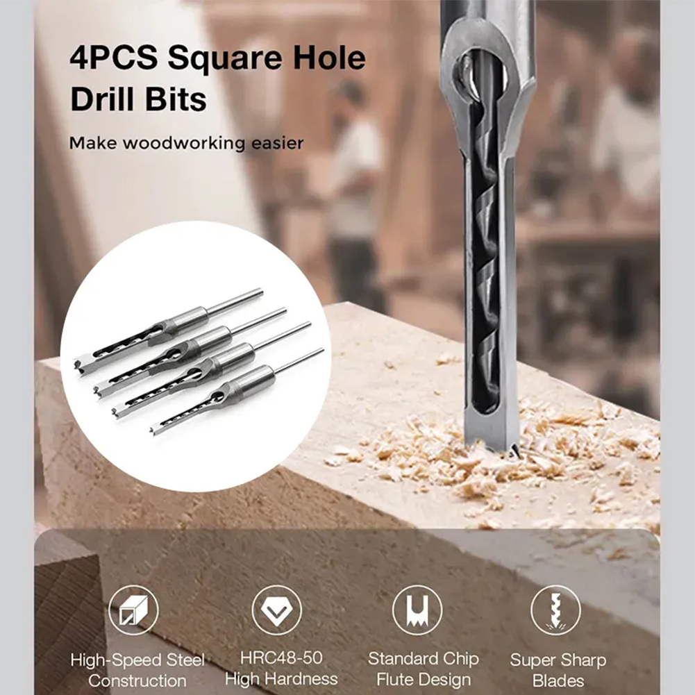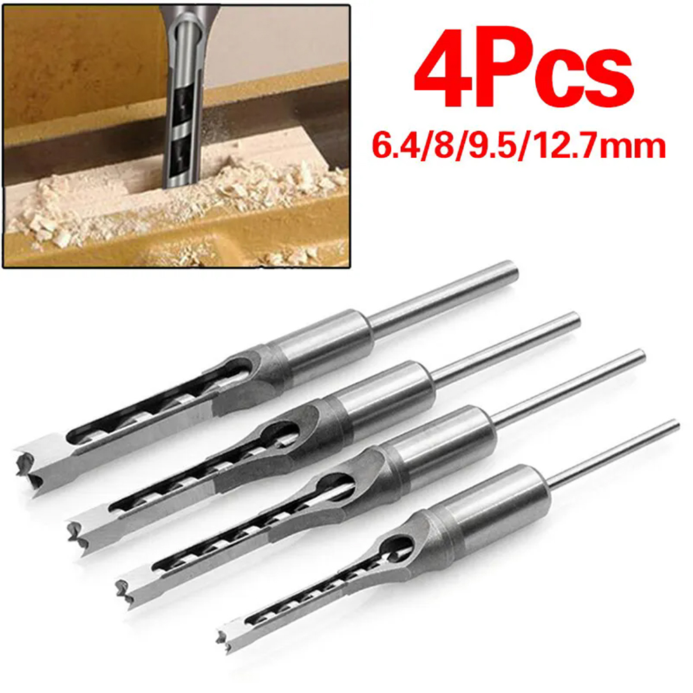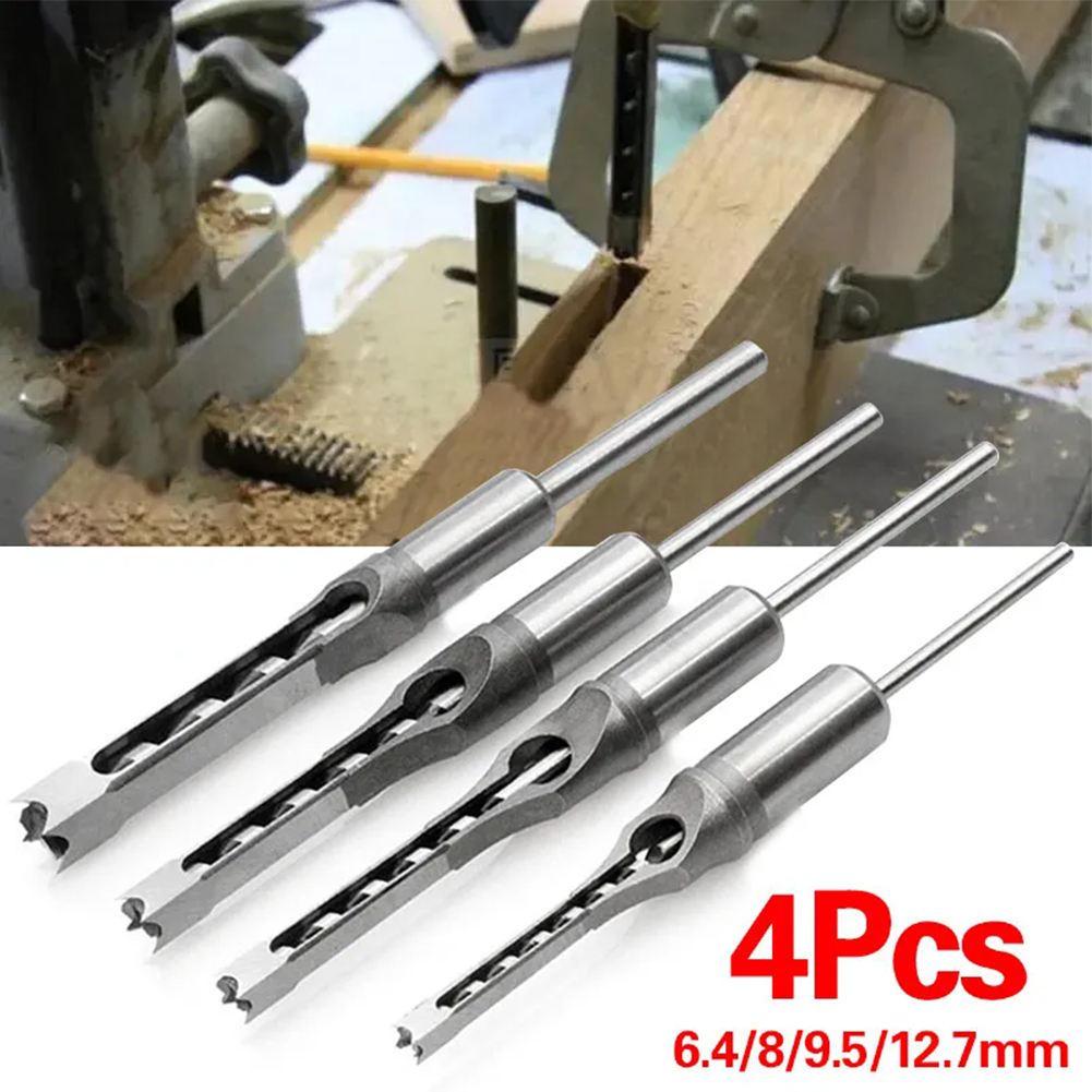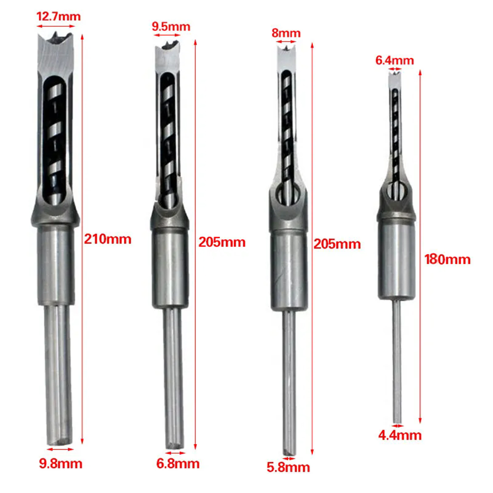 Packing Included: 4PCS Packing Included:6.4/8/9.5/12.7MM Description: 100% Brand new and High quality. This Saw Drill Bit is Made of #45 steel, heat treatment, HRC48-50, offers high hardness, lengthened core, and high concentricity. Great for Drilling Square Holes in Wood with a mortising machine or a mortising attachment. Fits all mortising machines and drill press attachments. Square hole drill is mainly used for woodworking aspects. This Set of Great woodworker tools can reduce labor intensity of construction workers, speed up the construction speed, reduce construction costs. Specifications Product Material: #45 Steel Product Hardness:HRC48-50 Product Model:6/8/9.5/12.7MM Note: