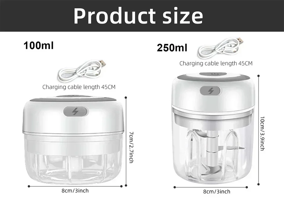 The mini garlic chopper is equipped with a 30W motor and 3 stainless steel reinforced blades with excellent performance. This electric onion chopper is very suitable for small jobs, such as chopping garlic, ginger, peppers, vegetables, onions, etc.