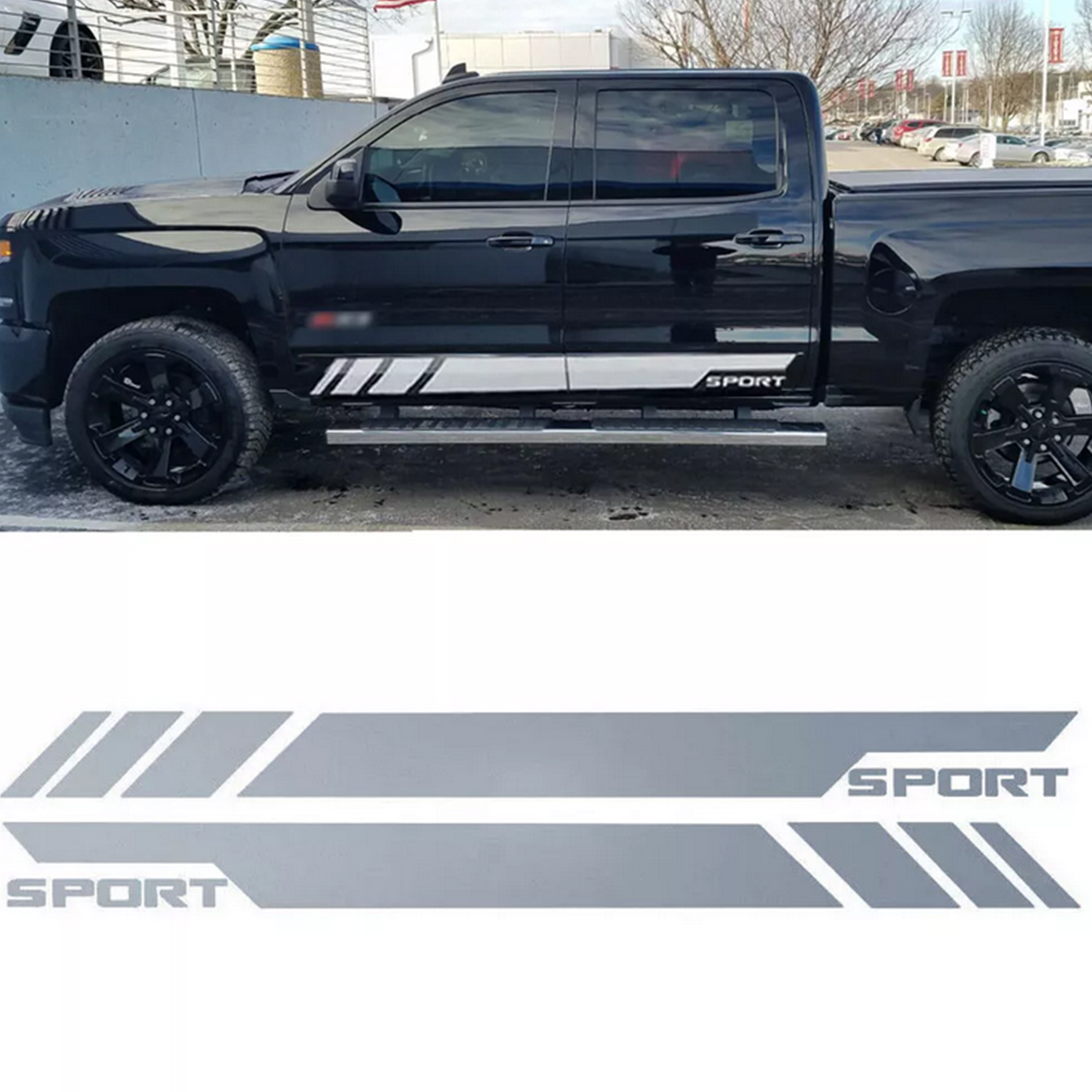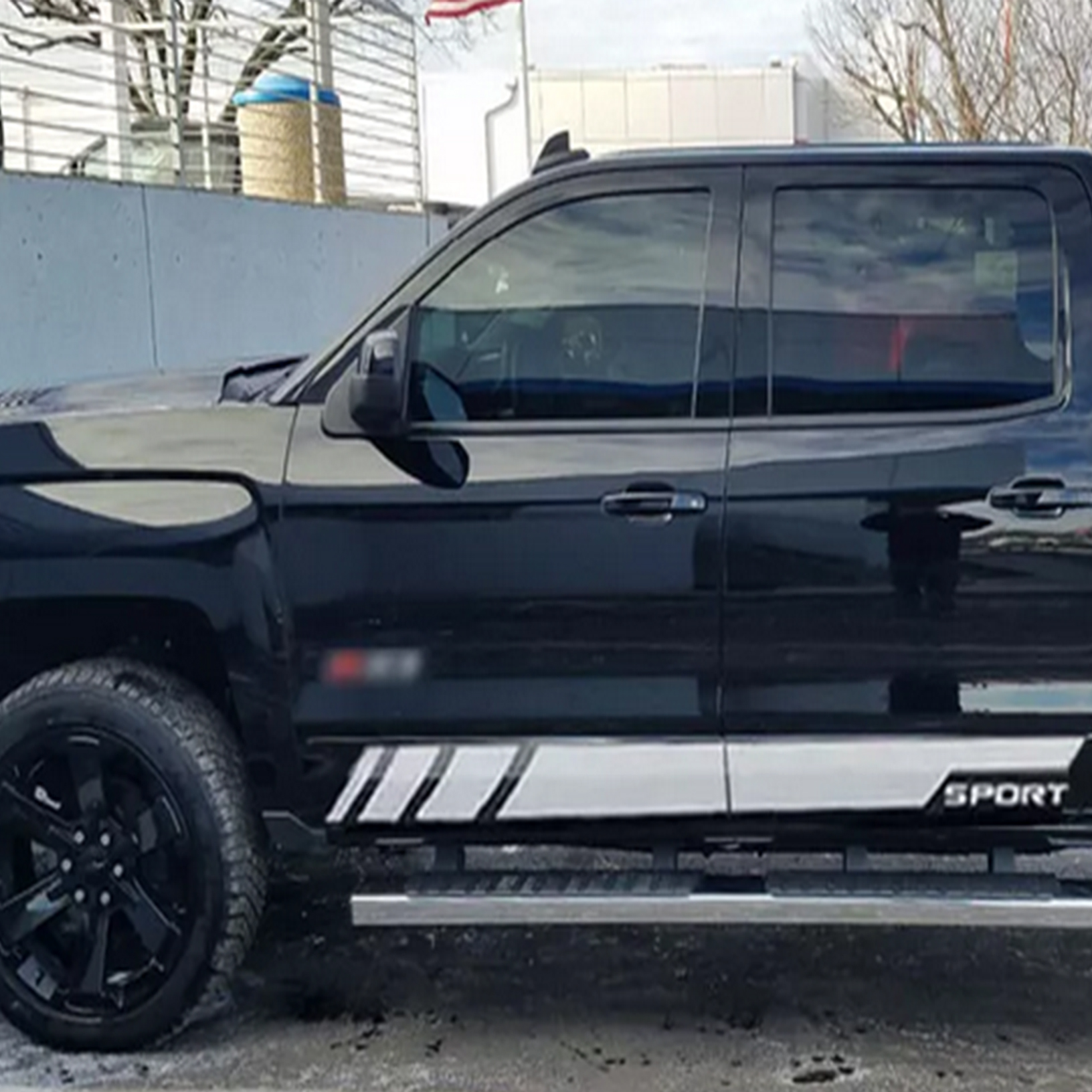Cette liste est pour 2 pièces d'autocollants argentés pour jupe latérale adaptés au chevy silverado.
