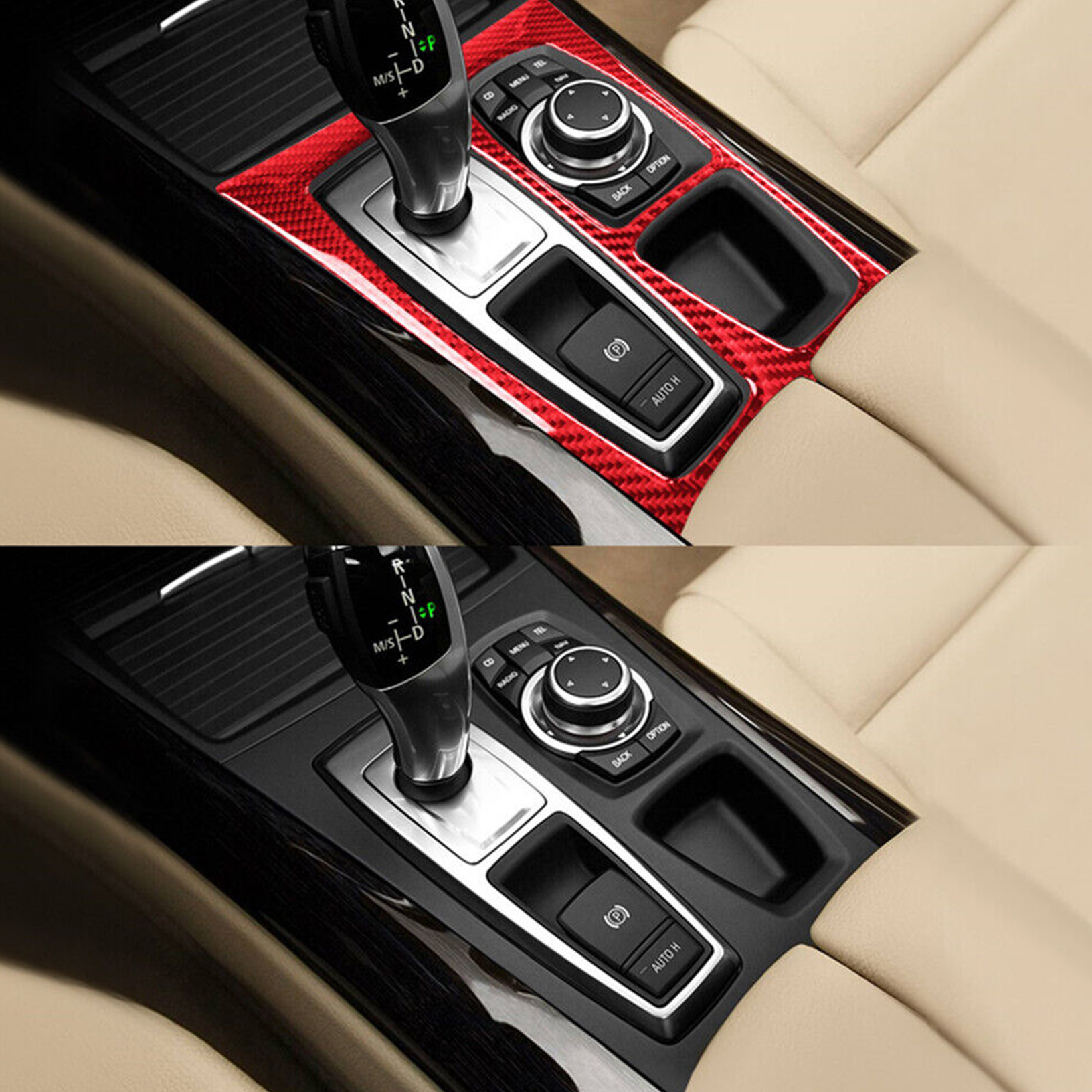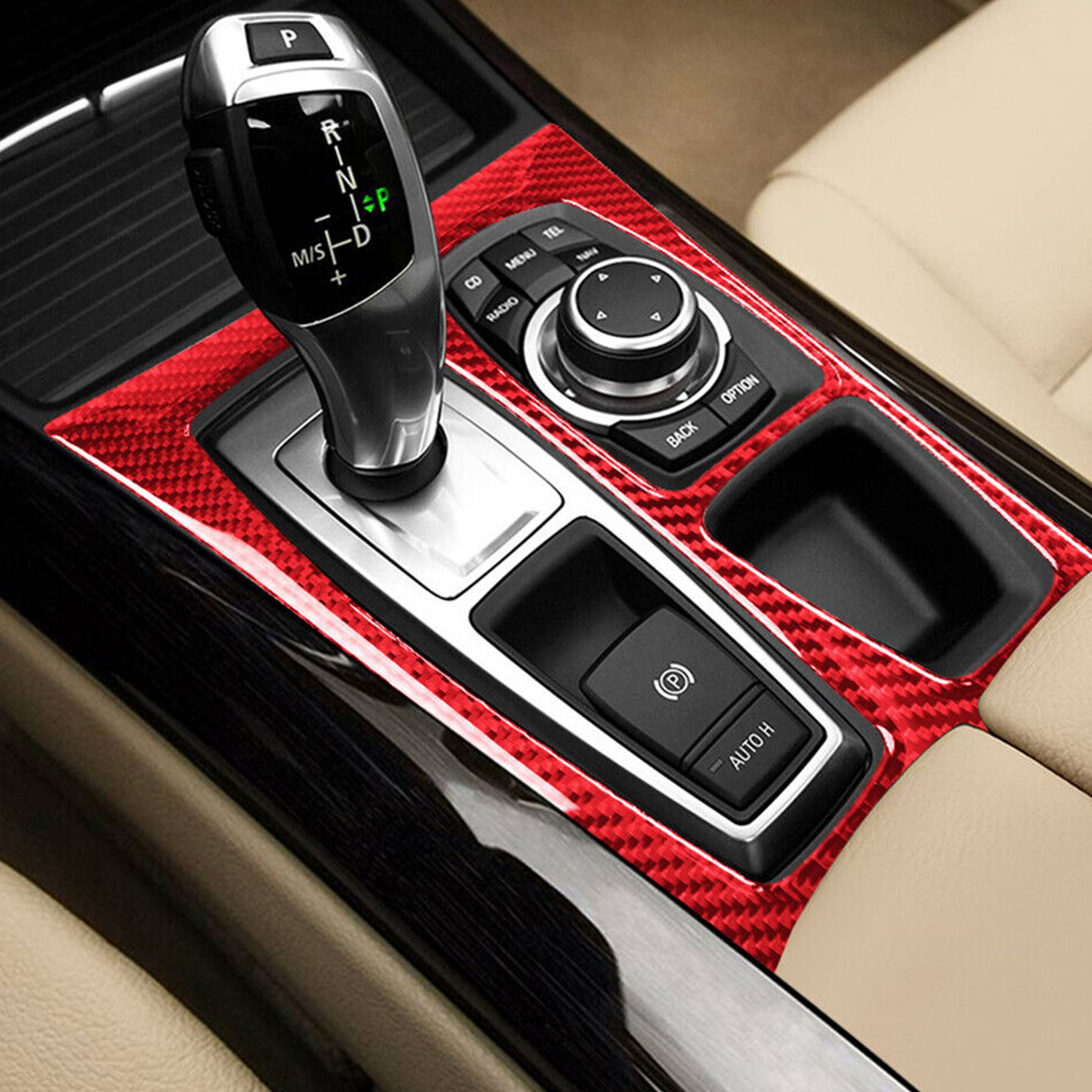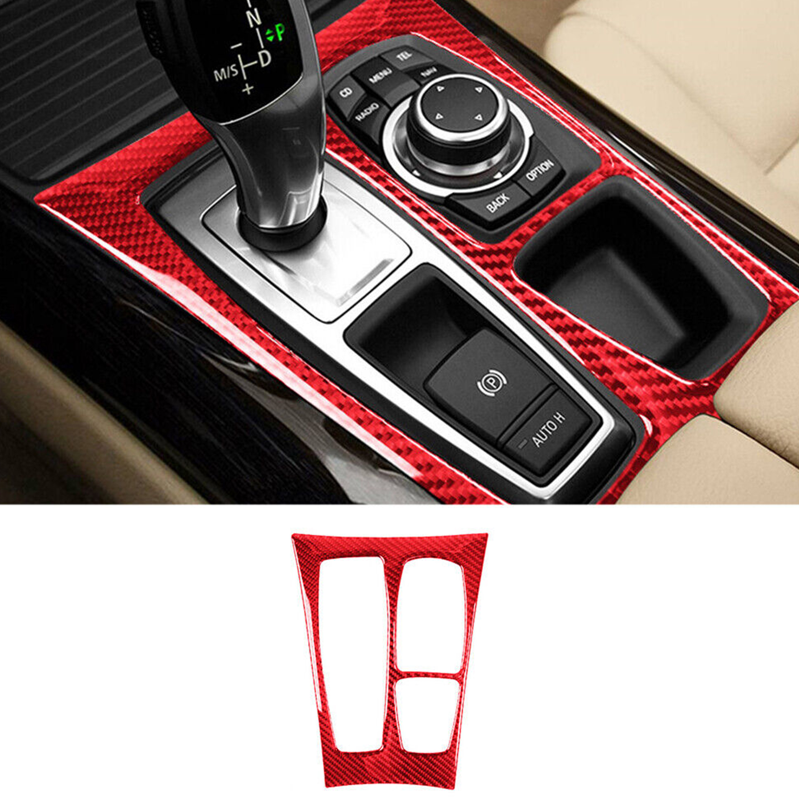 ?? Garniture de couvercle de changement de vitesse intérieur en Fiber de carbone rouge 1 pièce
